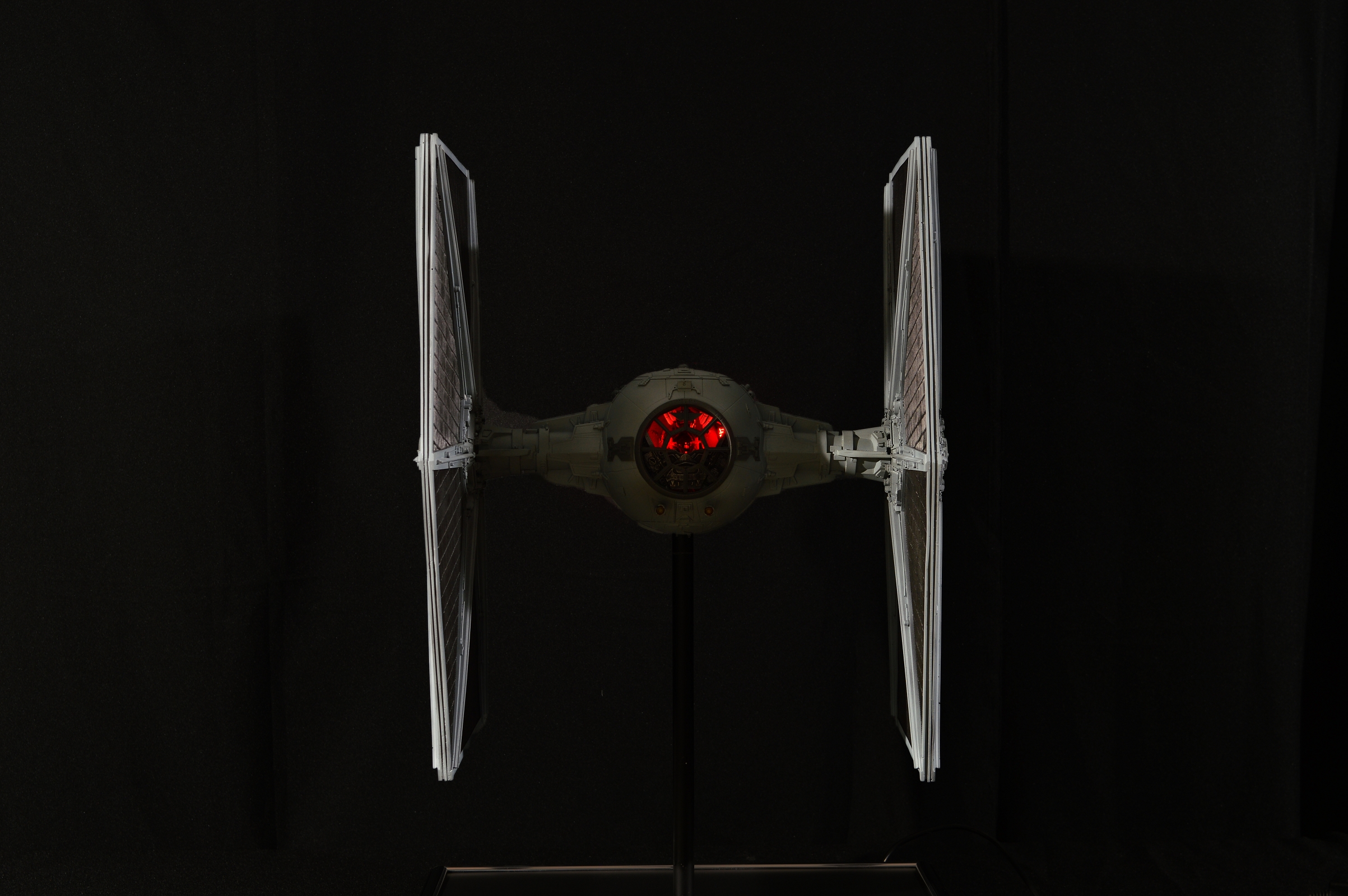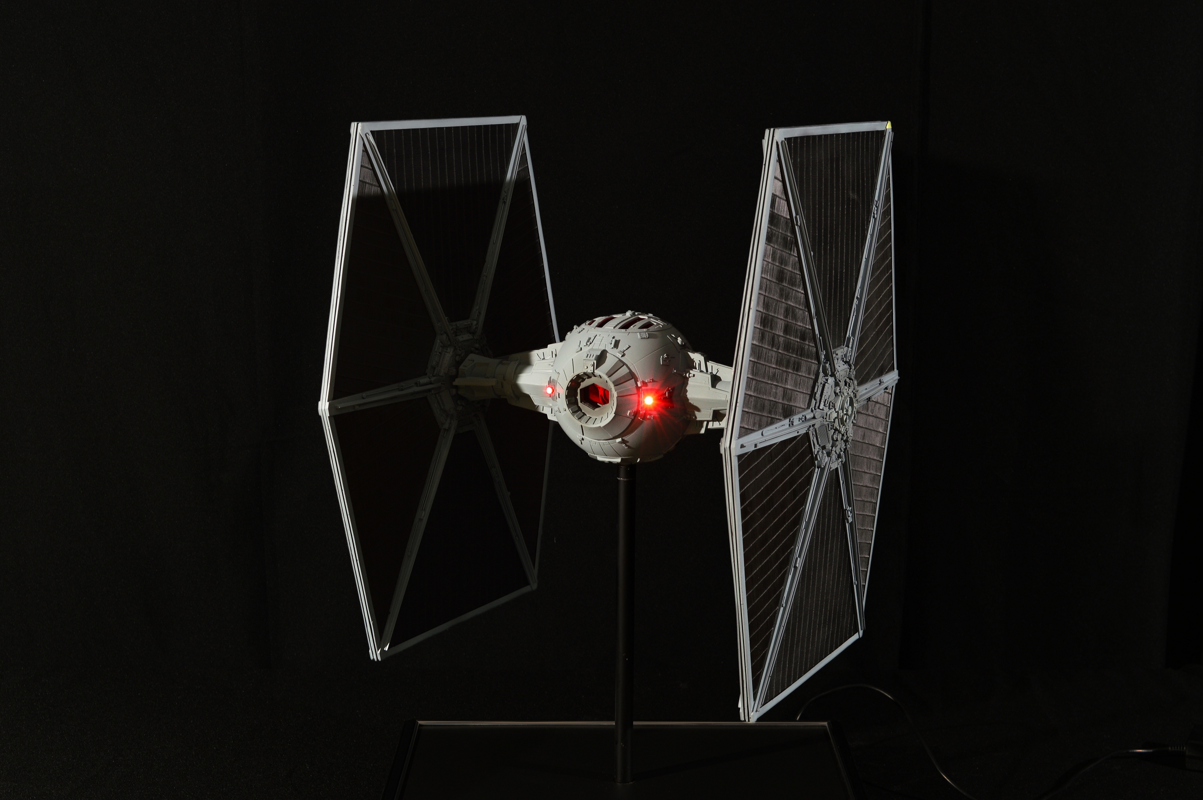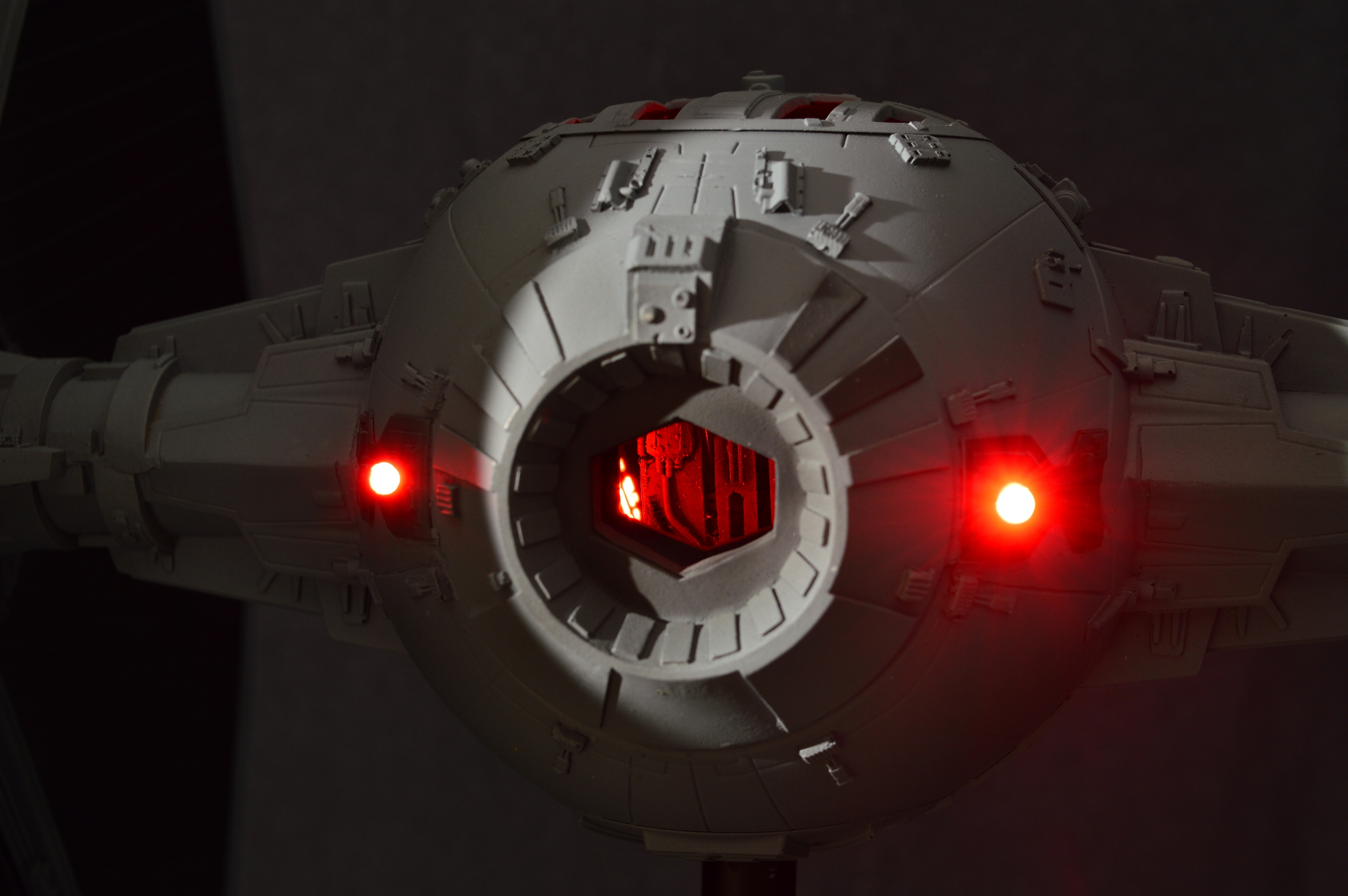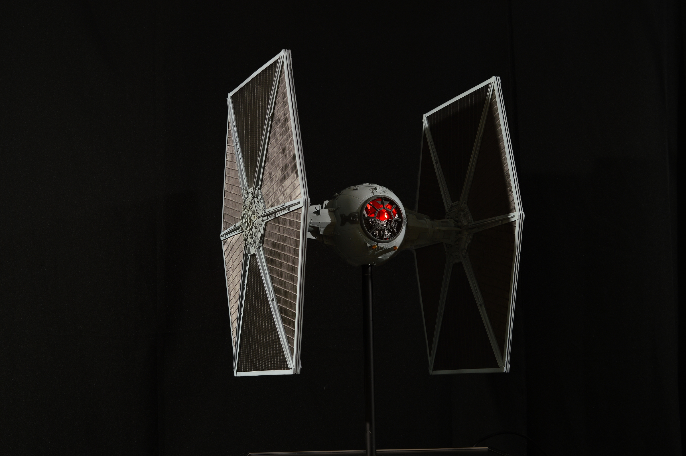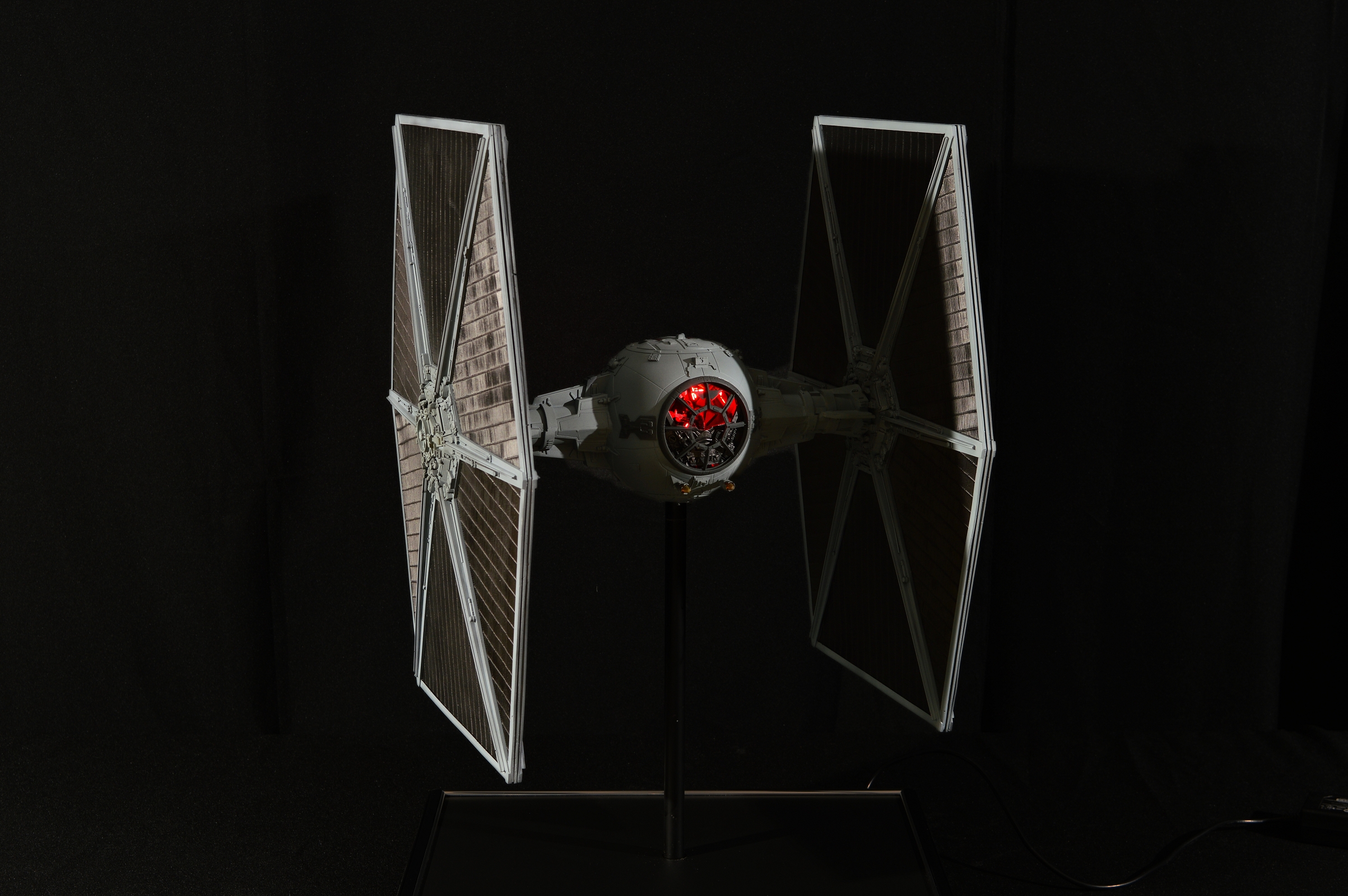 The Tie Fighter in 1/18 its a mashup of different kits and scratch build parts. The Cockpit is very special on that peace. I scratch built the design of the life size cockpit instead of the studio models cockpit. This piece sold before we could even show it here on Modeler Magic!