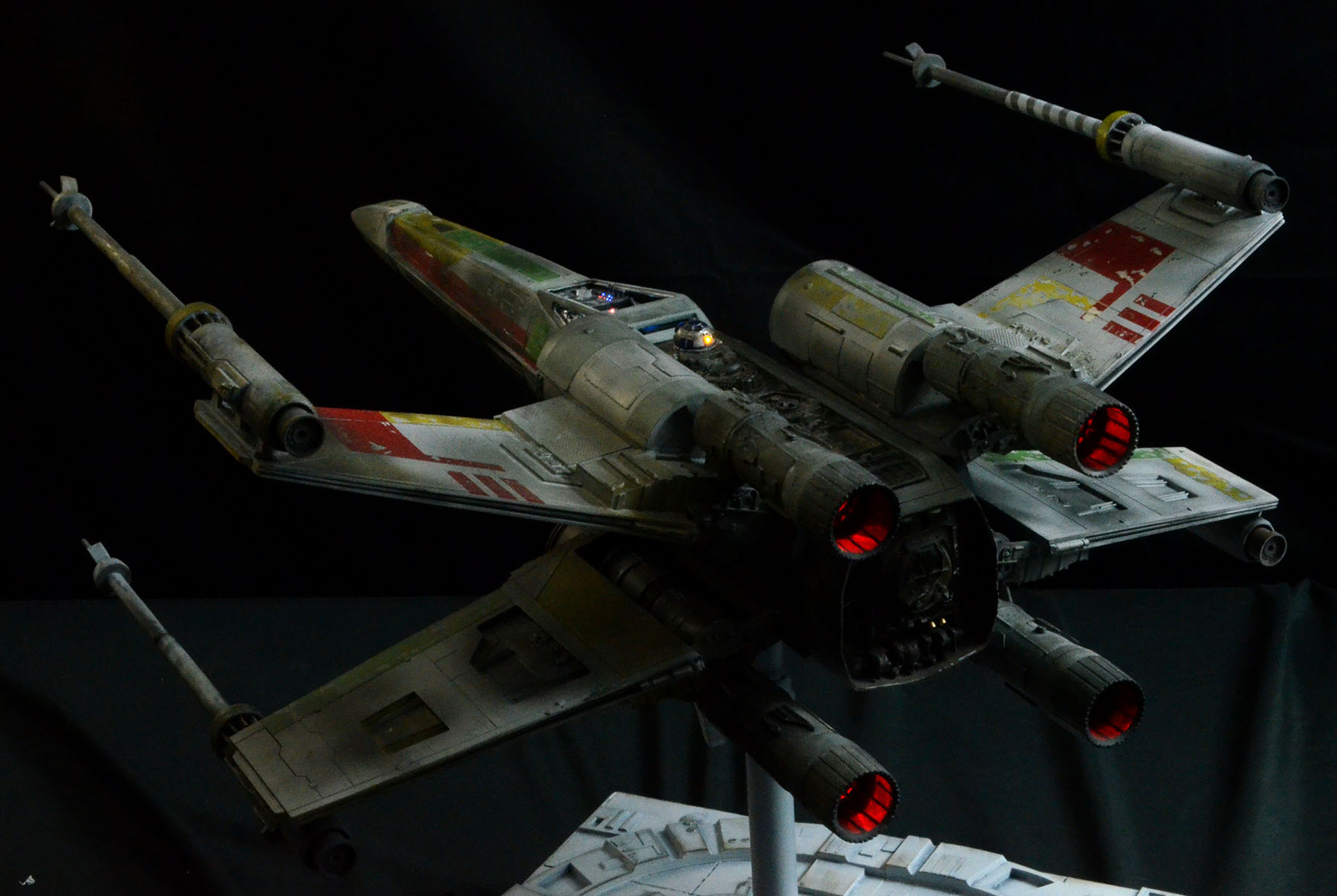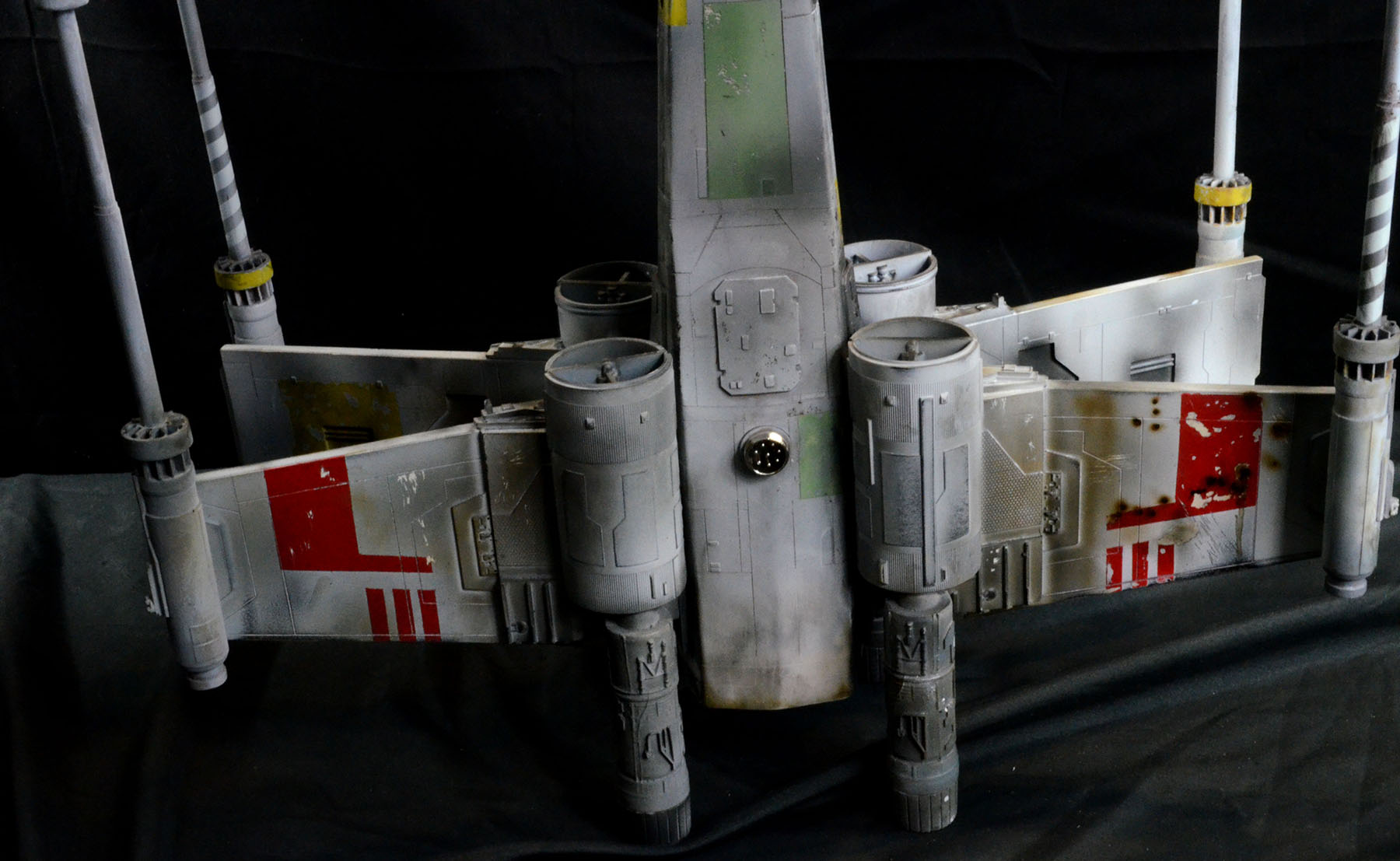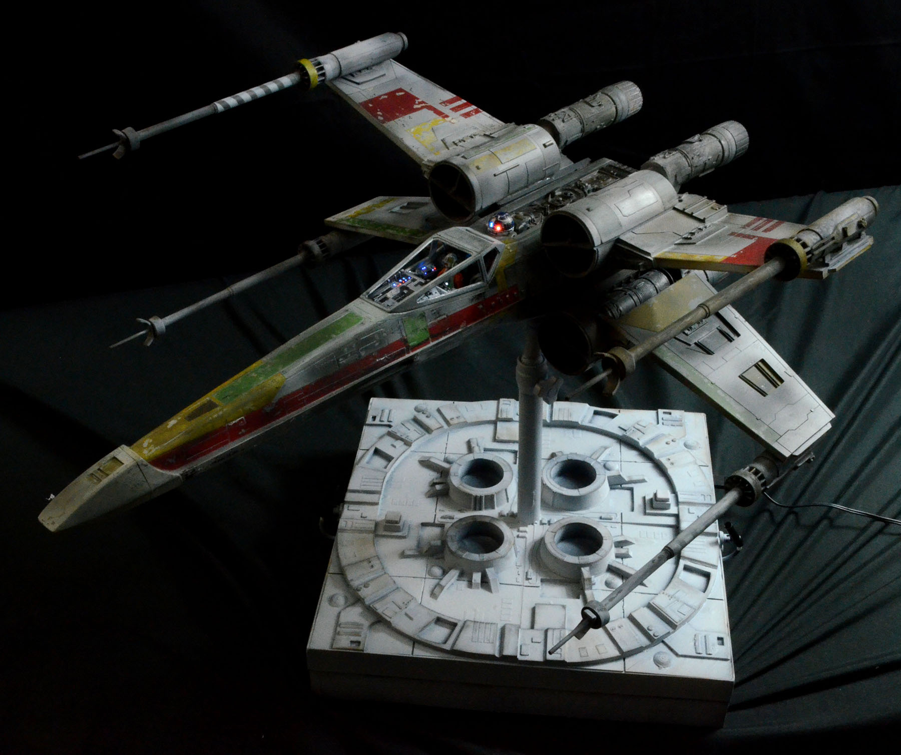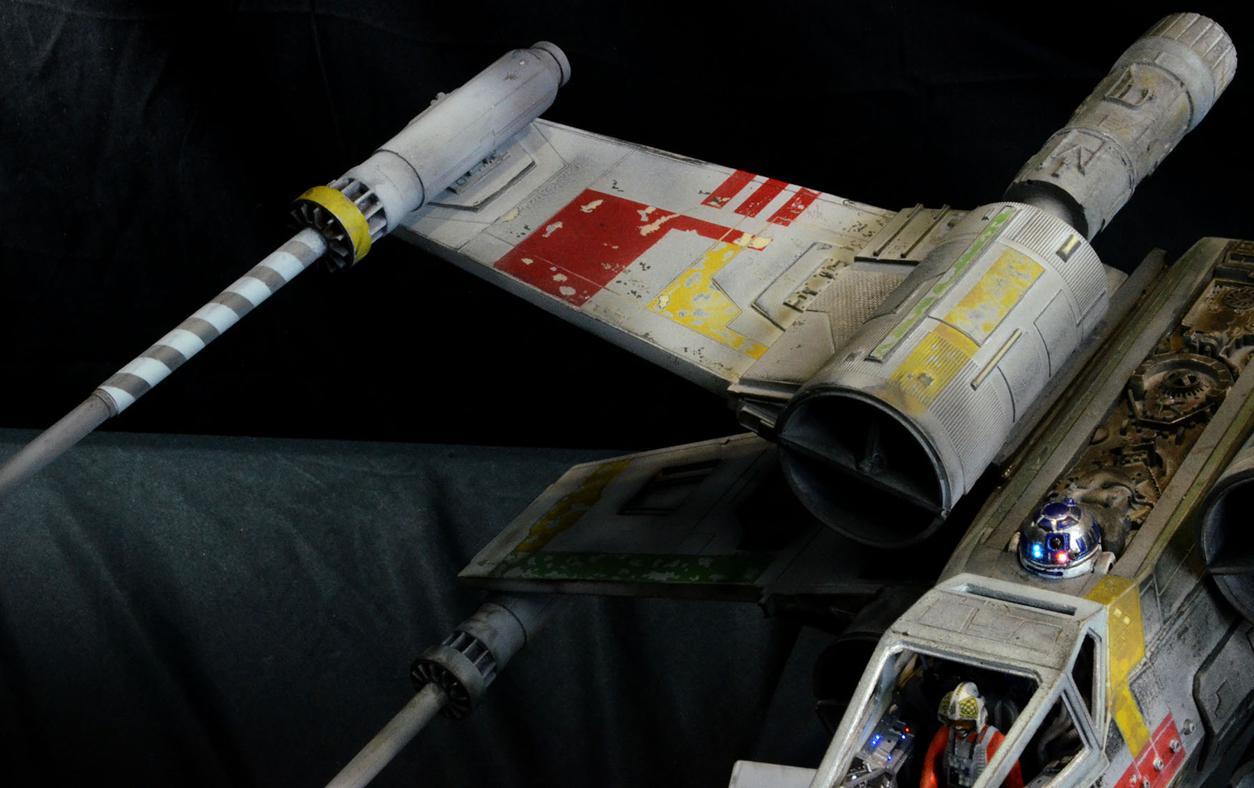 Artist Rob Rossi made this studio scale X-Wing beautifully! Just look at all the fine detail, weathering and lighting involved! He did state to me that the colors in the photos are more vibrant in the actual photos that seen by the naked eye. Even still… this piece is beautiful! Impressive work!