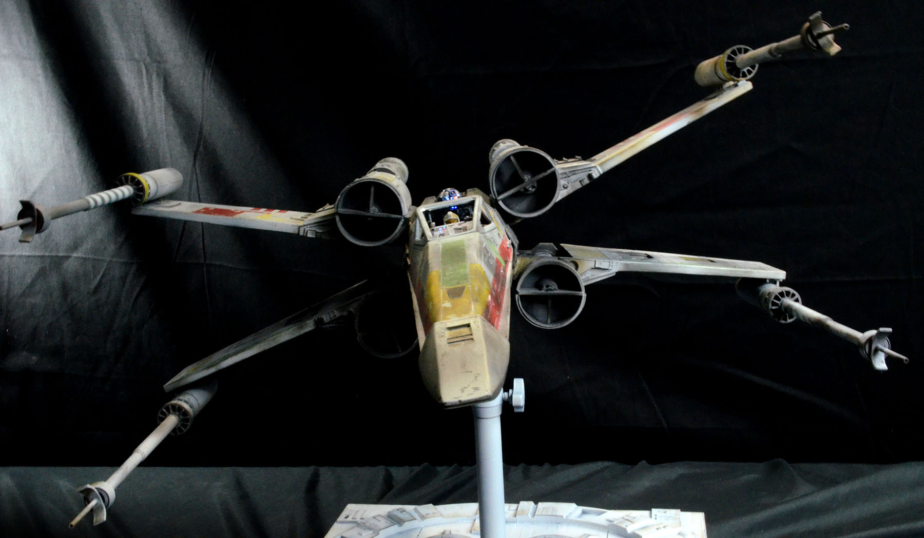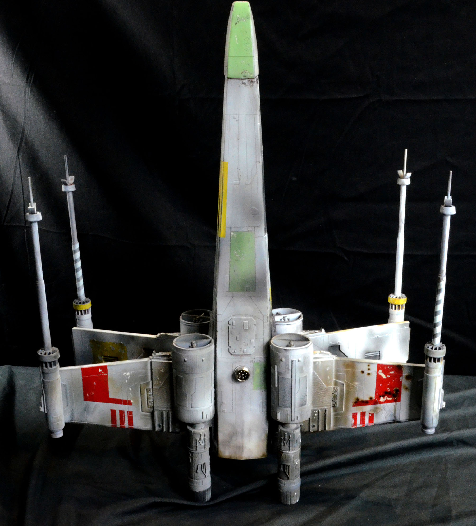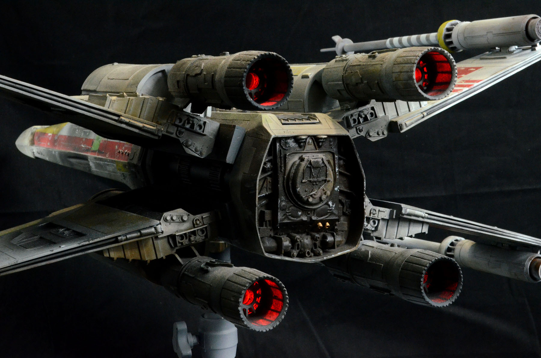 Artist Rob Rossi made this studio scale X-Wing beautifully! Just look at all the fine detail, weathering and lighting involved! He did state to me that the colors in the photos are more vibrant in the actual photos that seen by the naked eye. Even still… this piece is beautiful! Impressive work!