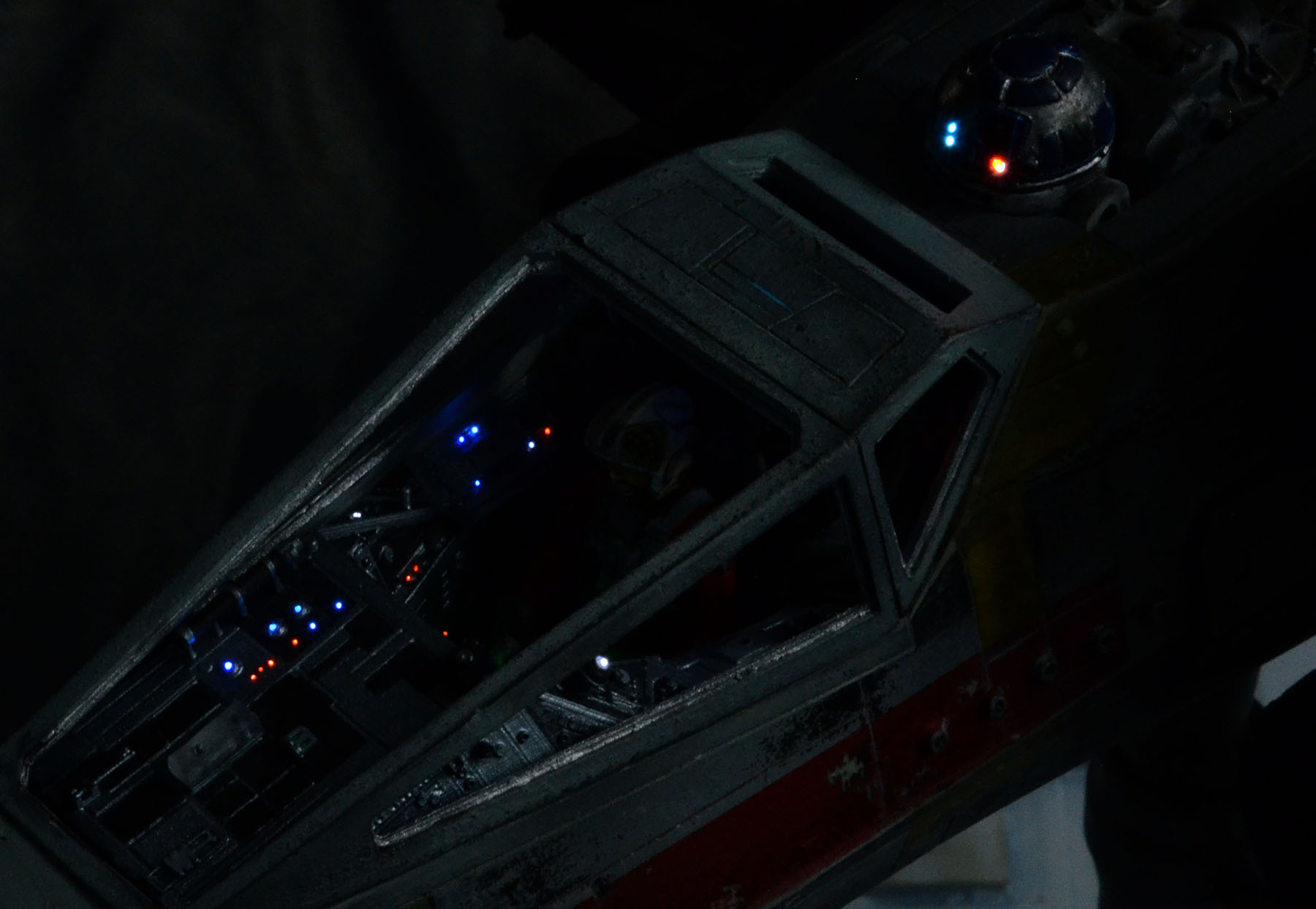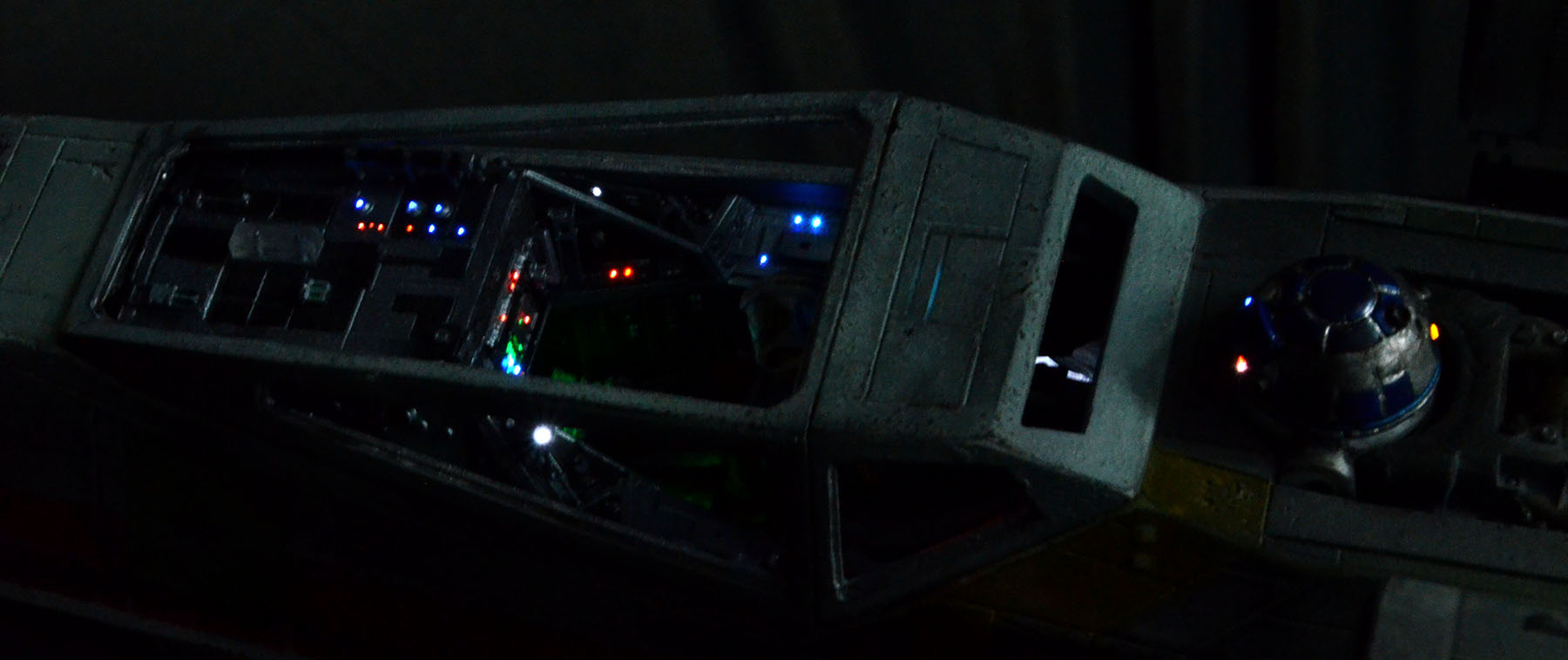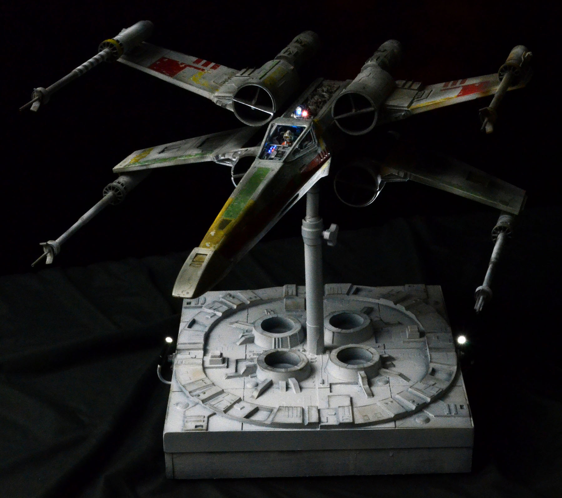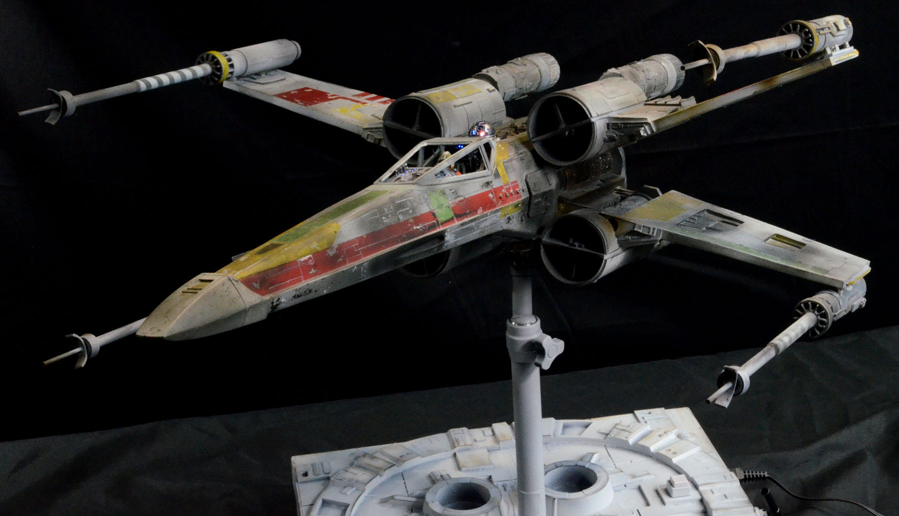 Artist Rob Rossi made this studio scale X-Wing beautifully! Just look at all the fine detail, weathering and lighting involved! He did state to me that the colors in the photos are more vibrant in the actual photos that seen by the naked eye. Even still… this piece is beautiful! Impressive work!