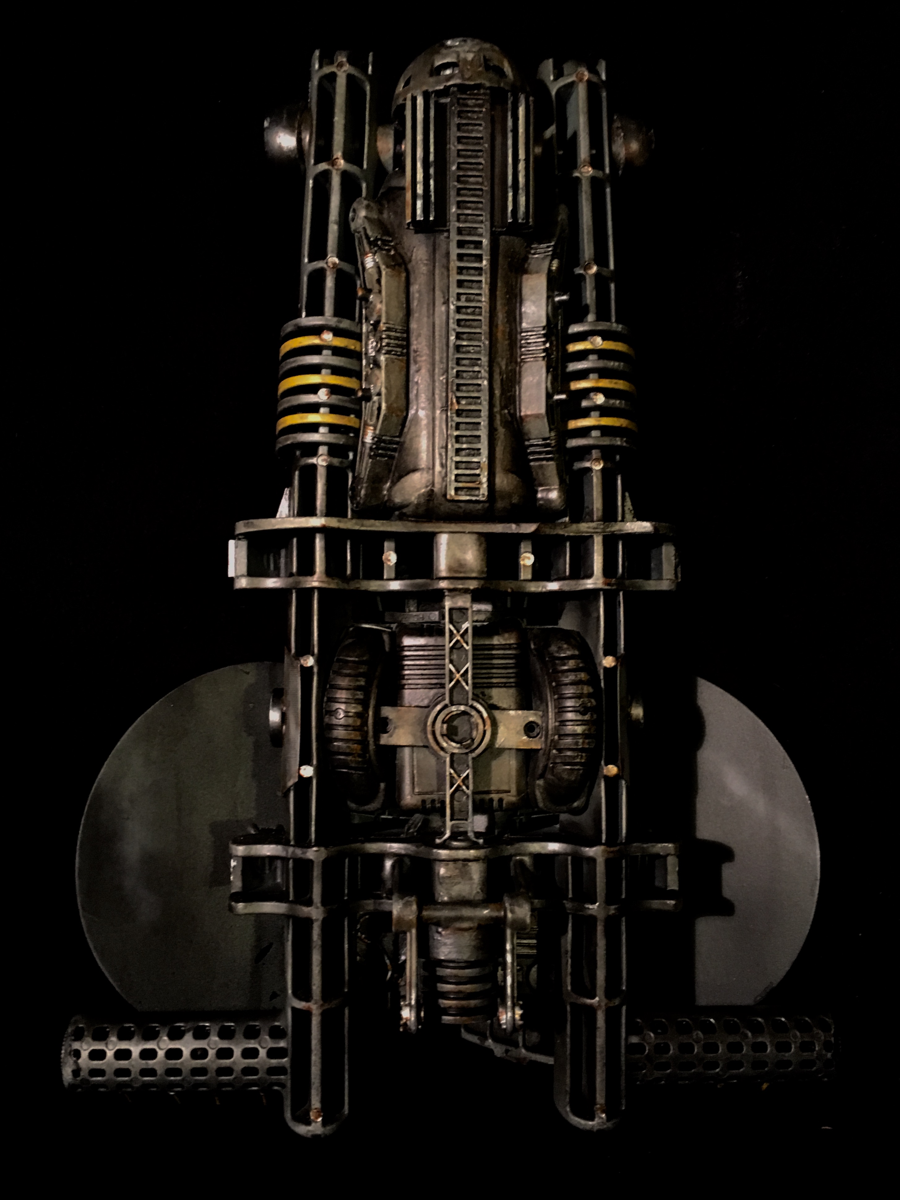 This piece, which has an “HR Geiger” feel to me, was made from trash items that Jonas re-purposed to be this amazing piece! I love this!