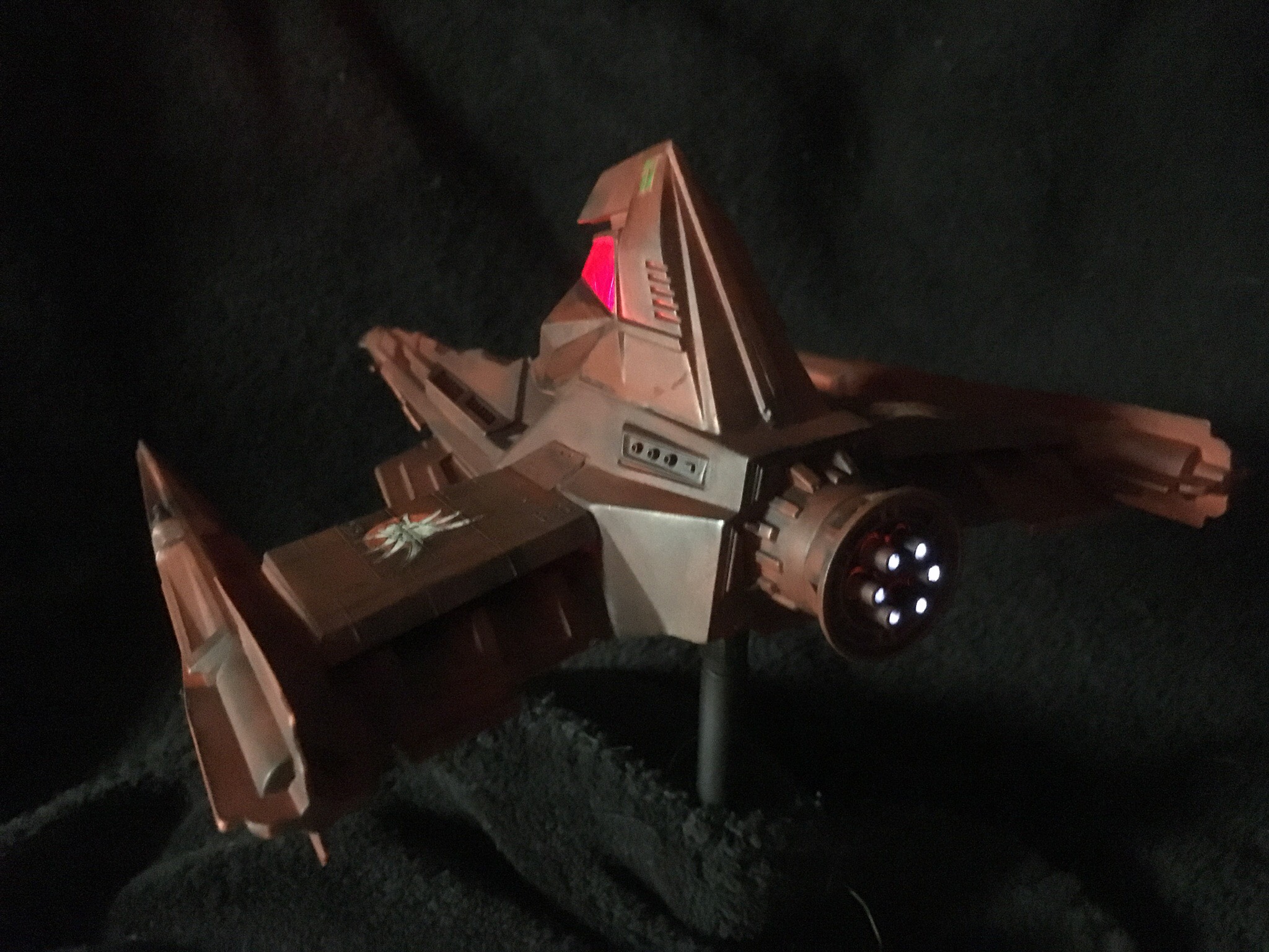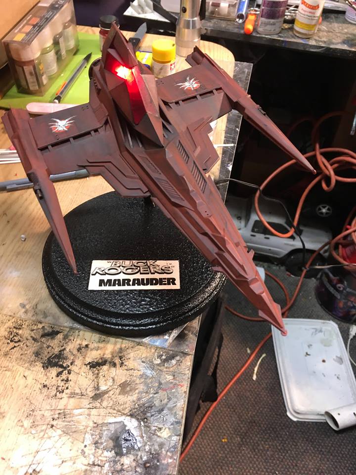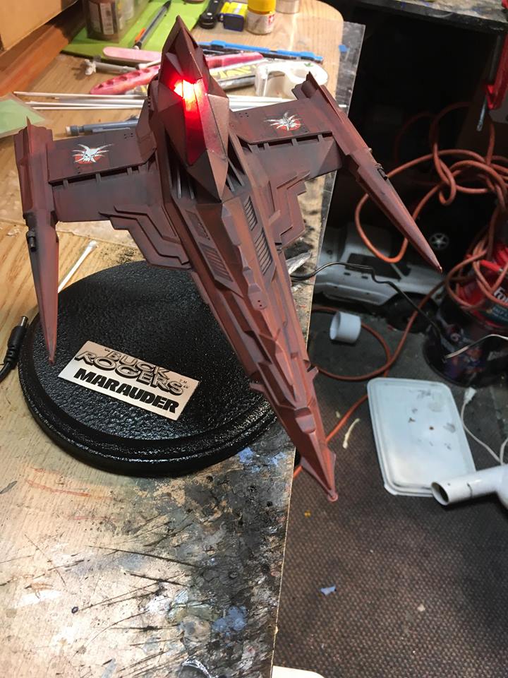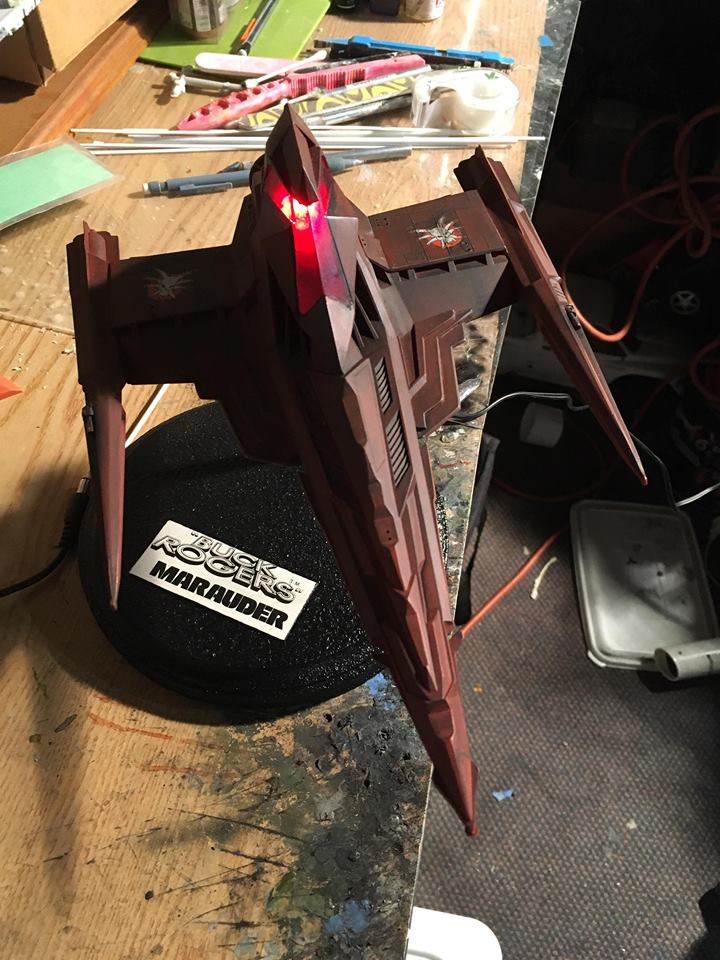 This Buck Rogers Marauder is now in the William Henderson Collection. He wanted it to look weathered with lighting like the opening movie debut. The Marauder is the old 1979 Monogram kit which I modified.