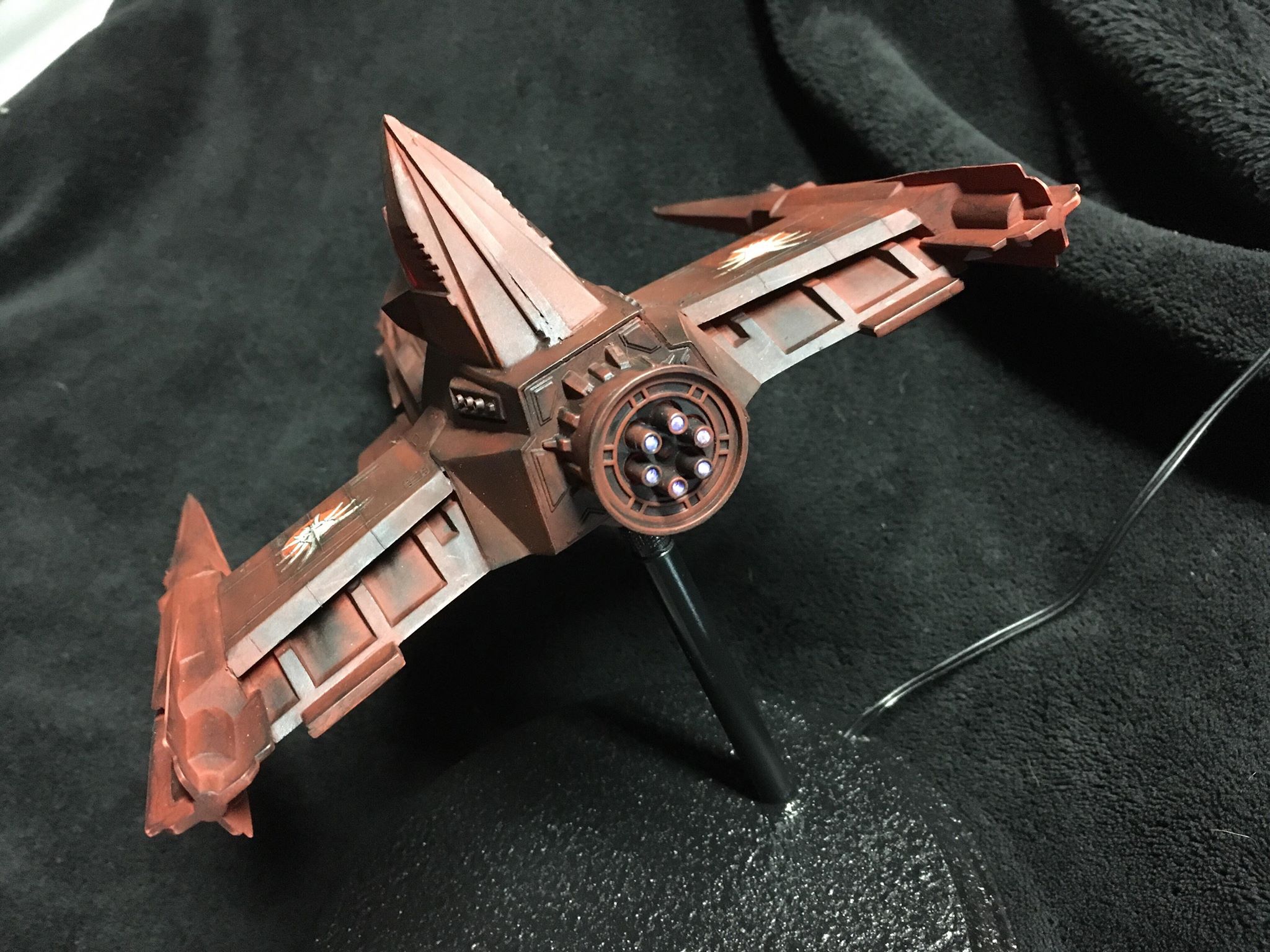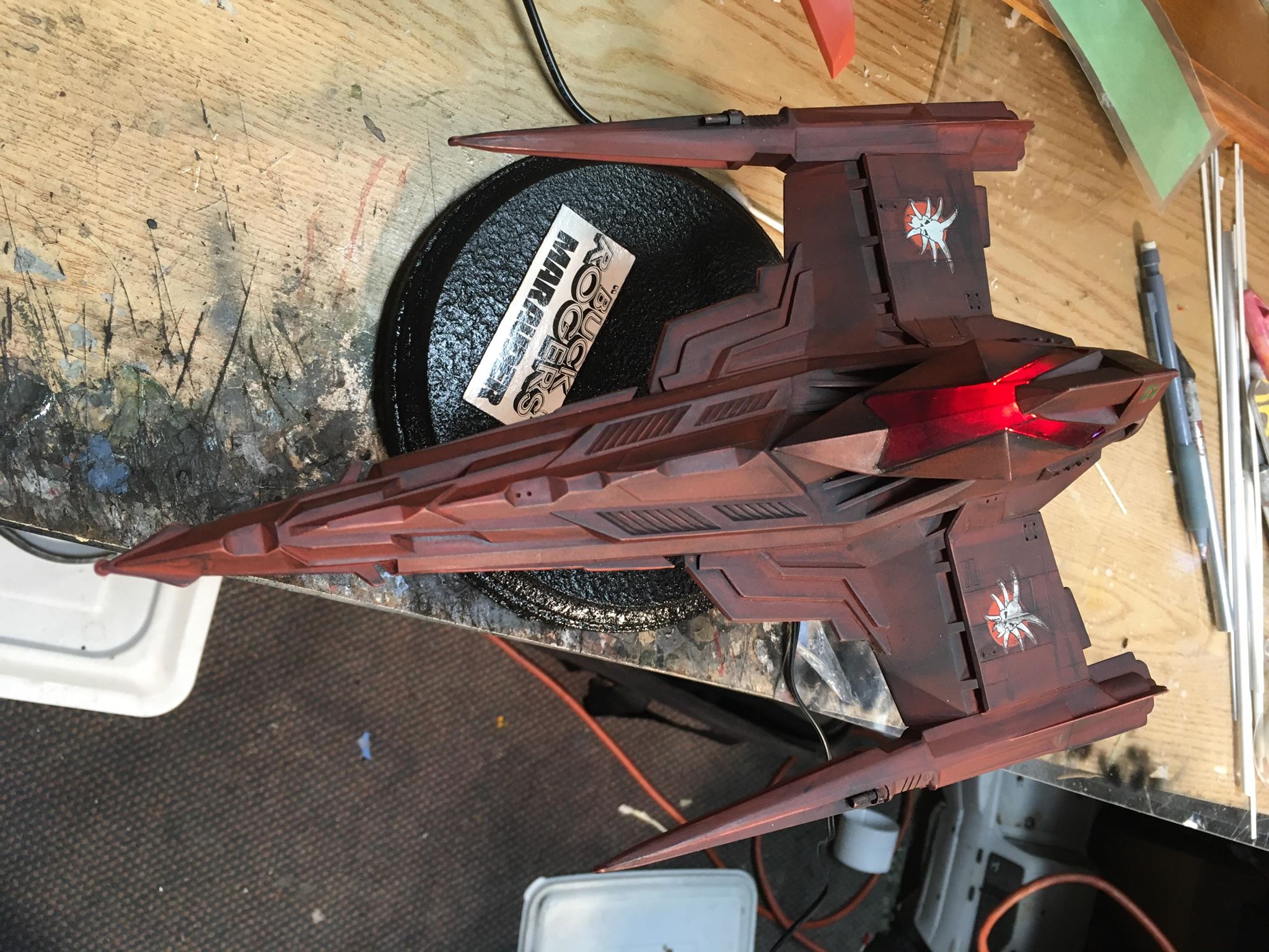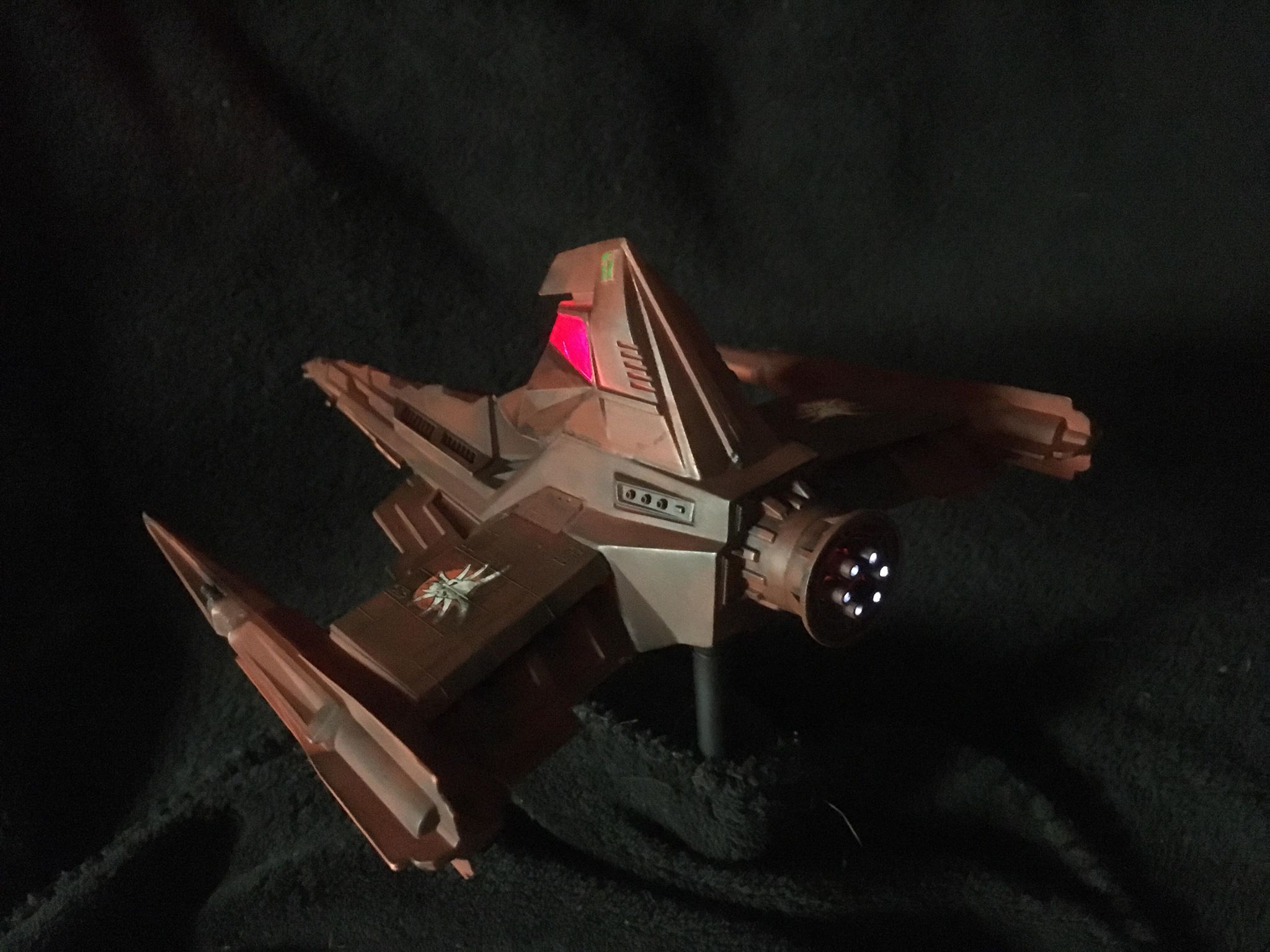 This Buck Rogers Marauder is now in the William Henderson Collection. He wanted it to look weathered with lighting like the opening movie debut. The Marauder is the old 1979 Monogram kit which I modified.