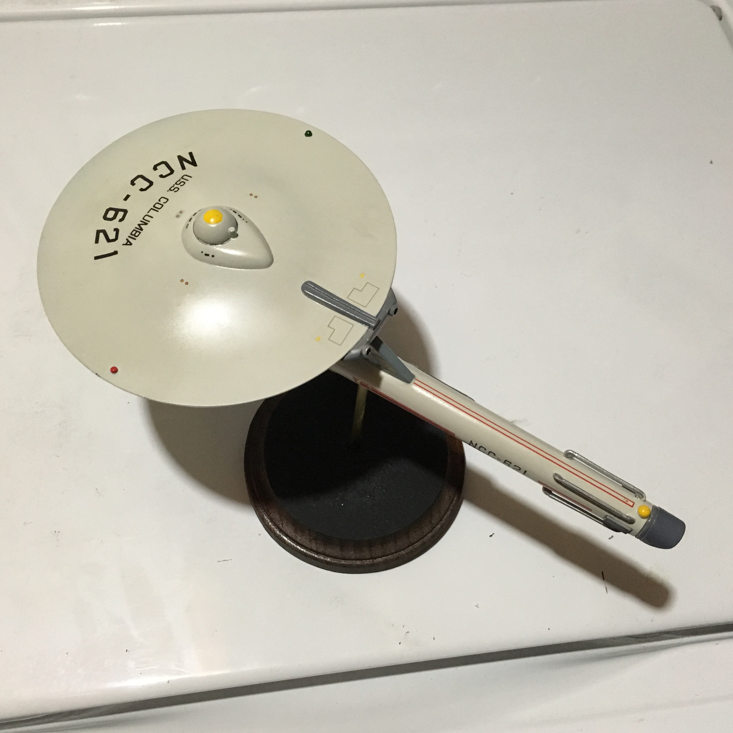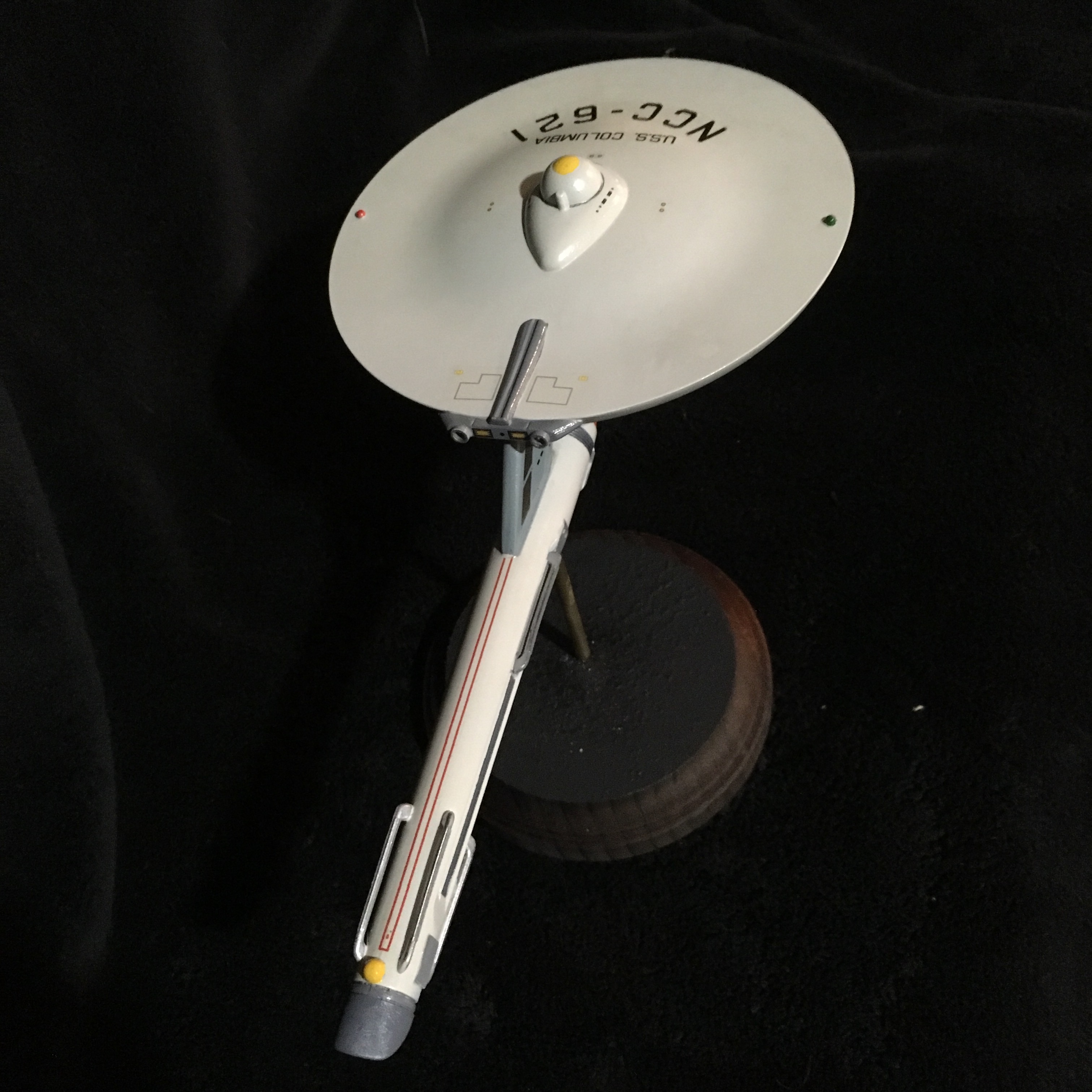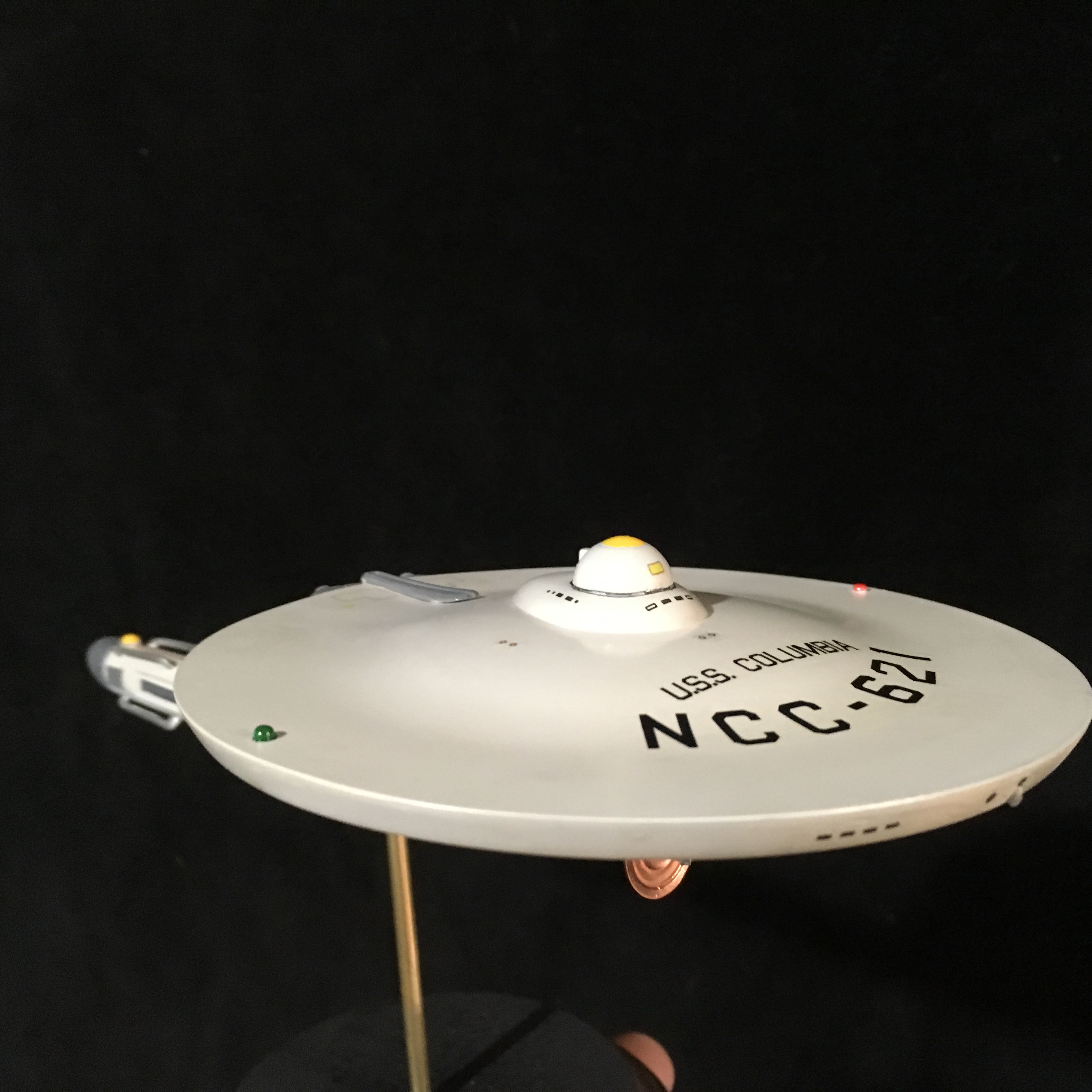 I finished another Star Trek TOS Destroyer/Scout. It is the USS Columbia,.. a Class I Destroyer which has a raised Bridge and 4 inter coolers on the warp nacelle. This old girl was in the early years of the galactic war between the Romulans and the early Federation of Planets. I hope you like as it is my own version.