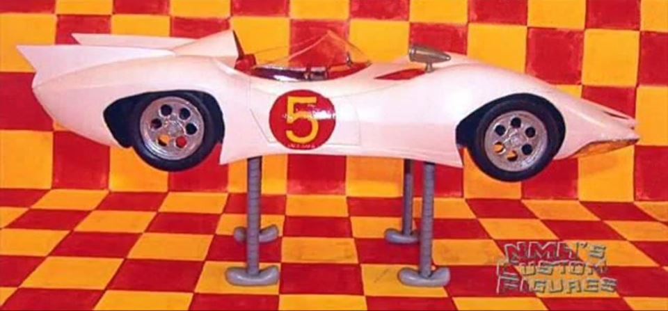 I built the model of the Mach 5 from Speed Racer. This is the Japan resin kit called “THE MACH”. I painted all decals and hood M… and customized the chassis. I made all the tail fins….chassis….decals….chopper blades….auto jacks….all custom & scratch built.