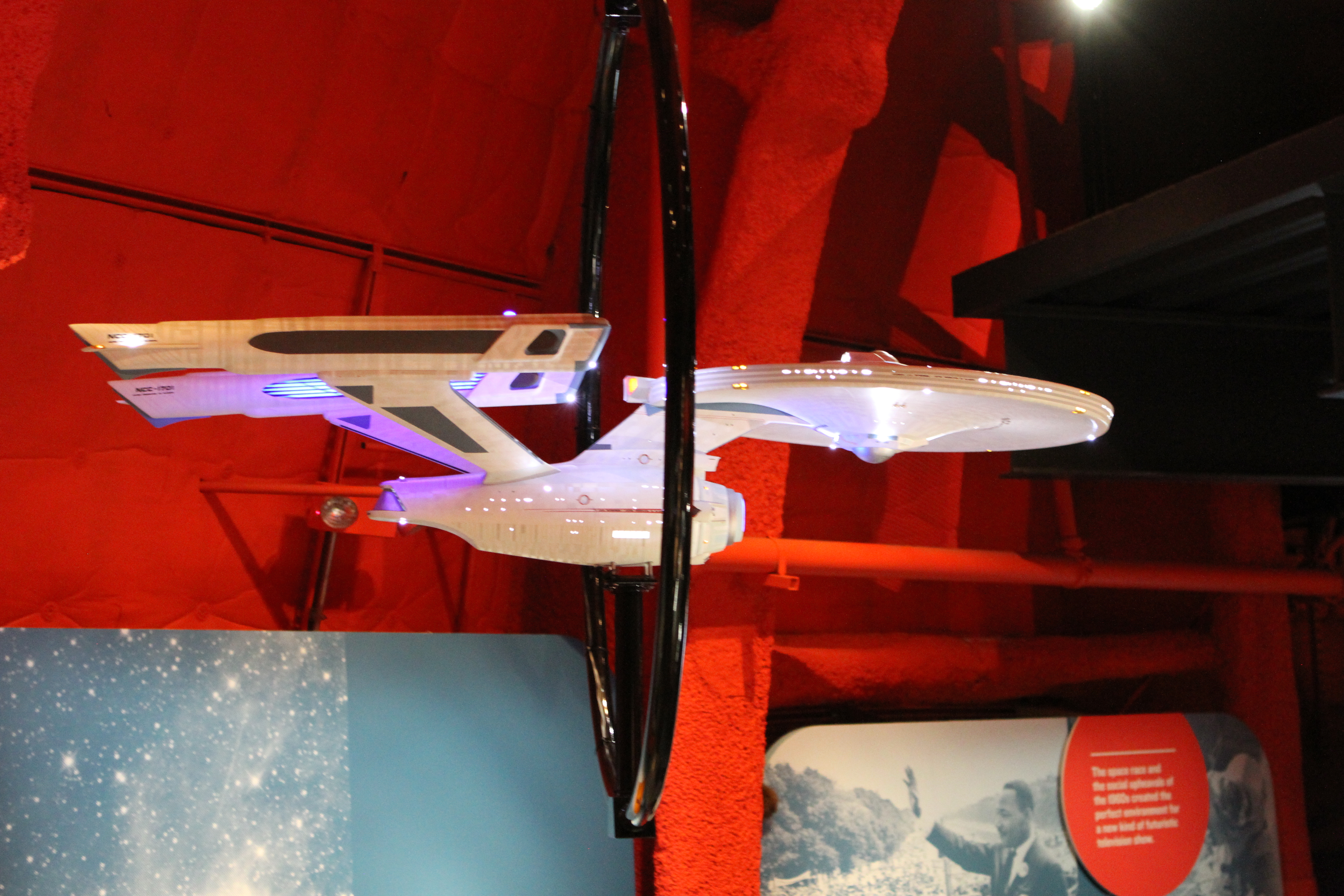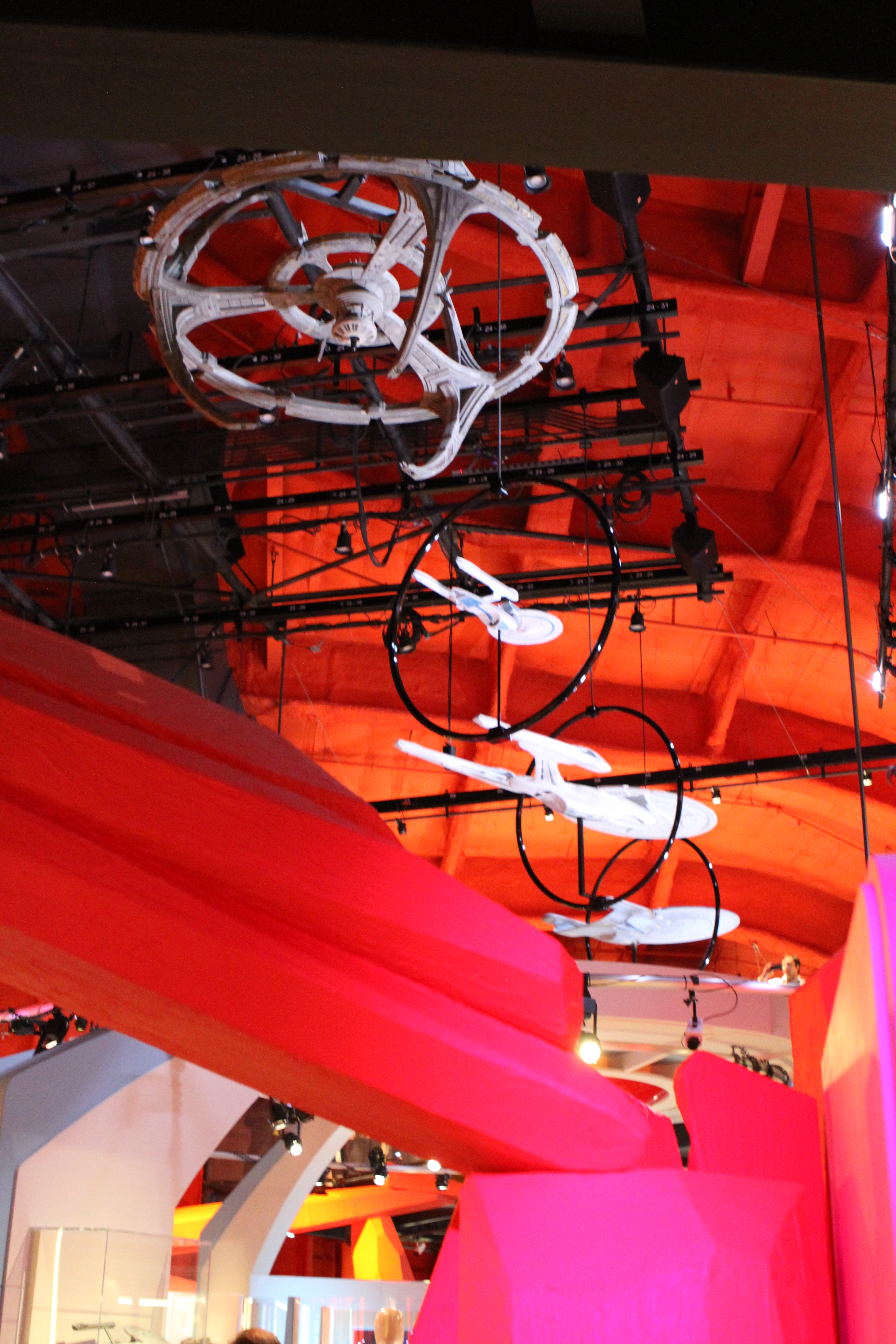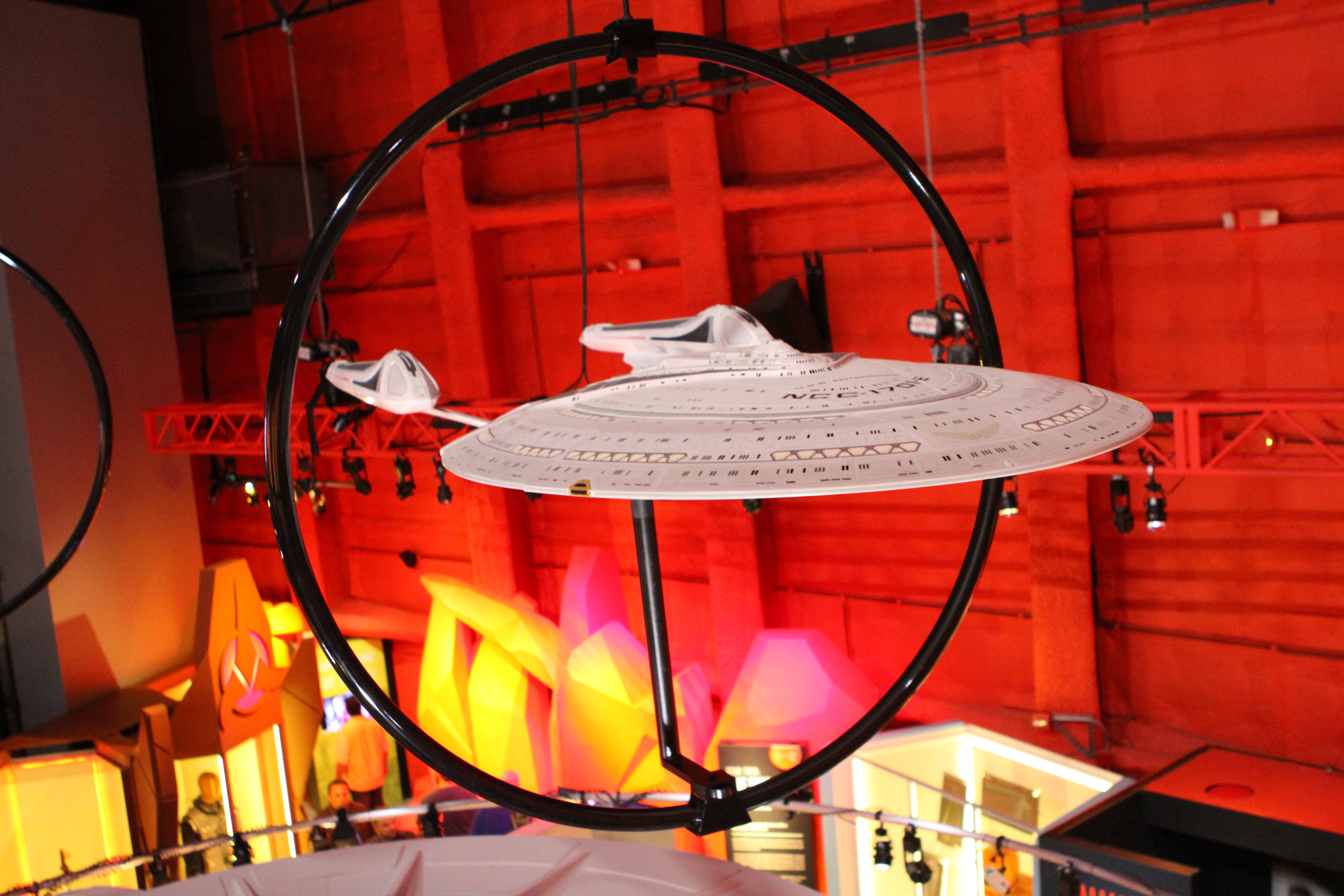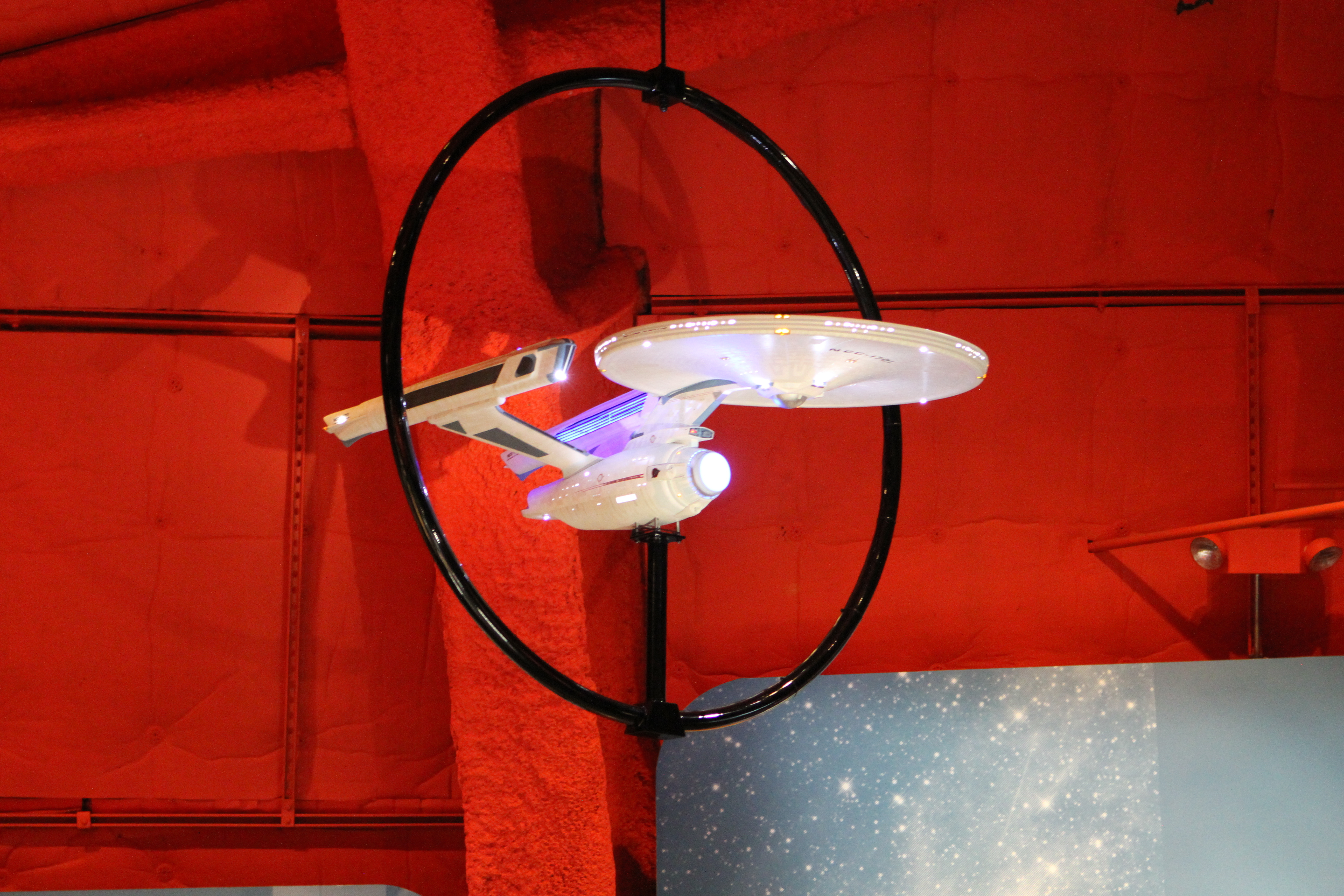 Studio Scale Phase II Enterprise Refit: This is the Phase II converted to TMP, from my dry dock. Its 6 foot long. And really lovely – a great conversion was done. We tried to have Excelsior and Enterprise-E lit, but EMP could not manage it on their display stand. (it’s not like they take a simple plug, its COMPLICATED.)