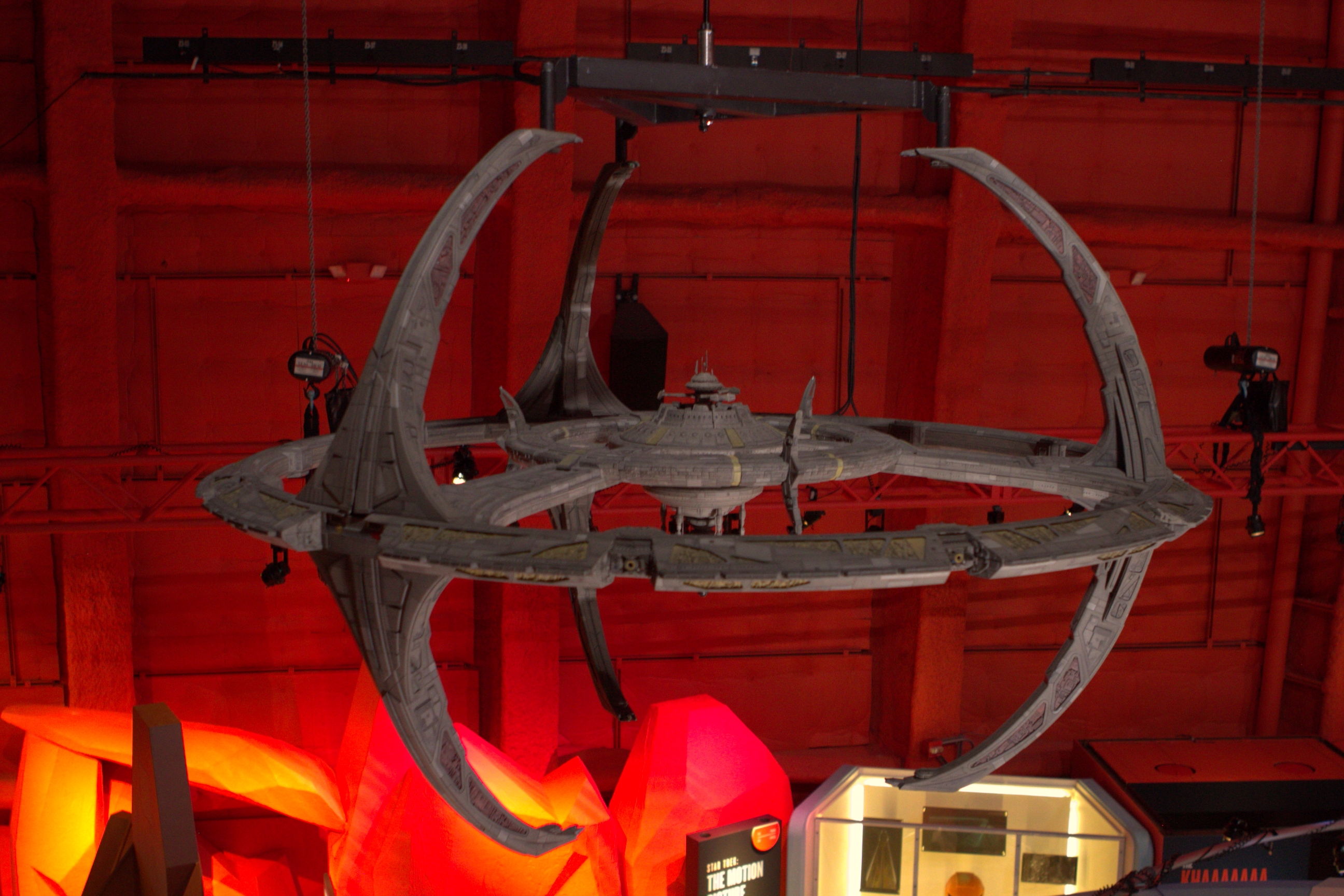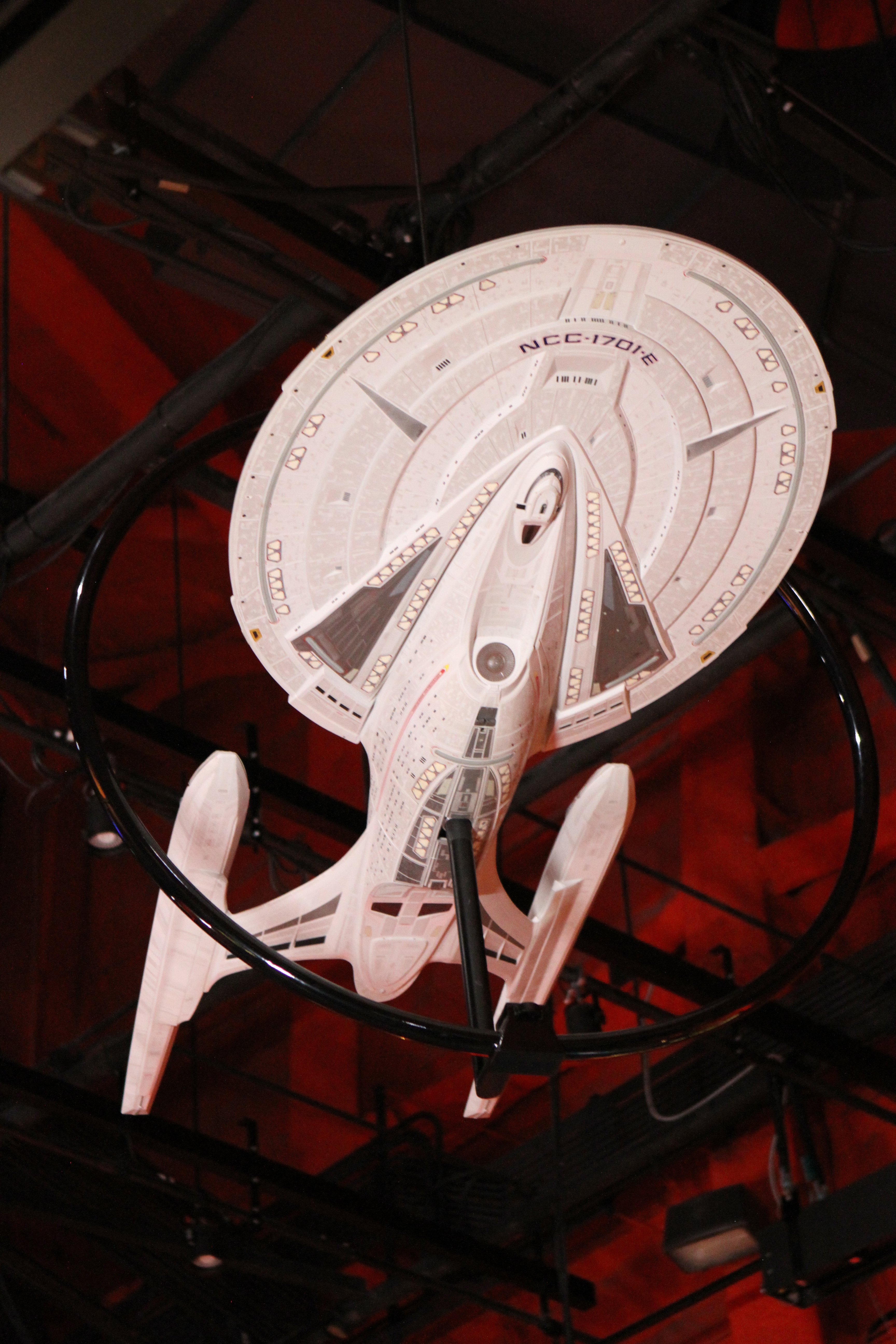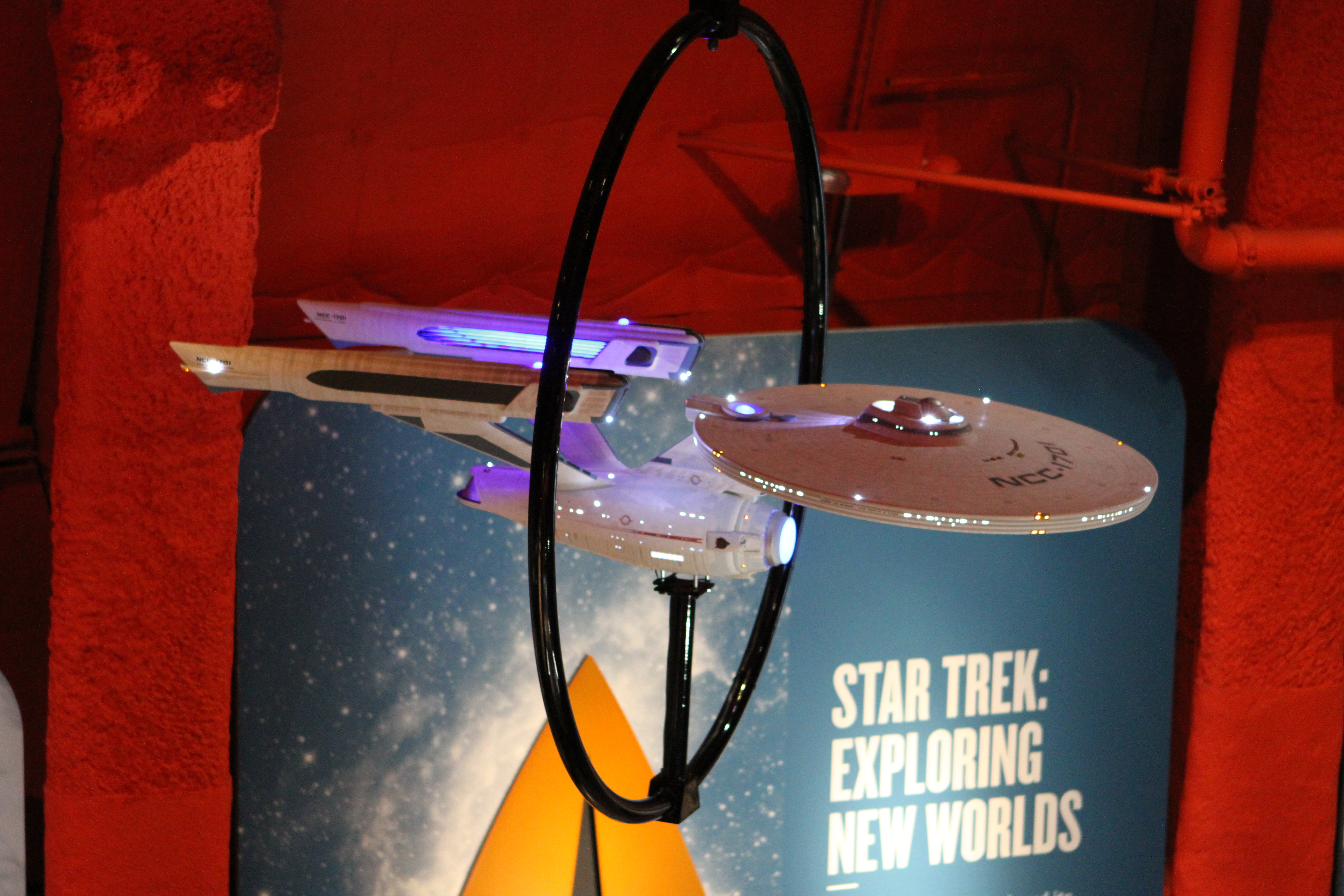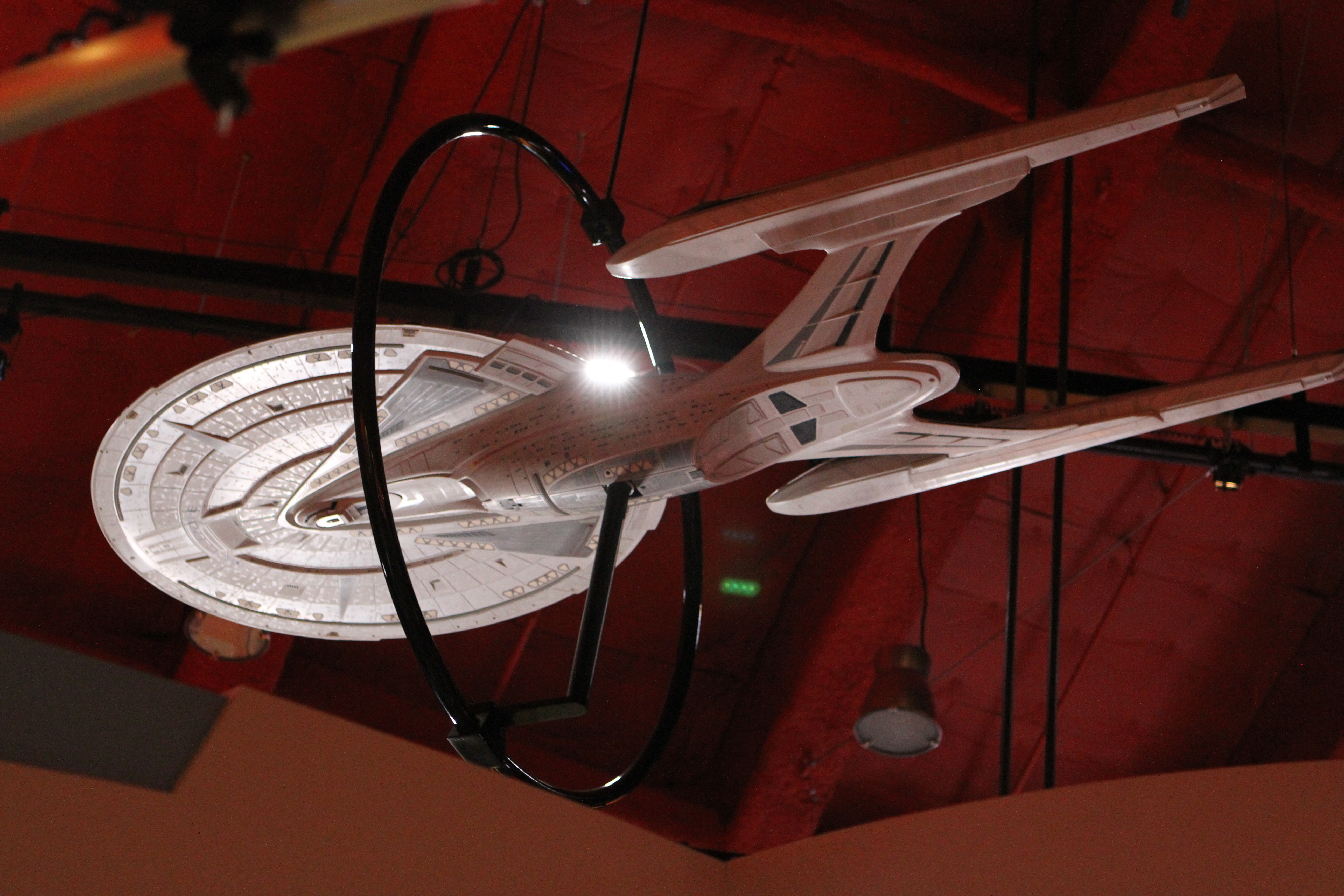 Studio Scale Phase II Enterprise Refit: This is the Phase II converted to TMP, from my dry dock. Its 6 foot long. And really lovely – a great conversion was done. We tried to have Excelsior and Enterprise-E lit, but EMP could not manage it on their display stand. (it’s not like they take a simple plug, its COMPLICATED.)