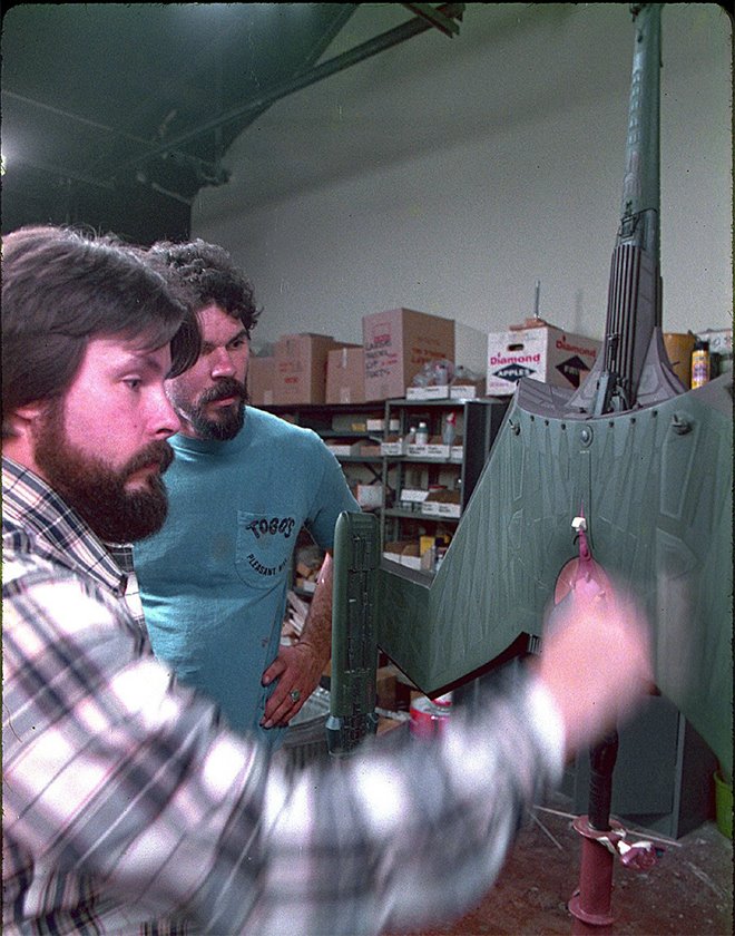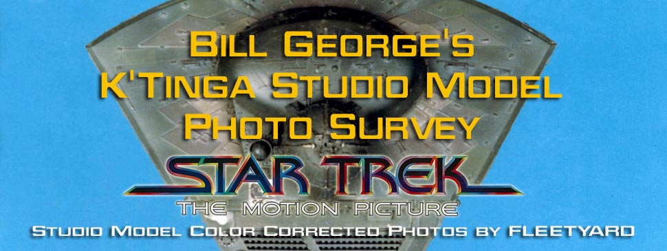 One mystery remains about the model as we see it in Bill George’s photos though. You will notice a white substance that clings to the panel lines and other details on the model. Some might think it is dust that settled in from storage, but dust wouldn’t have settled just as much into the bottom of the model as it would to the top. This white substance is evenly distributed over the model. Bill said that it wasn’t powdery, but would come off when touched. The best theory we have about this was that it probably had to do with some of the “lightning” effects shown when the ships were destroyed by V’Ger. I think it is a weathering. It really ties the whole ship together. But if it was used for special effects, was it there the first day of shooting? My working conclusion is “no”.