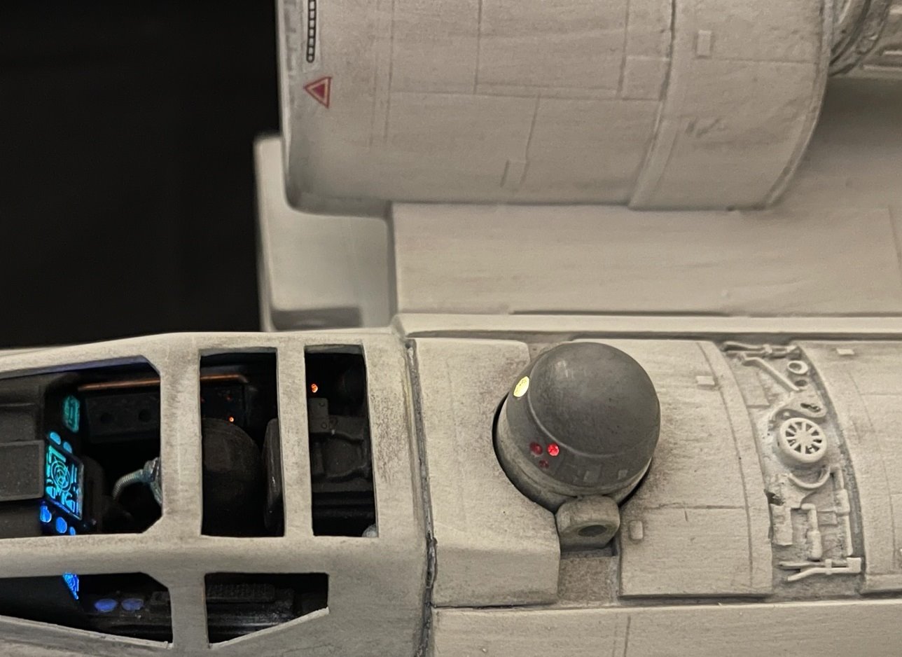 This was a Studio-Scale-ish X-Wing Concept kit from the long “Out of Production” Sovereign Replicas stock. The kit was based on the McQuarrie concept drawings. The cockpit, dashboard, and droid are lit along with flickering lights in the engine. Subtle weathering was applied to finish this elegant version of the X-Wing.
