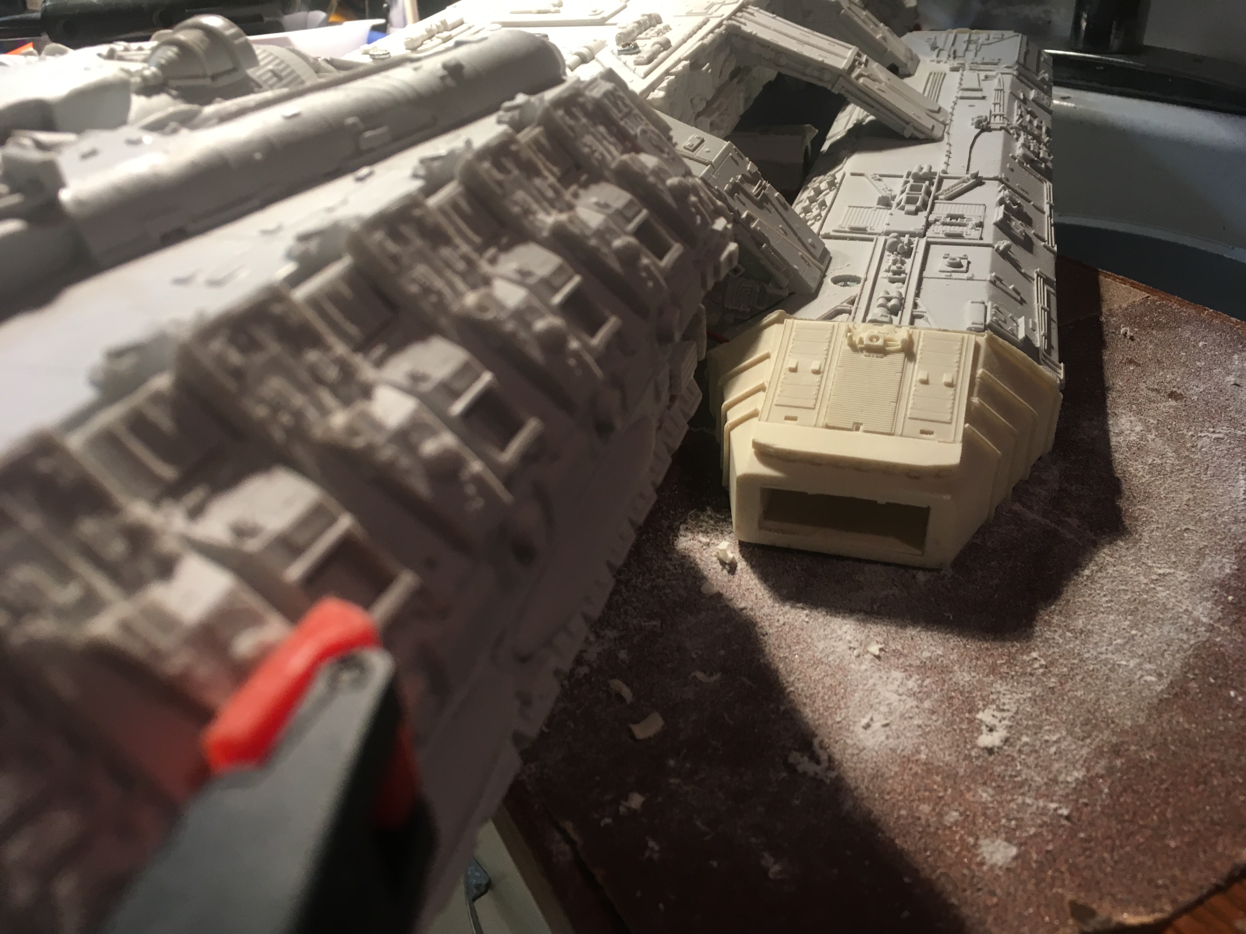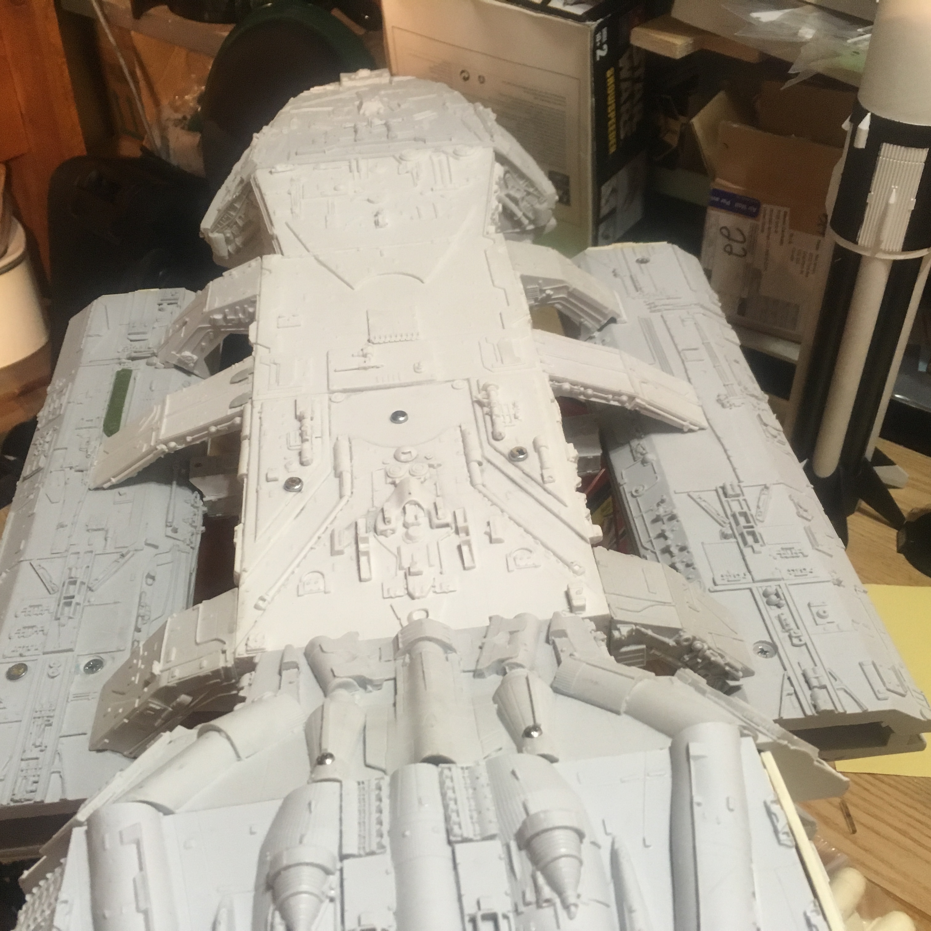 Working on  Salzo Battlestar,.. a Kit Build for a client, Steve is working out what is best to produce the desired studio model lighting look.