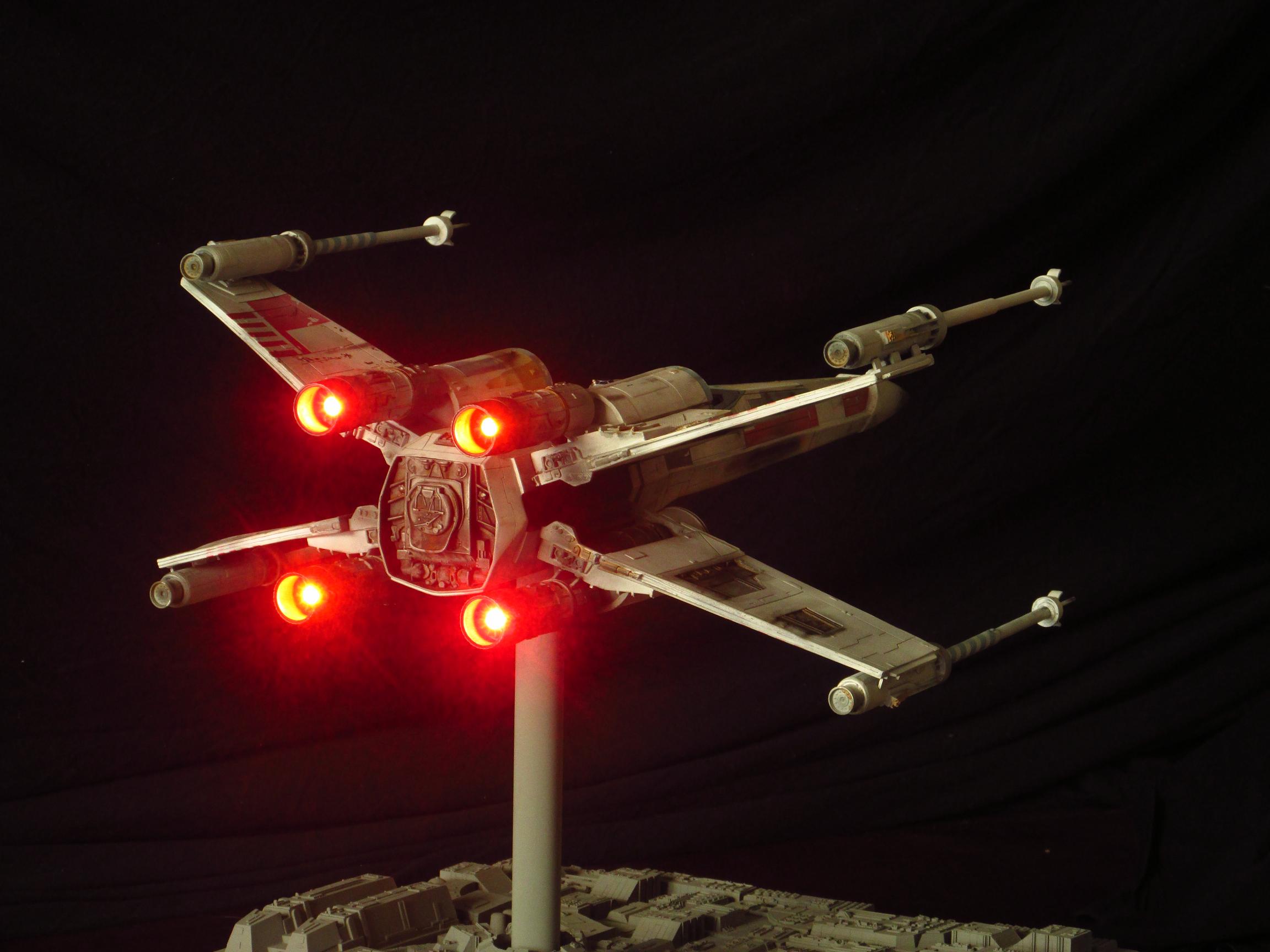 Here is a small new project. The original is an ICON X-Wing. This was a case of transport damage and had to be rebuilt. He got a new paint, a new base, and lighting effects.