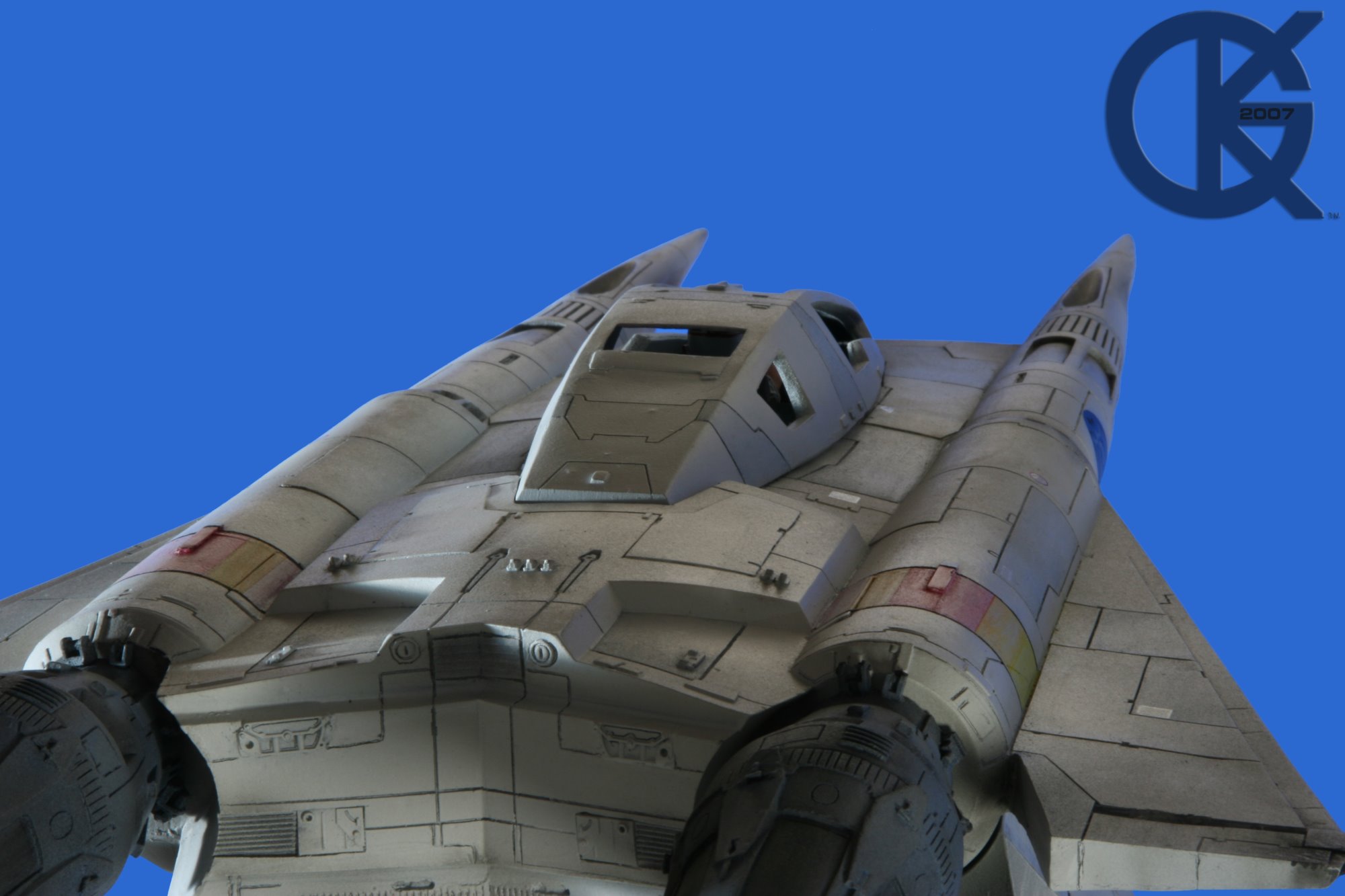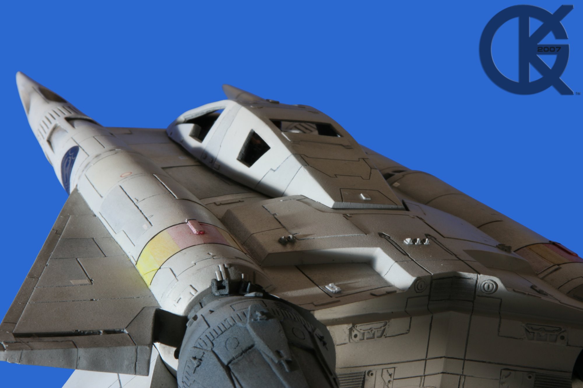 Shown here on Modeler Magic back on 2009-01-08, this piece was molded from an original cast, then built by artist R.L. Bleecker back in 2007. He did a wonderful job bringing this cast piece to life! It is a thrill to have the Thunderfighter (Starfighter) from Buck Rogers in the 25th Century here! This is as close to the real thing as it gets, and it was a real pleasure to photograph!