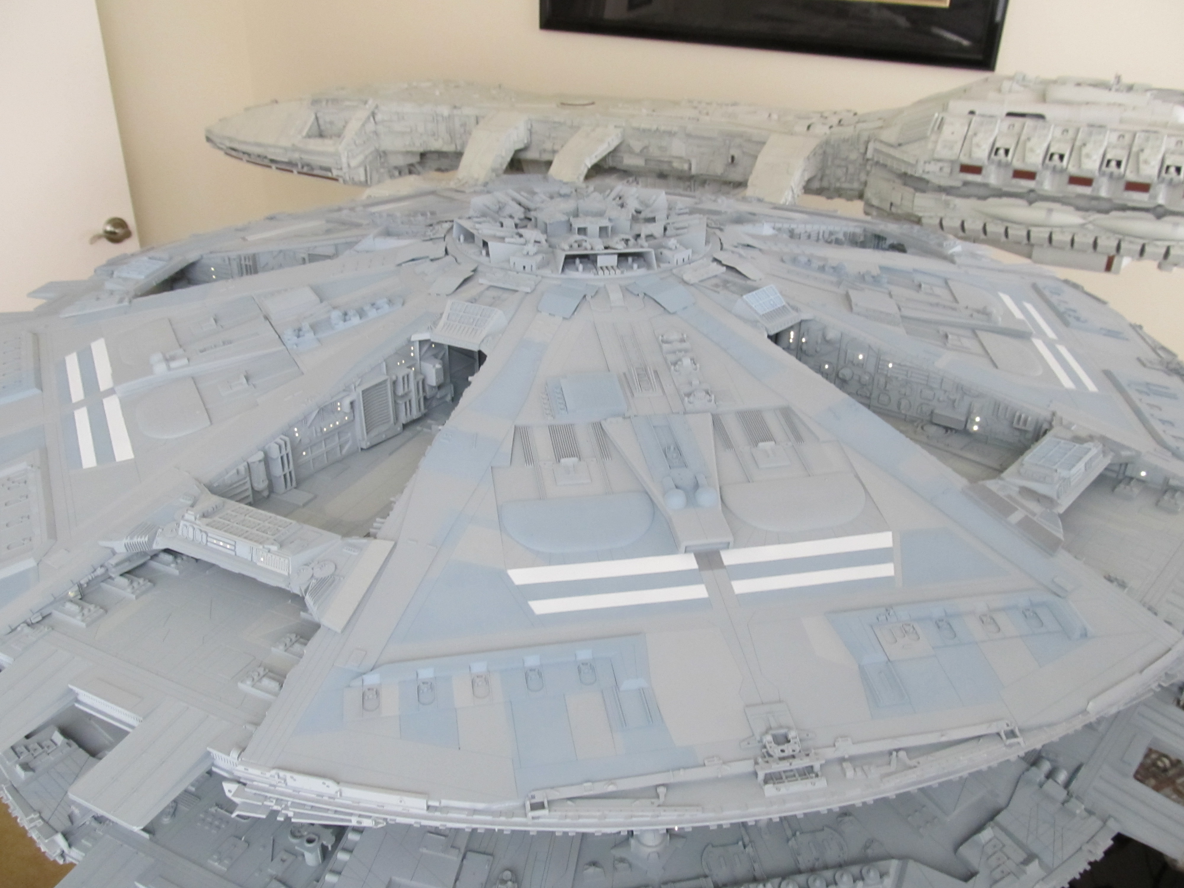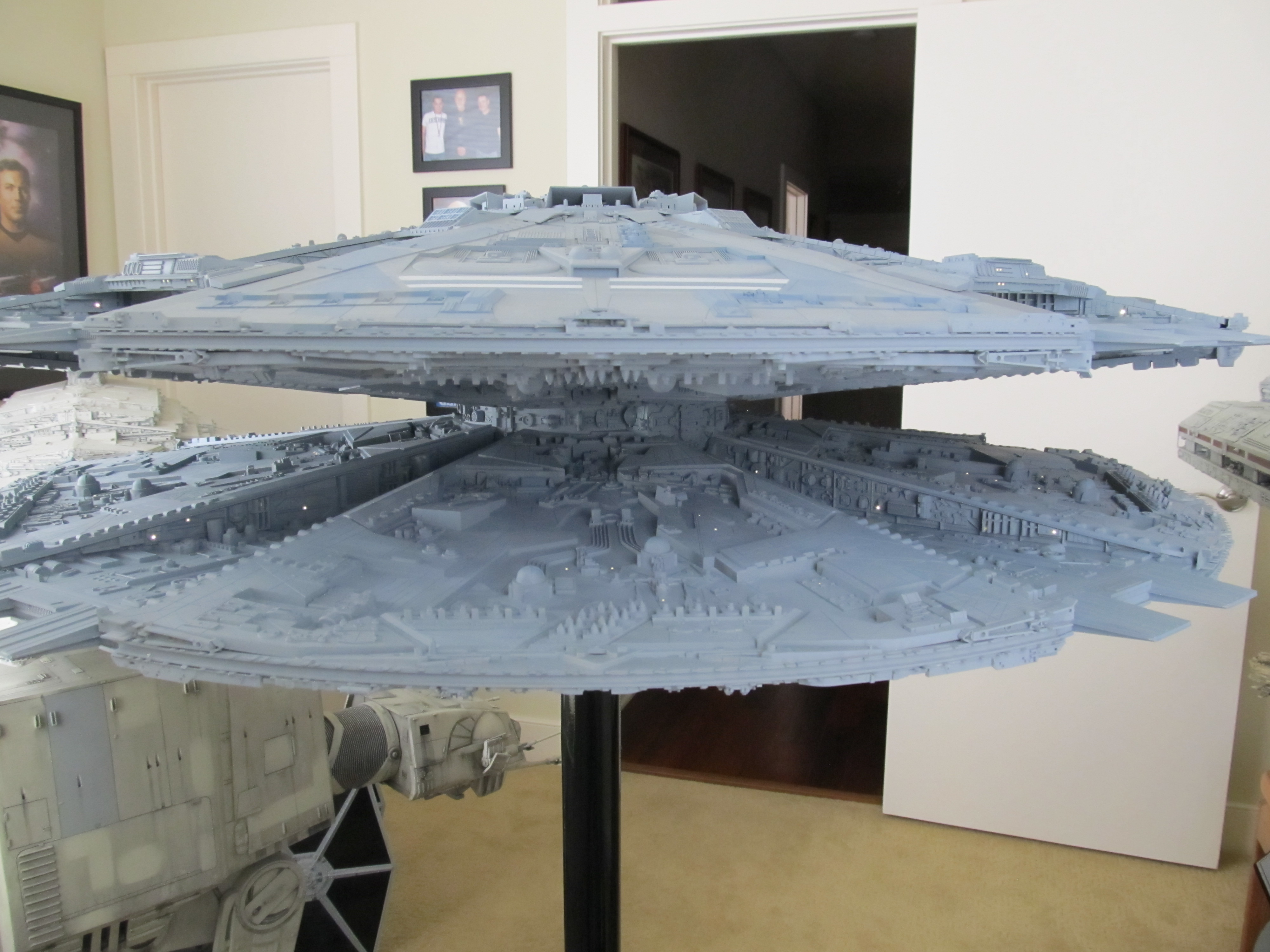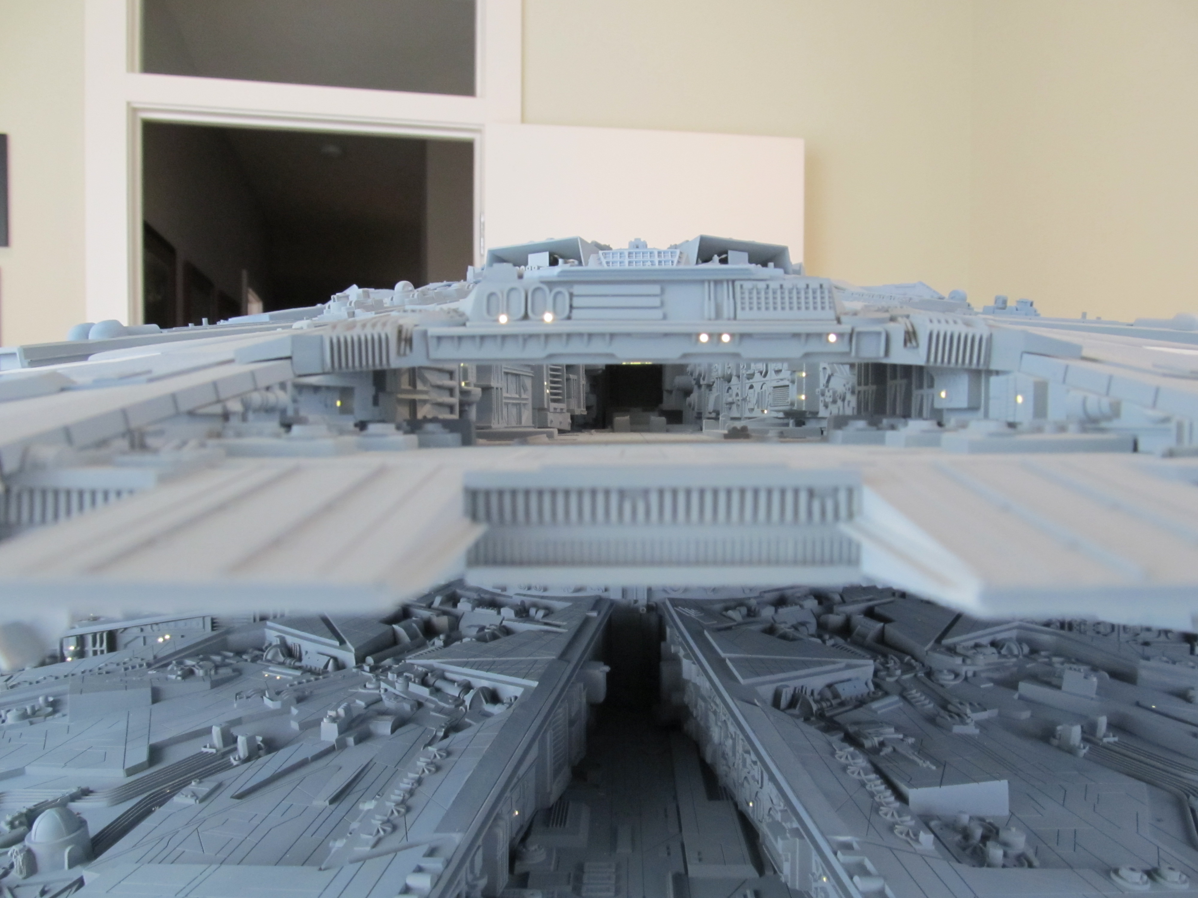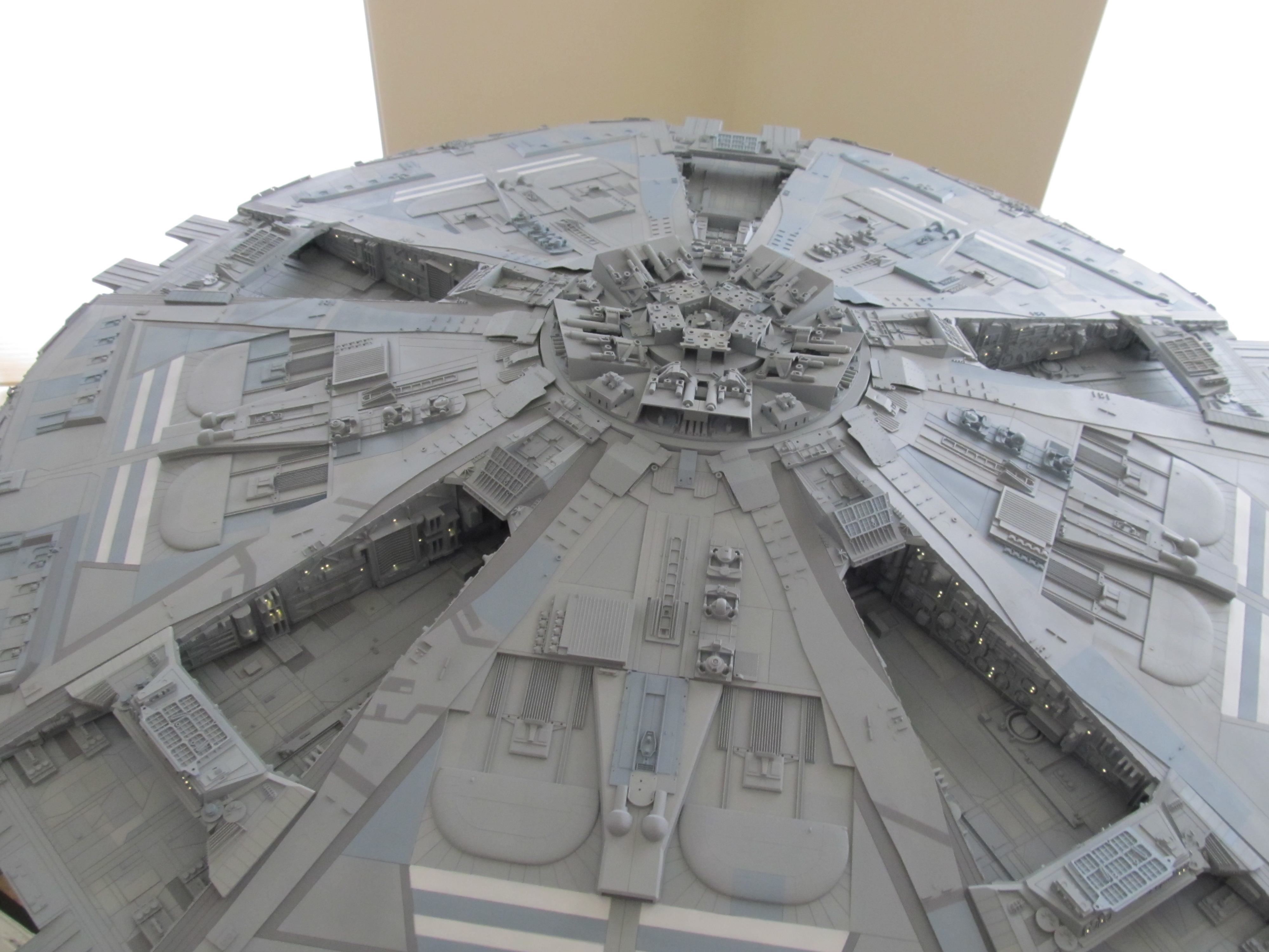Collector and friend Michael Plante emailed me the photos of his recently delivered Cylon Base Ship replica from the 1978 film Battlestar Galactica! Canadian artist Sean Corsini (of Northern Shipyards) crafted this piece from top to bottom, even the middle interior has a squadron of Cylon Raiders inside that can be seen if one looks closely enough. Michael is thrilled with this piece as I know I too would be if it were in the collection here. Beautiful!!