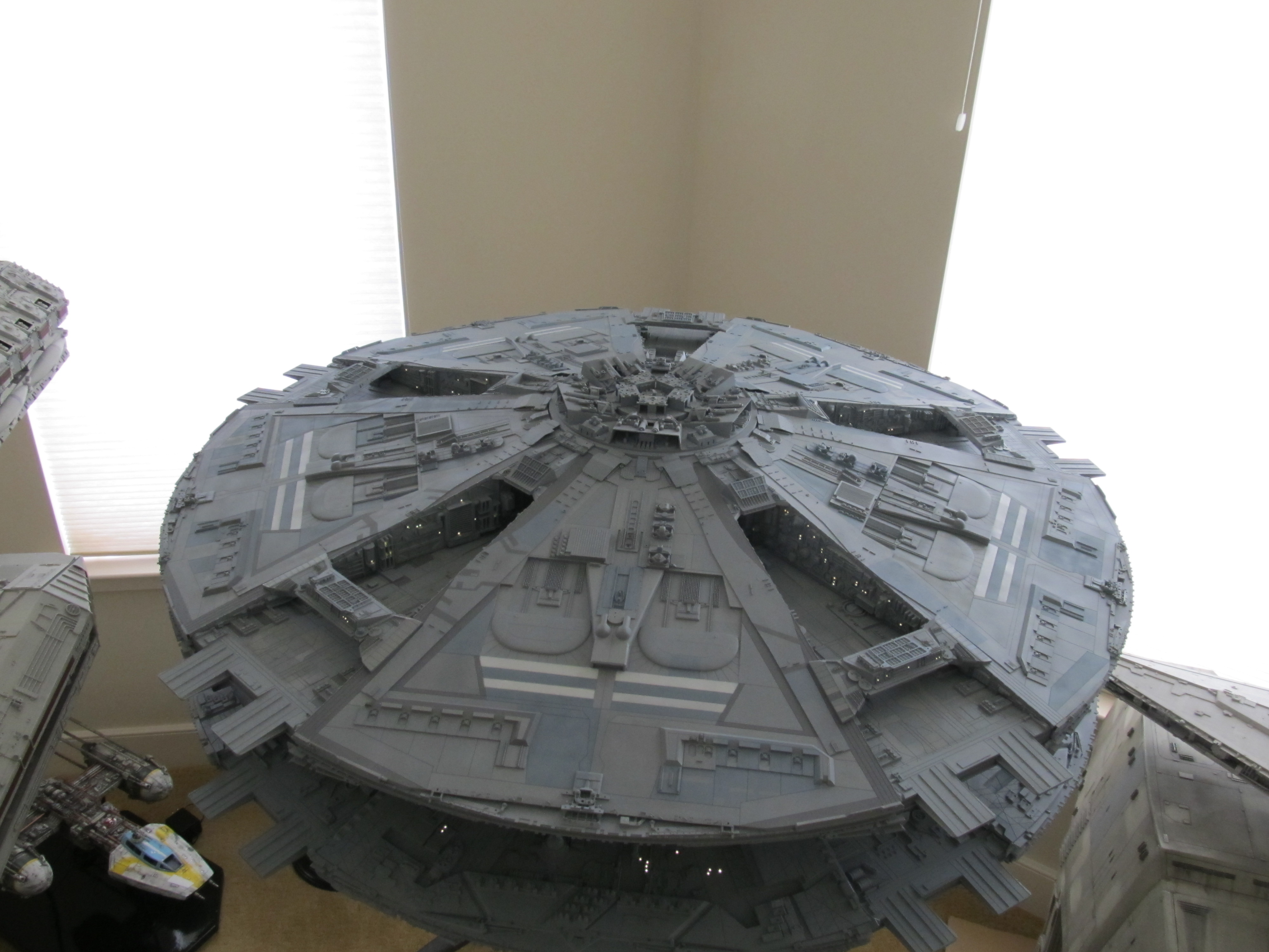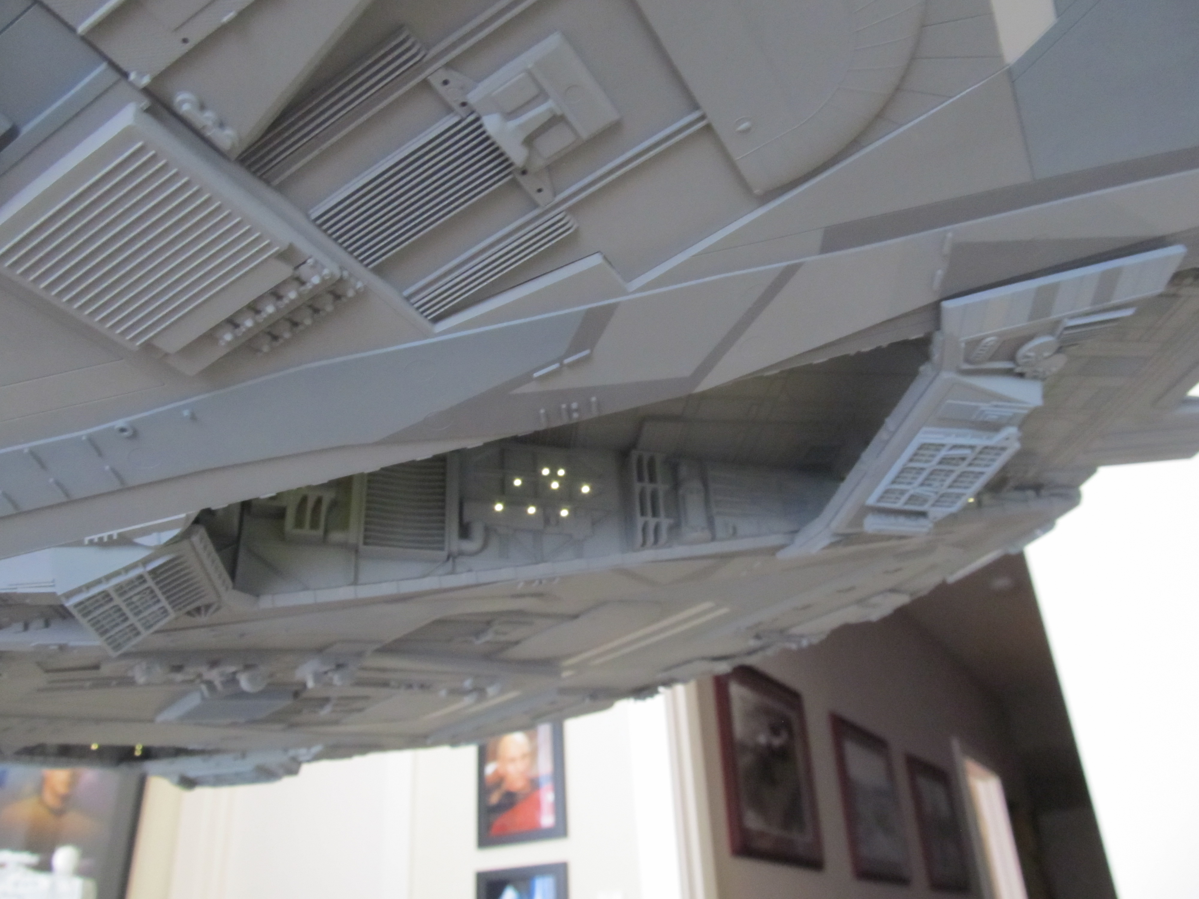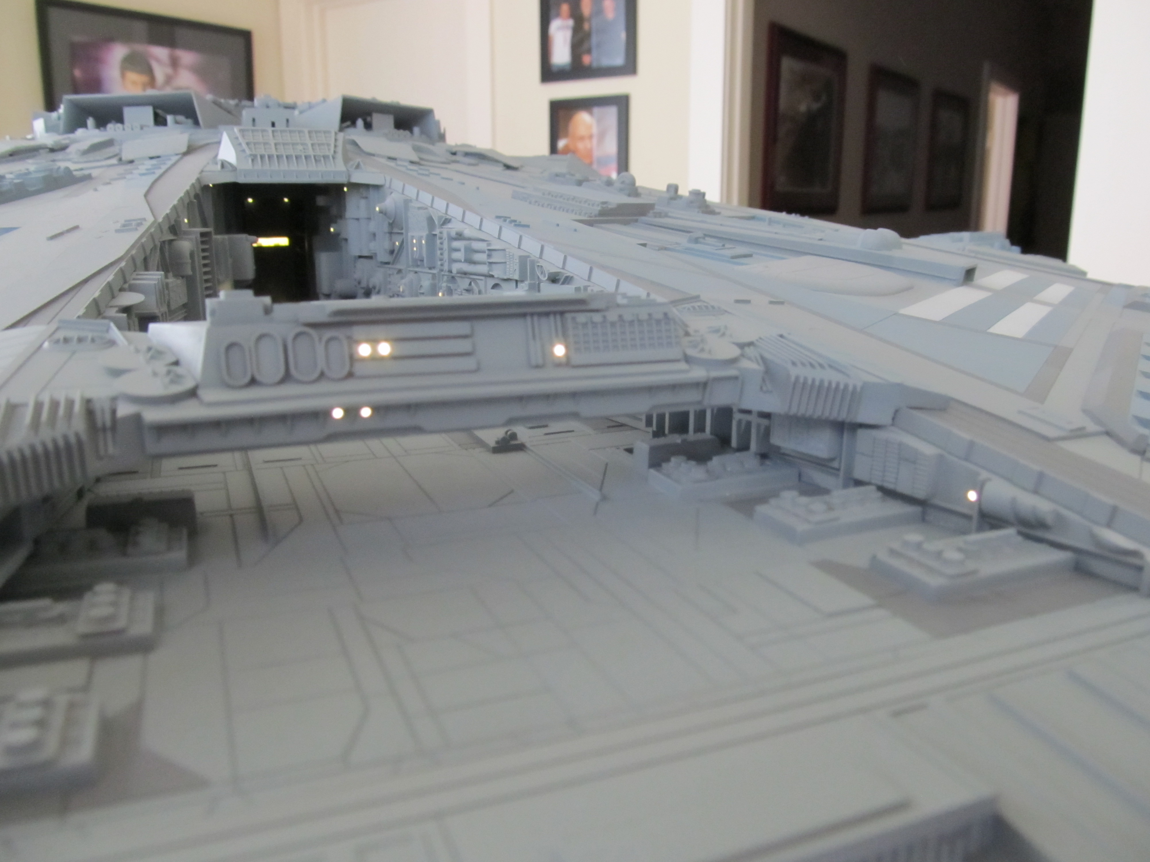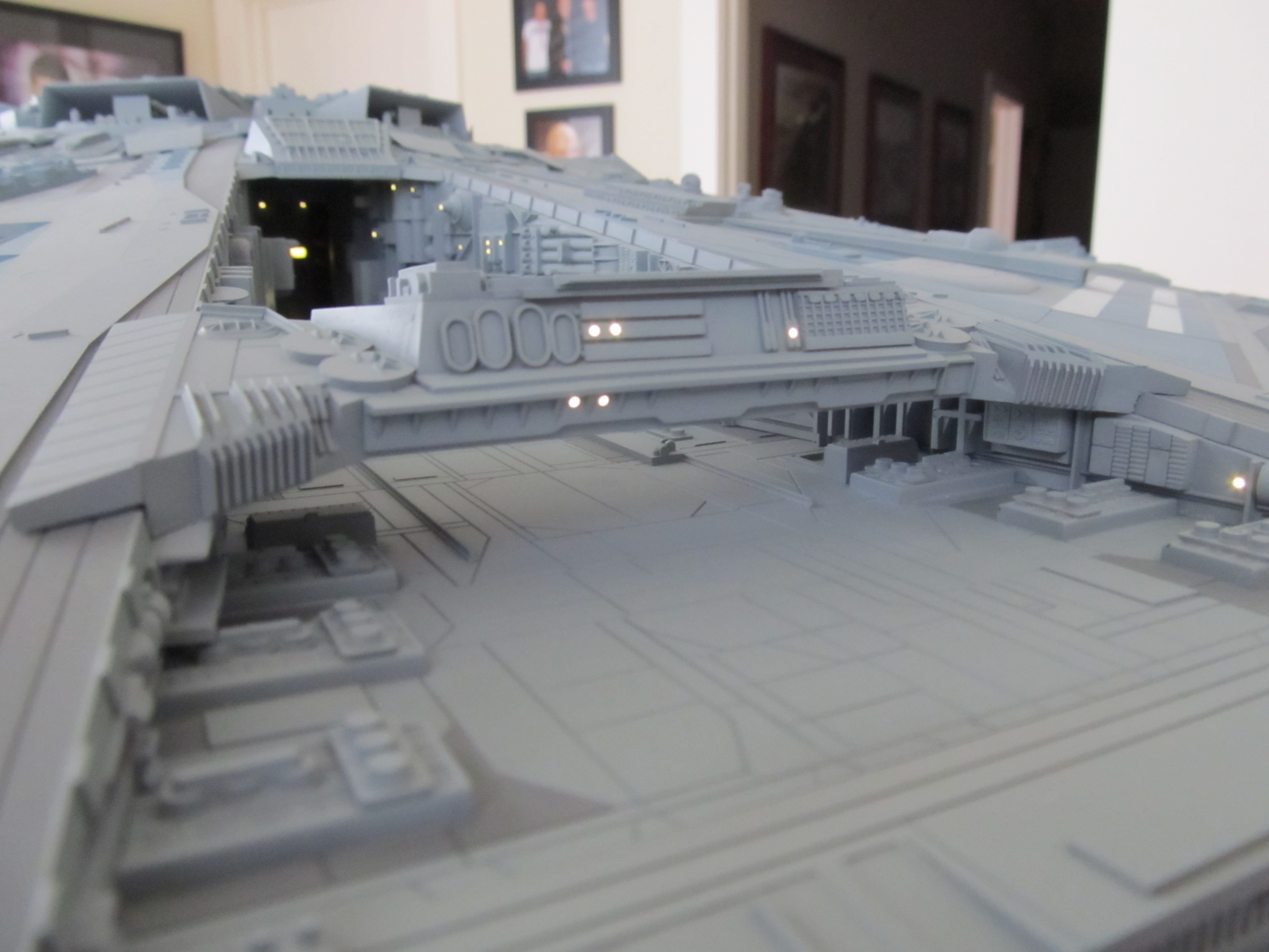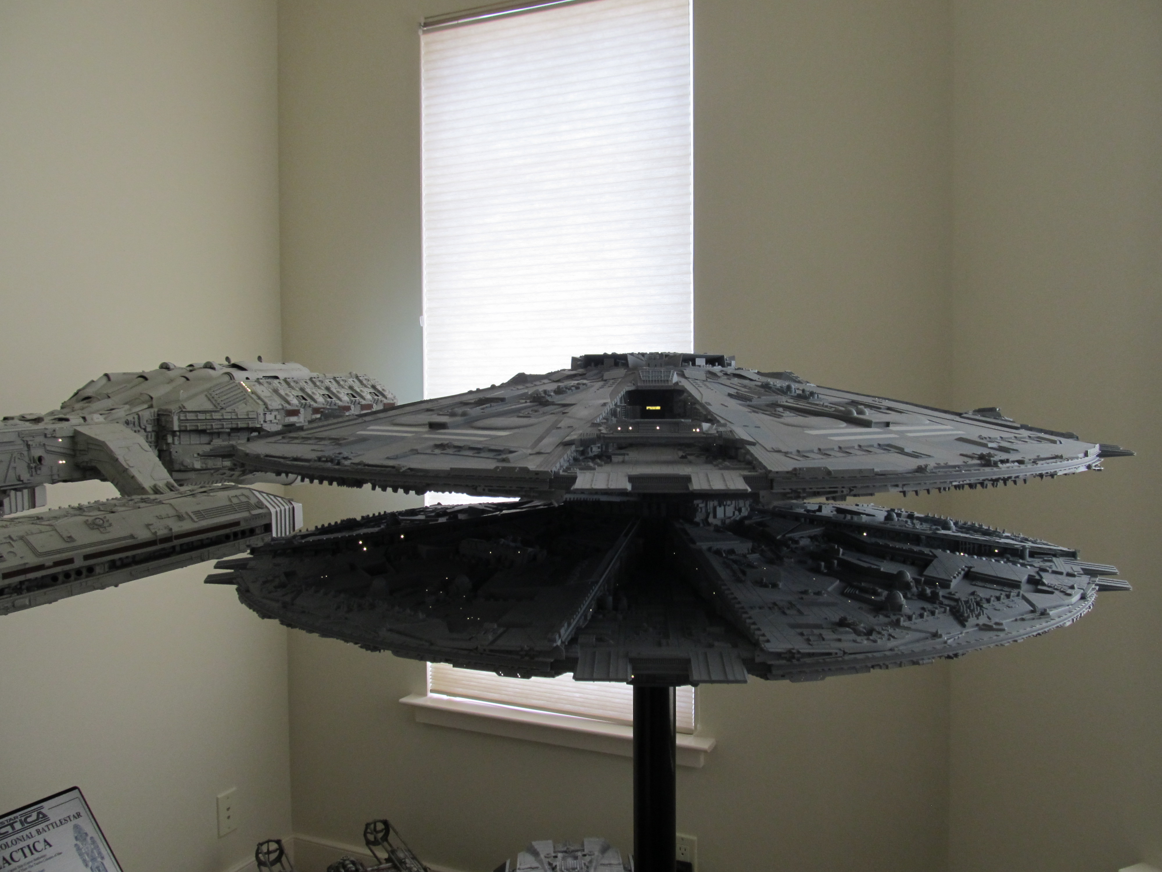 Collector and friend Michael Plante emailed me the photos of his recently delivered Cylon Base Ship replica from the 1978 film Battlestar Galactica! Canadian artist Sean Corsini (of Northern Shipyards) crafted this piece from top to bottom, even the middle interior has a squadron of Cylon Raiders inside that can be seen if one looks closely enough. Michael is thrilled with this piece as I know I too would be if it were in the collection here. Beautiful!!
