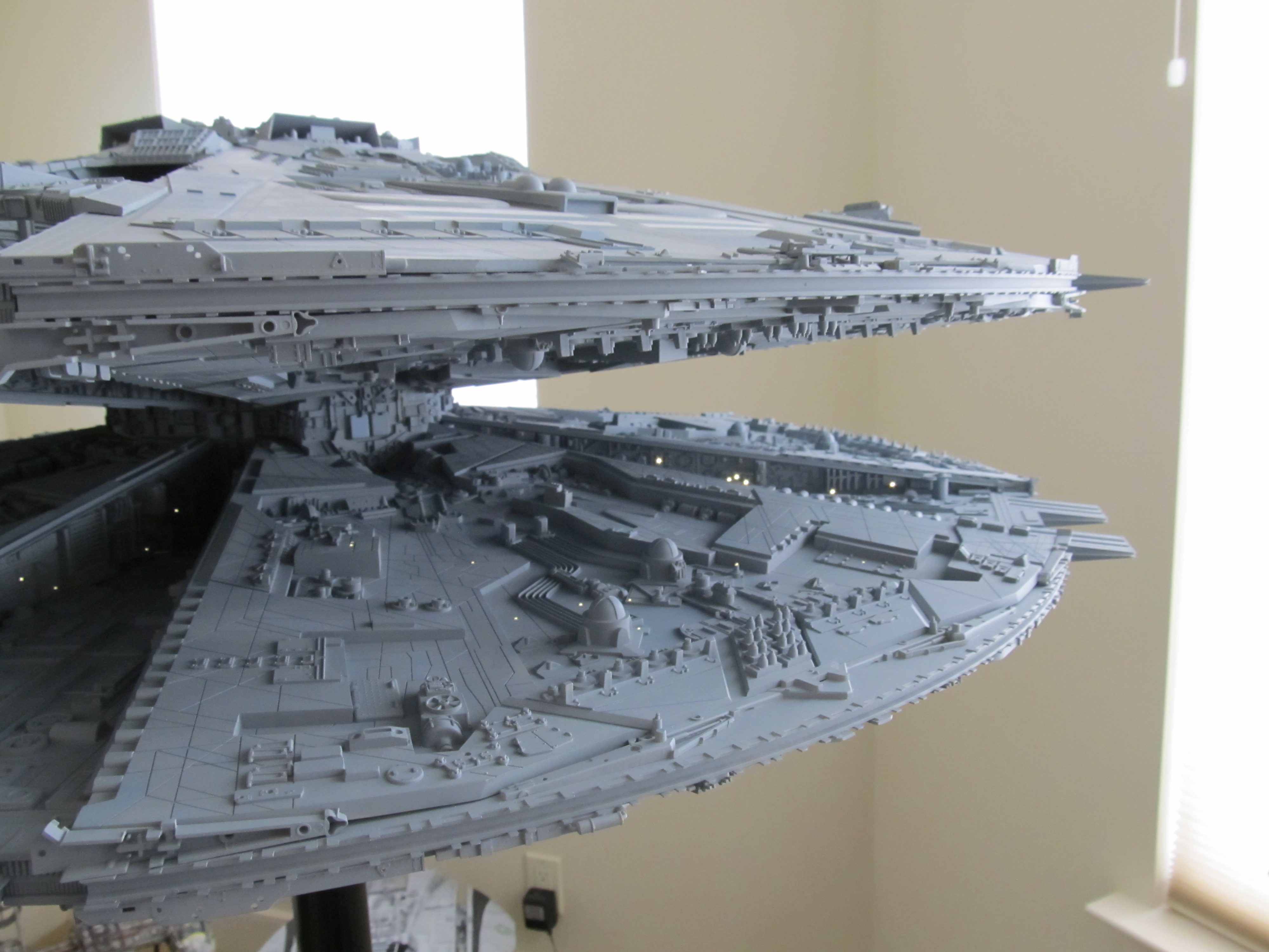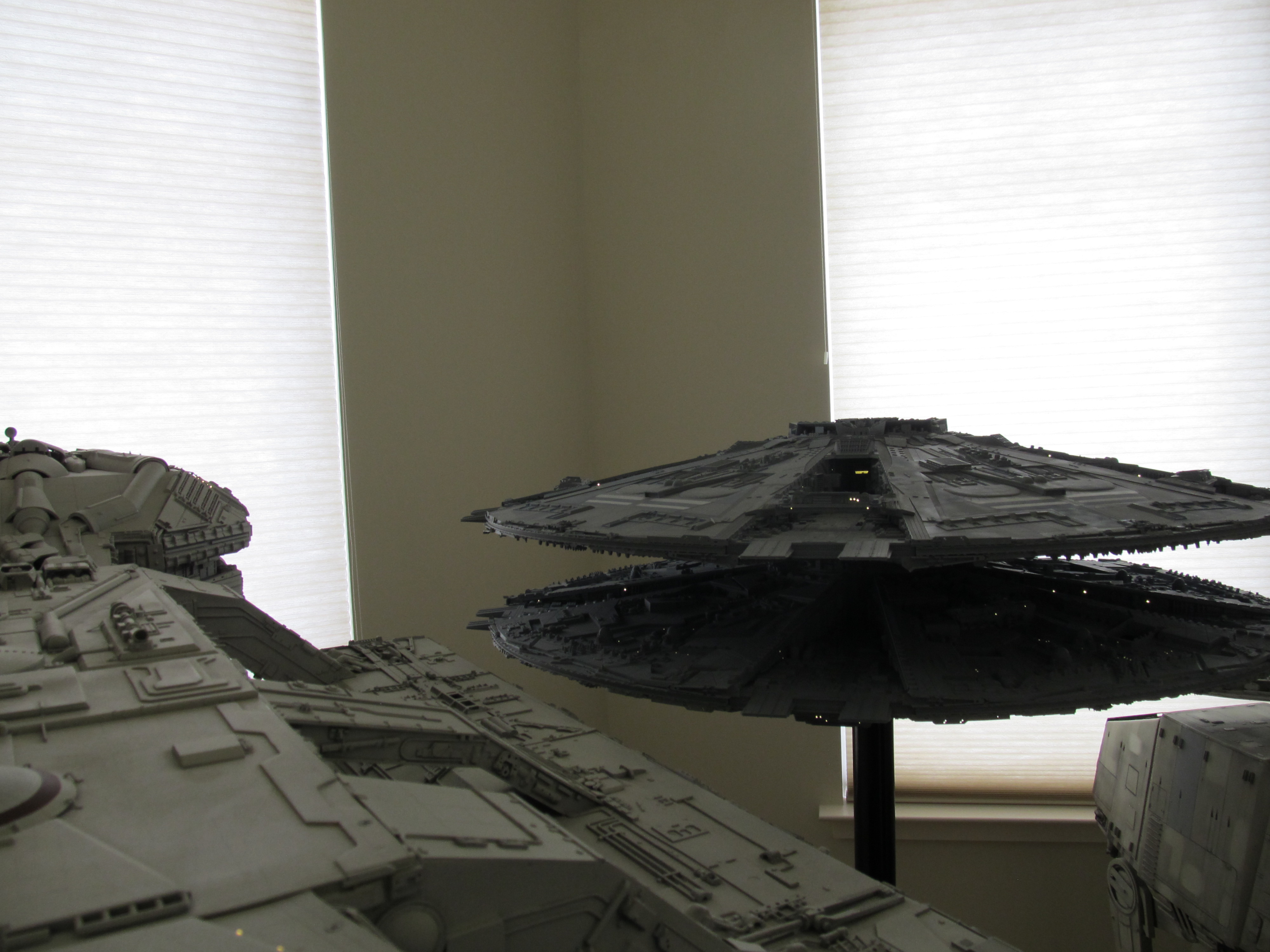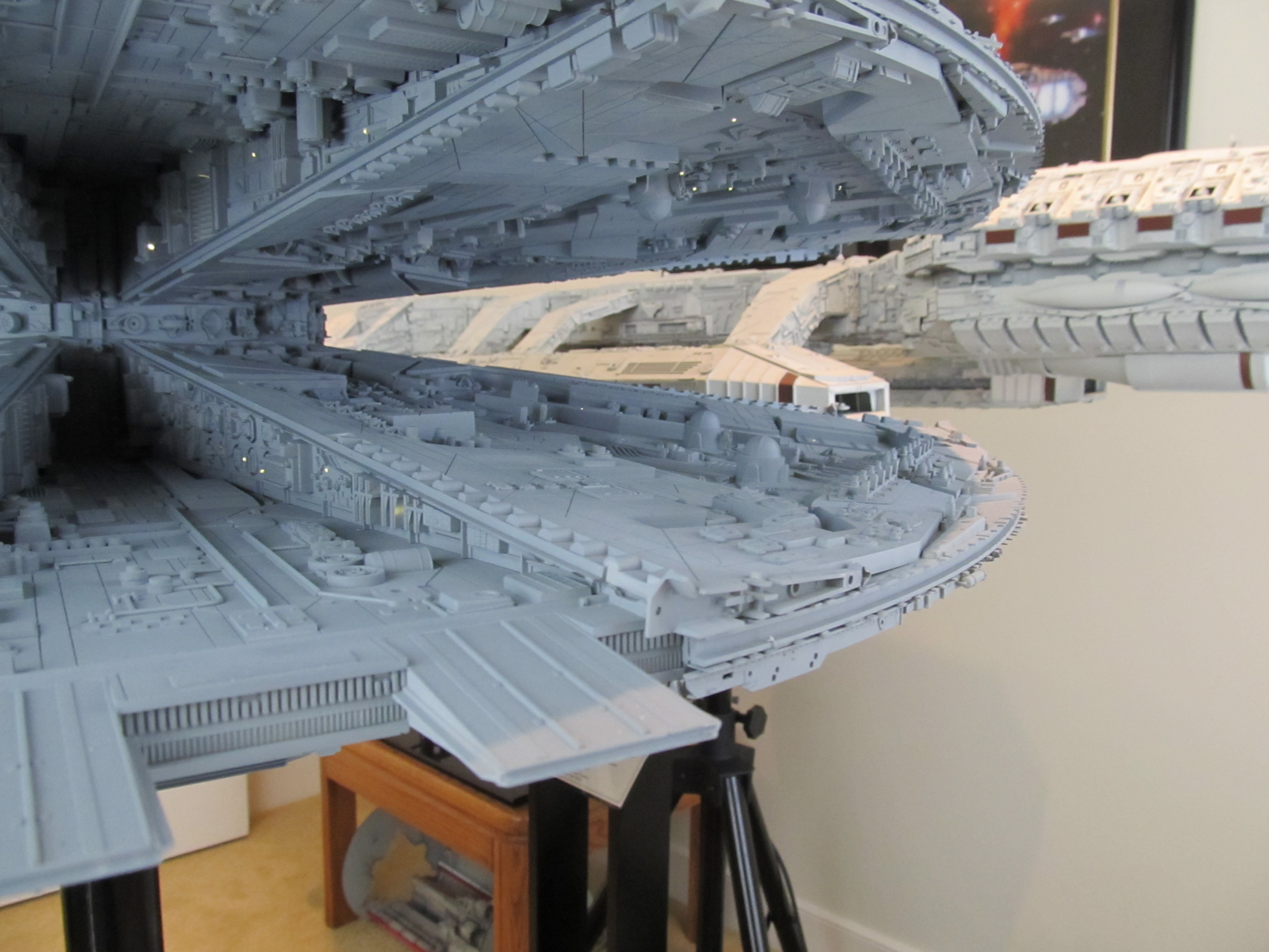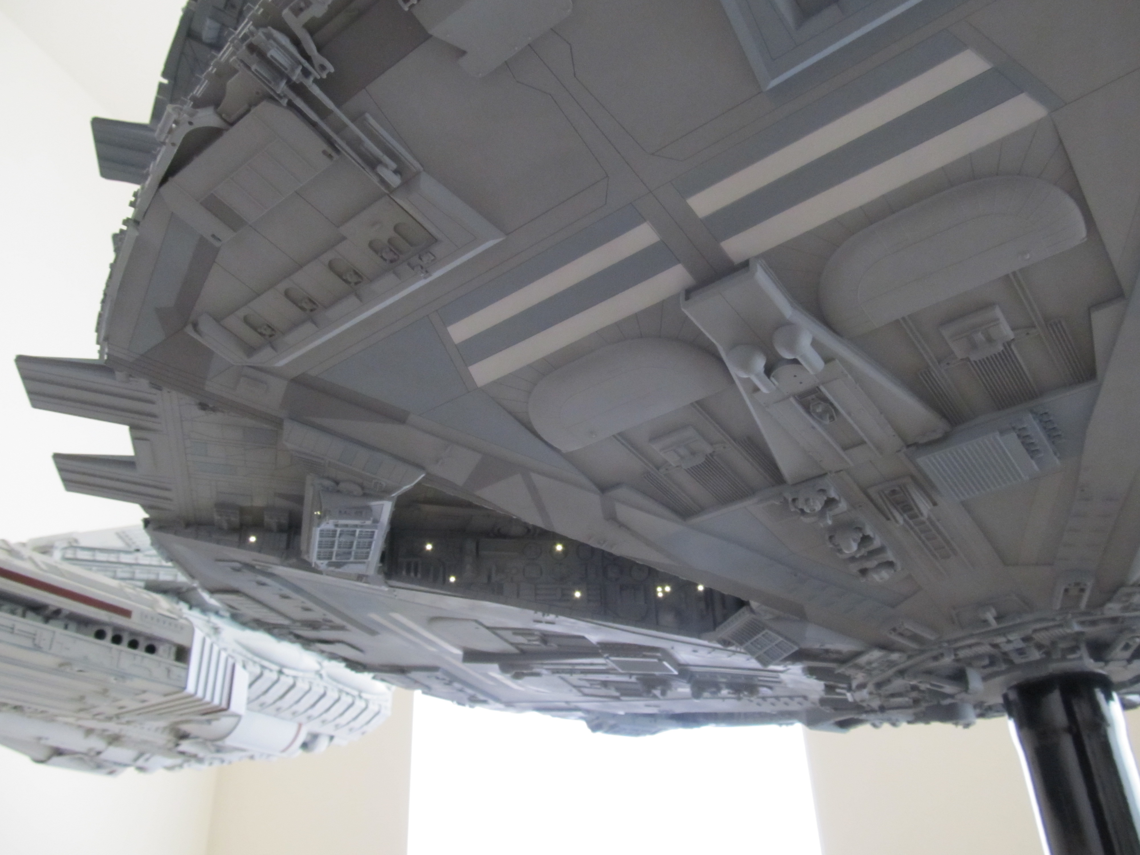 Collector and friend Michael Plante emailed me the photos of his recently delivered Cylon Base Ship replica from the 1978 film Battlestar Galactica! Canadian artist Sean Corsini (of Northern Shipyards) crafted this piece from top to bottom, even the middle interior has a squadron of Cylon Raiders inside that can be seen if one looks closely enough. Michael is thrilled with this piece as I know I too would be if it were in the collection here. Beautiful!!