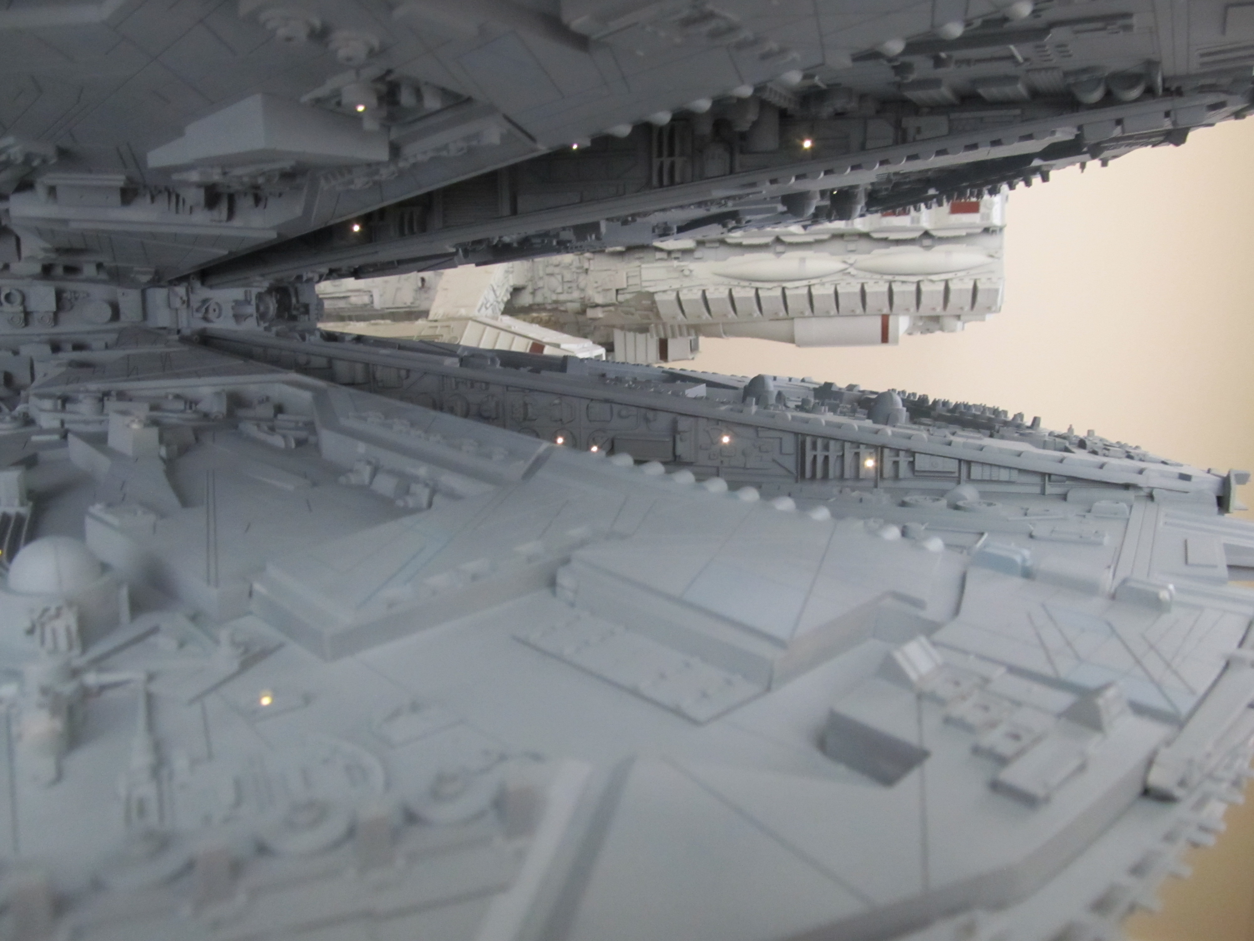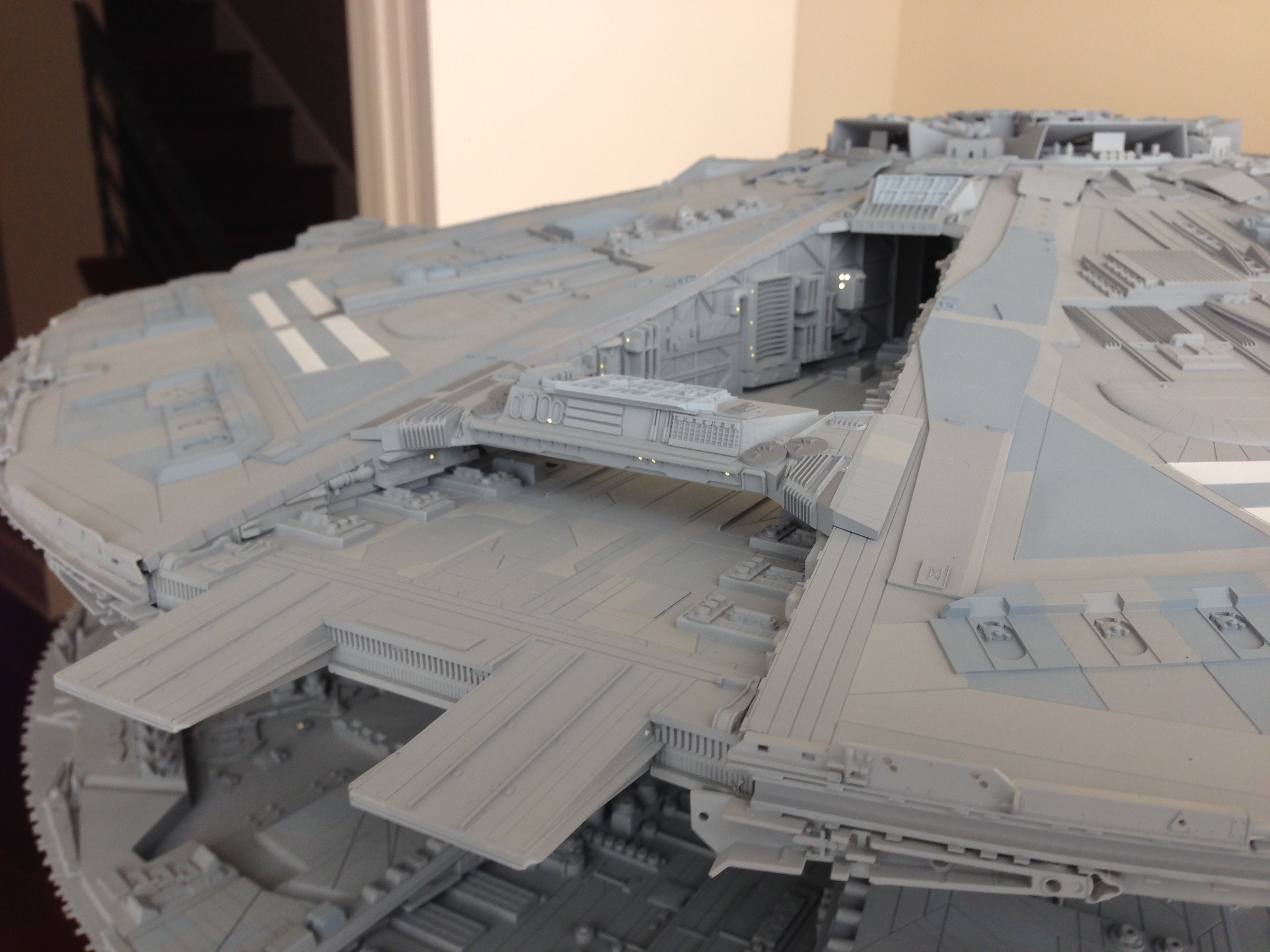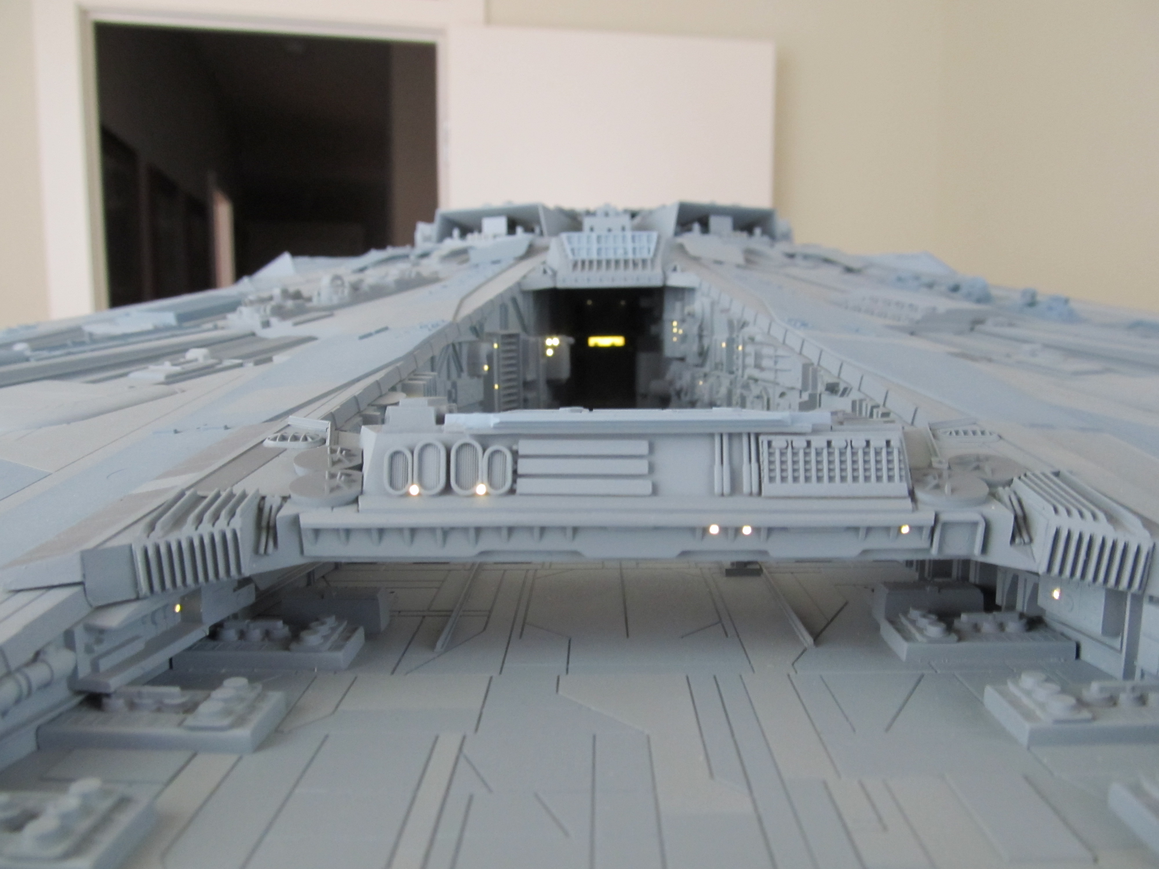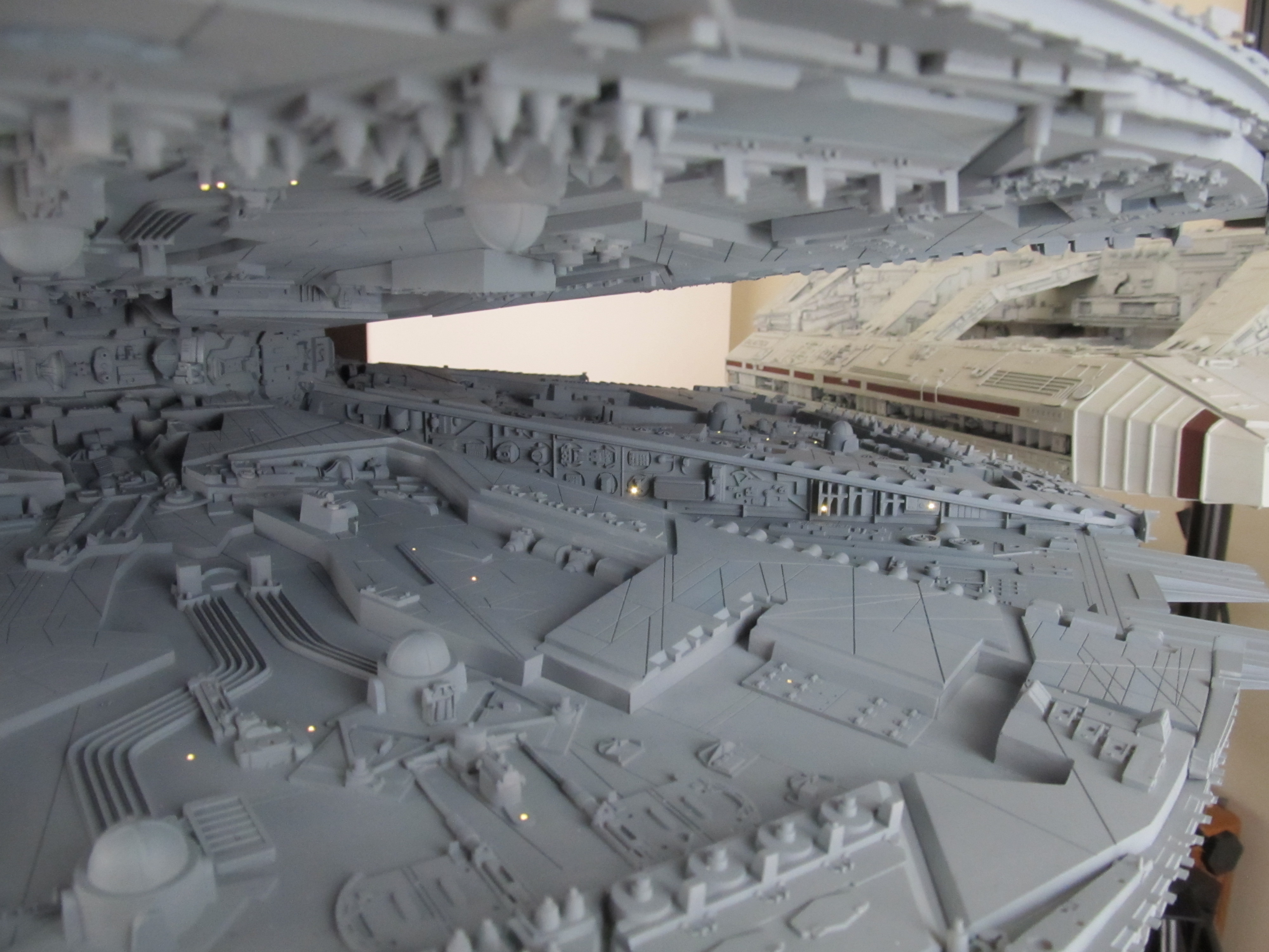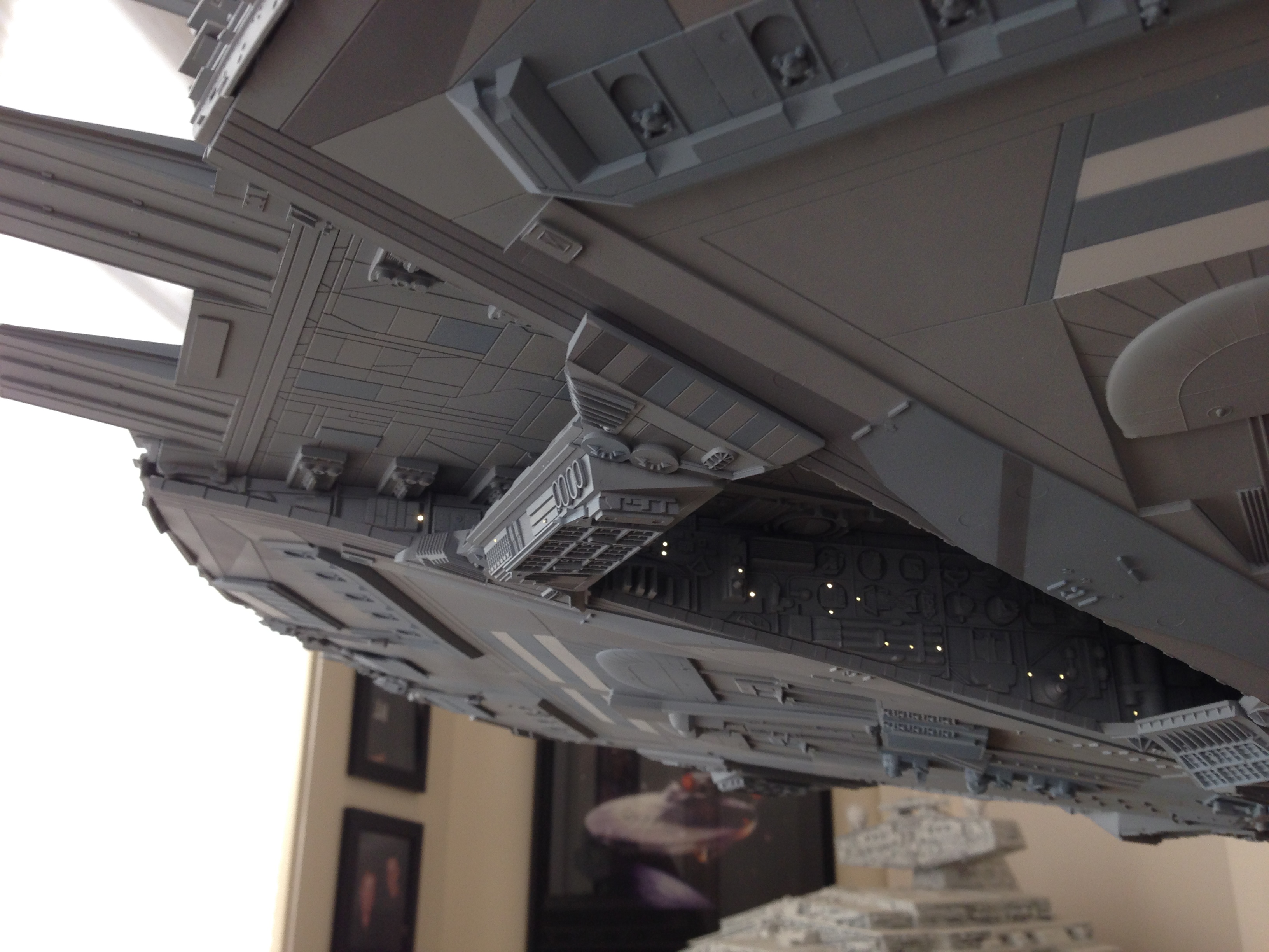 Collector and friend Michael Plante emailed me the photos of his recently delivered Cylon Base Ship replica from the 1978 film Battlestar Galactica! Canadian artist Sean Corsini (of Northern Shipyards) crafted this piece from top to bottom, even the middle interior has a squadron of Cylon Raiders inside that can be seen if one looks closely enough. Michael is thrilled with this piece as I know I too would be if it were in the collection here. Beautiful!!