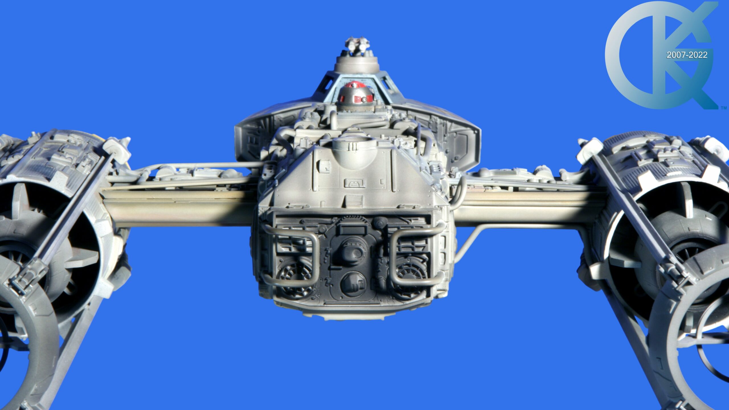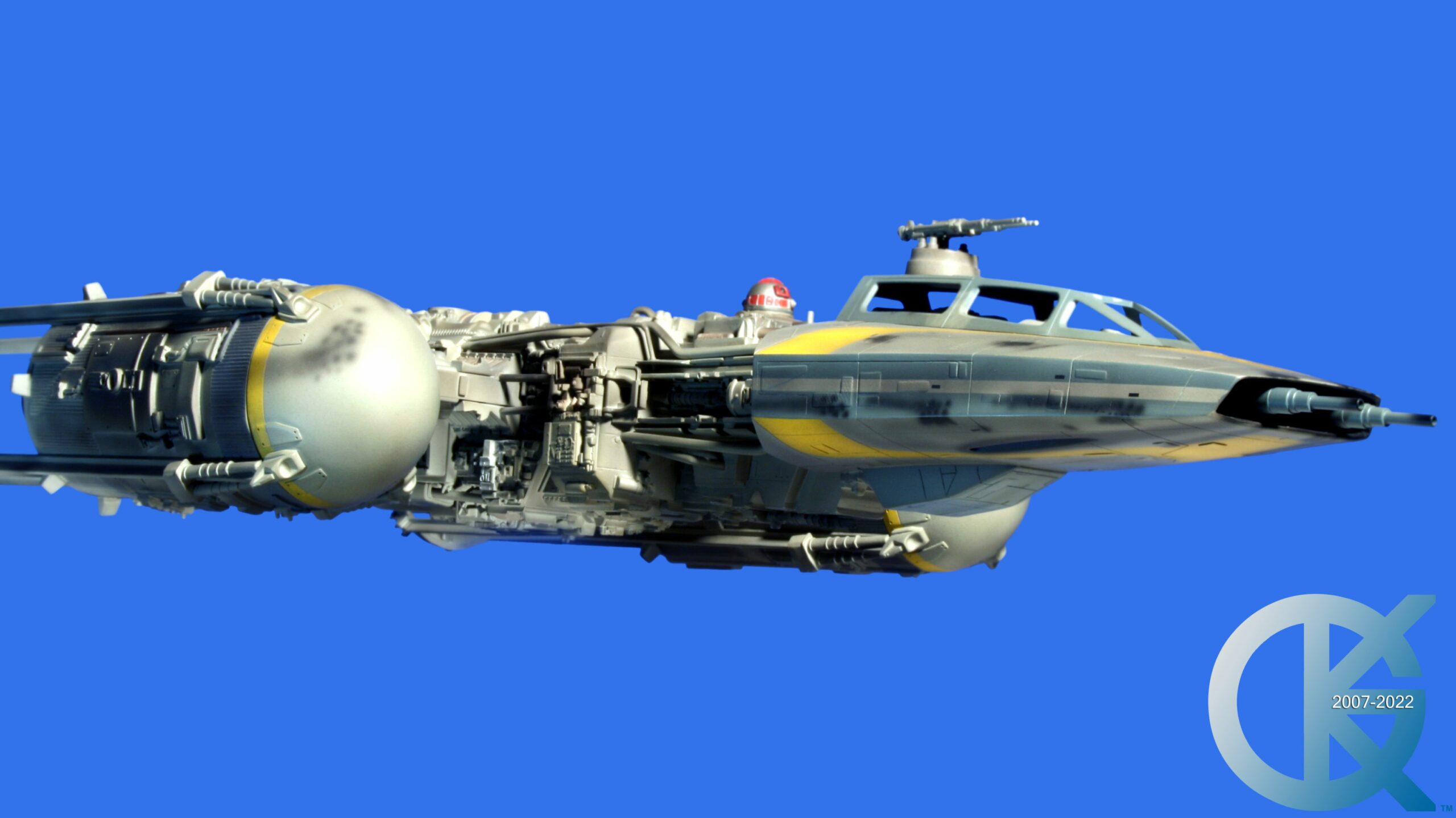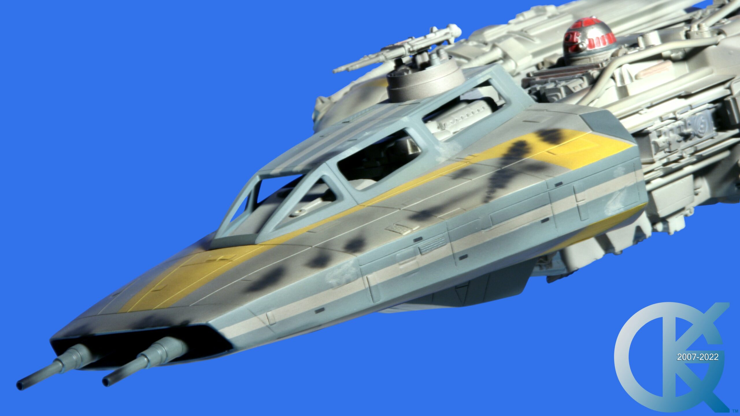 Photos taken back in 2007 of this 2006 released replica (#0014), this was patterned to resemble a few different Y-wings used in the filming of Star Wars – A New Hope. When Master Replicas released their Studio Scale Replica for the public, some of the more well known artists we show here truly made this come to life, making this model even more fantastic. The Blue Screen photos were taken of this model right out of the box (no modifications) by me, Kurt Kuhn, as another lighting test for future shoots. I must apologize for the awful lighting, and I cannot retake photos of this as I no longer own the model. While this model was great for it’s time, and the very first Studio Scale Y-Wing Replica released to the world with license, the quality in the mass produced paint job placed upon it was challenged… as you can see…. and the enclosed cockpit did not come with a Pilot figure. That stated, it was the first, and very welcomed! Finding an original today is fairly rare, as many repainted and modified their replicas they purchased from MR. I pushed this to the front page to show contrast to what is coming. VERY soon the world will see the NEW release from eFX… which will be very detailed, and exact to one specific studio model used.