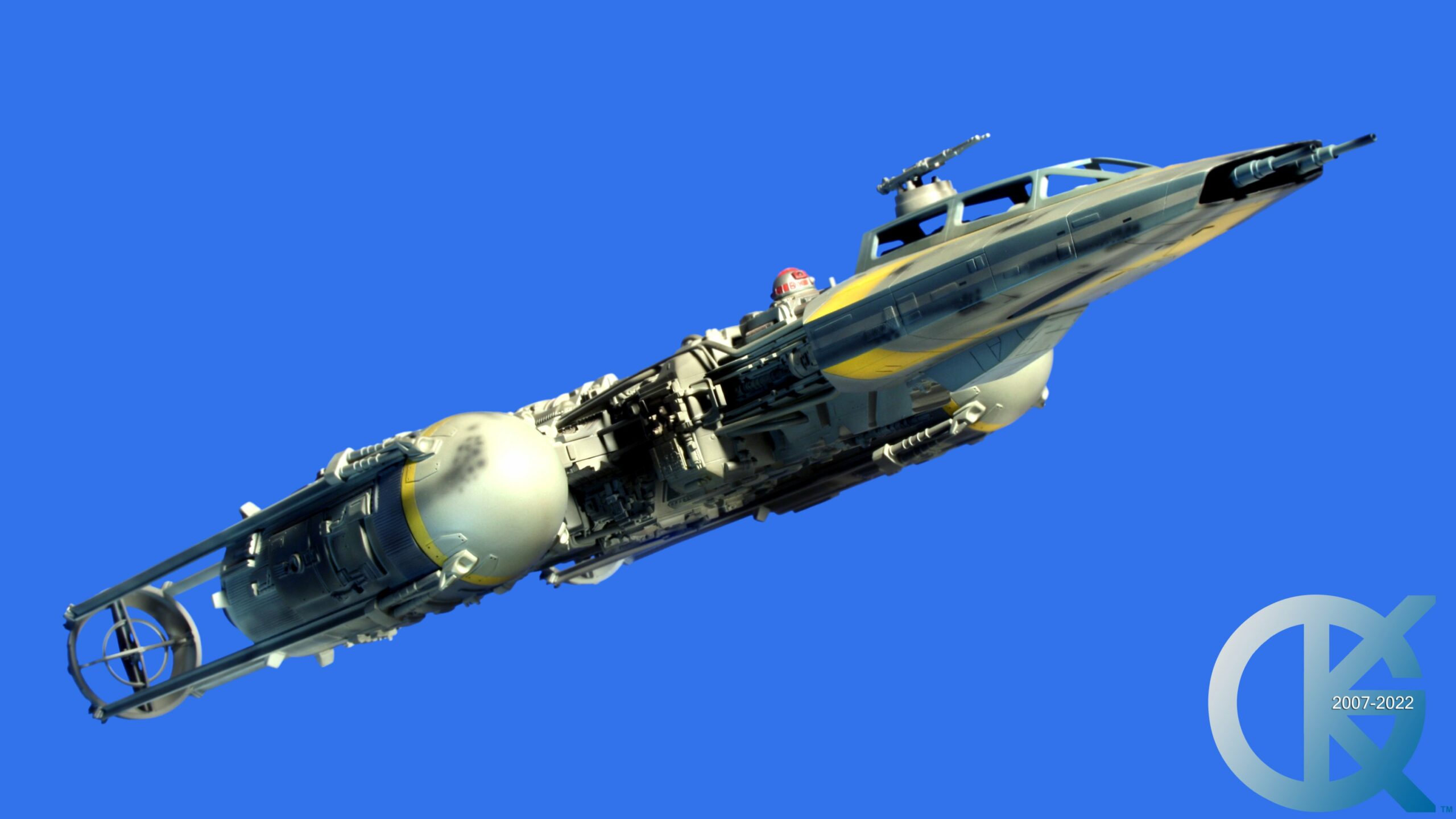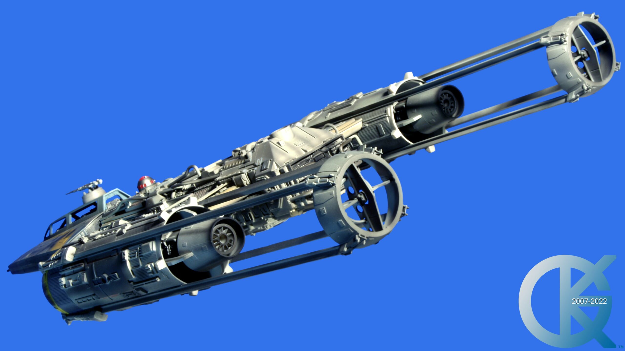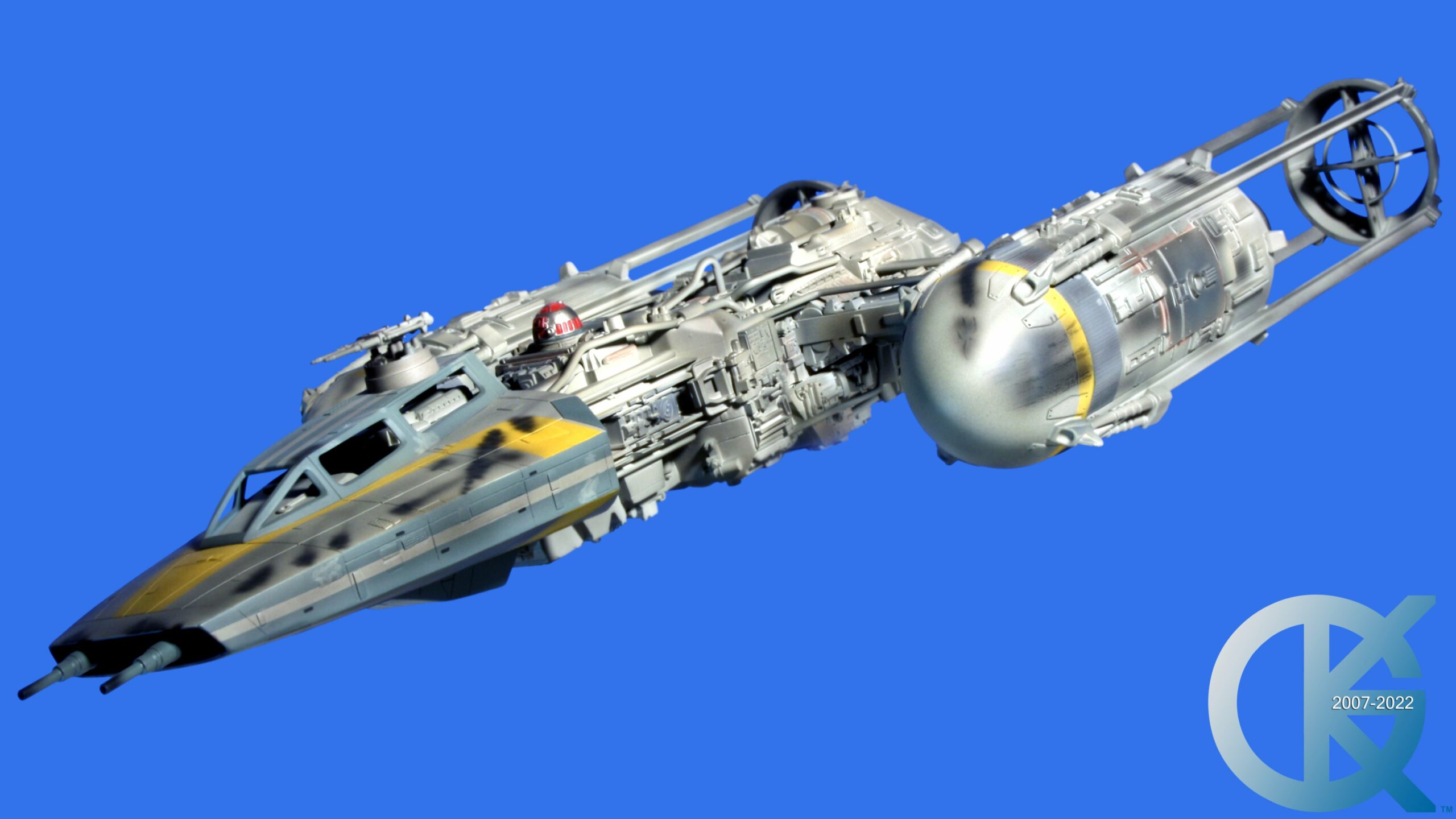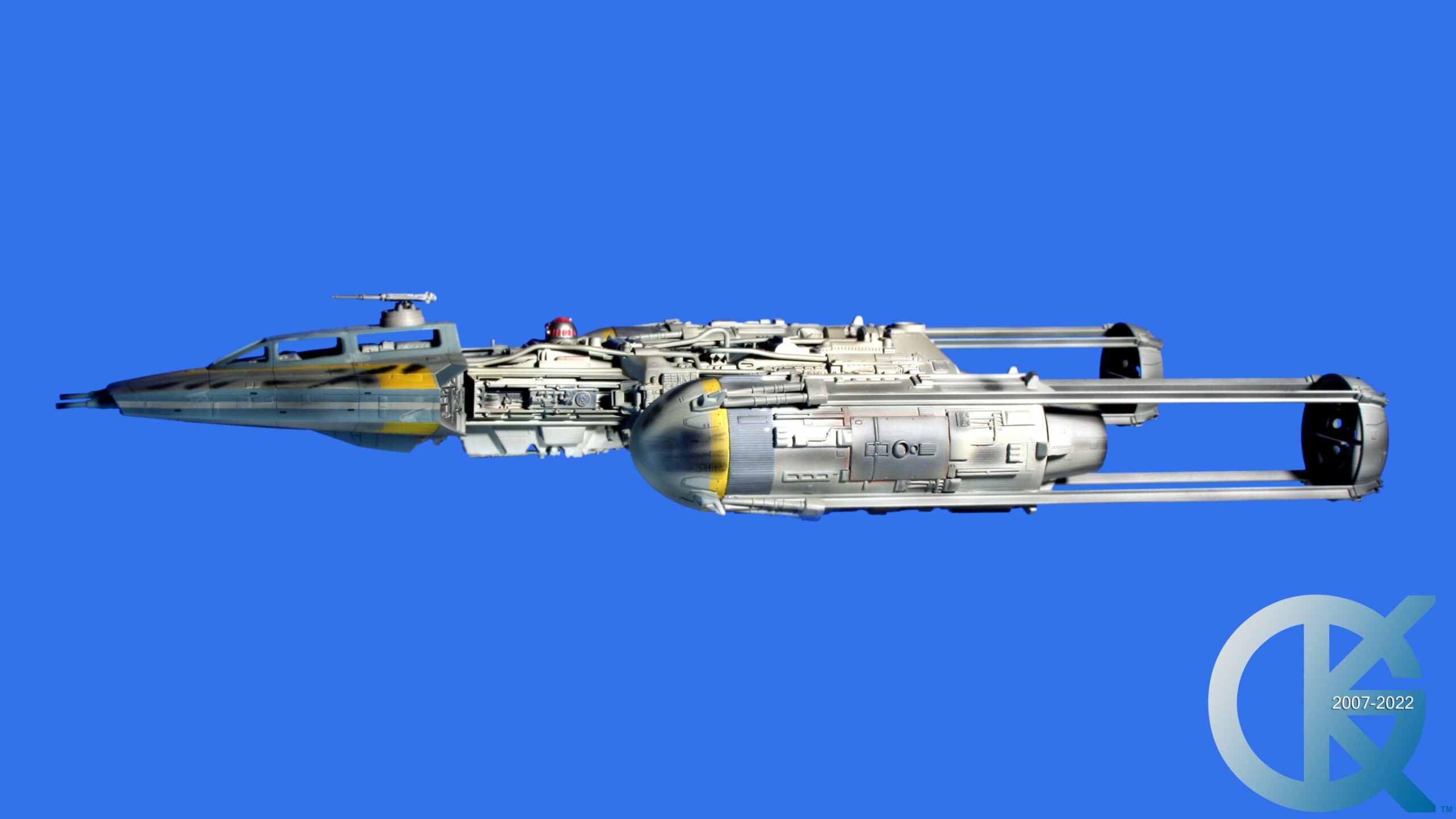 Photos taken back in 2007 of this 2006 released replica (#0014), this was patterned to resemble a few different Y-wings used in the filming of Star Wars – A New Hope. When Master Replicas released their Studio Scale Replica for the public, some of the more well known artists we show here truly made this come to life, making this model even more fantastic. The Blue Screen photos were taken of this model right out of the box (no modifications) by me, Kurt Kuhn, as another lighting test for future shoots. I must apologize for the awful lighting, and I cannot retake photos of this as I no longer own the model. While this model was great for it’s time, and the very first Studio Scale Y-Wing Replica released to the world with license, the quality in the mass produced paint job placed upon it was challenged… as you can see…. and the enclosed cockpit did not come with a Pilot figure. That stated, it was the first, and very welcomed! Finding an original today is fairly rare, as many repainted and modified their replicas they purchased from MR. I pushed this to the front page to show contrast to what is coming. VERY soon the world will see the NEW release from eFX… which will be very detailed, and exact to one specific studio model used.