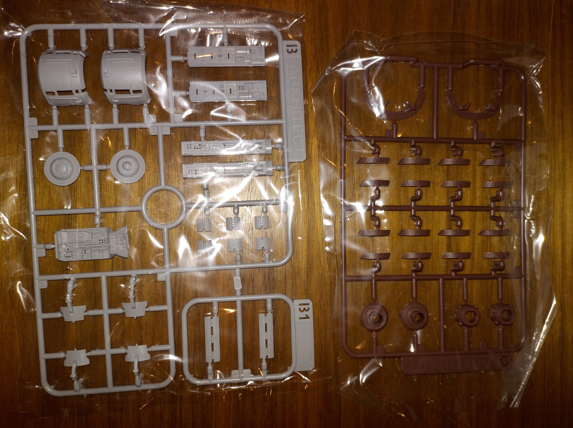 The plastic parts are injection moulded and are produced in different colours including one sprue of clear parts to take advantage of the lighting kit supplied.