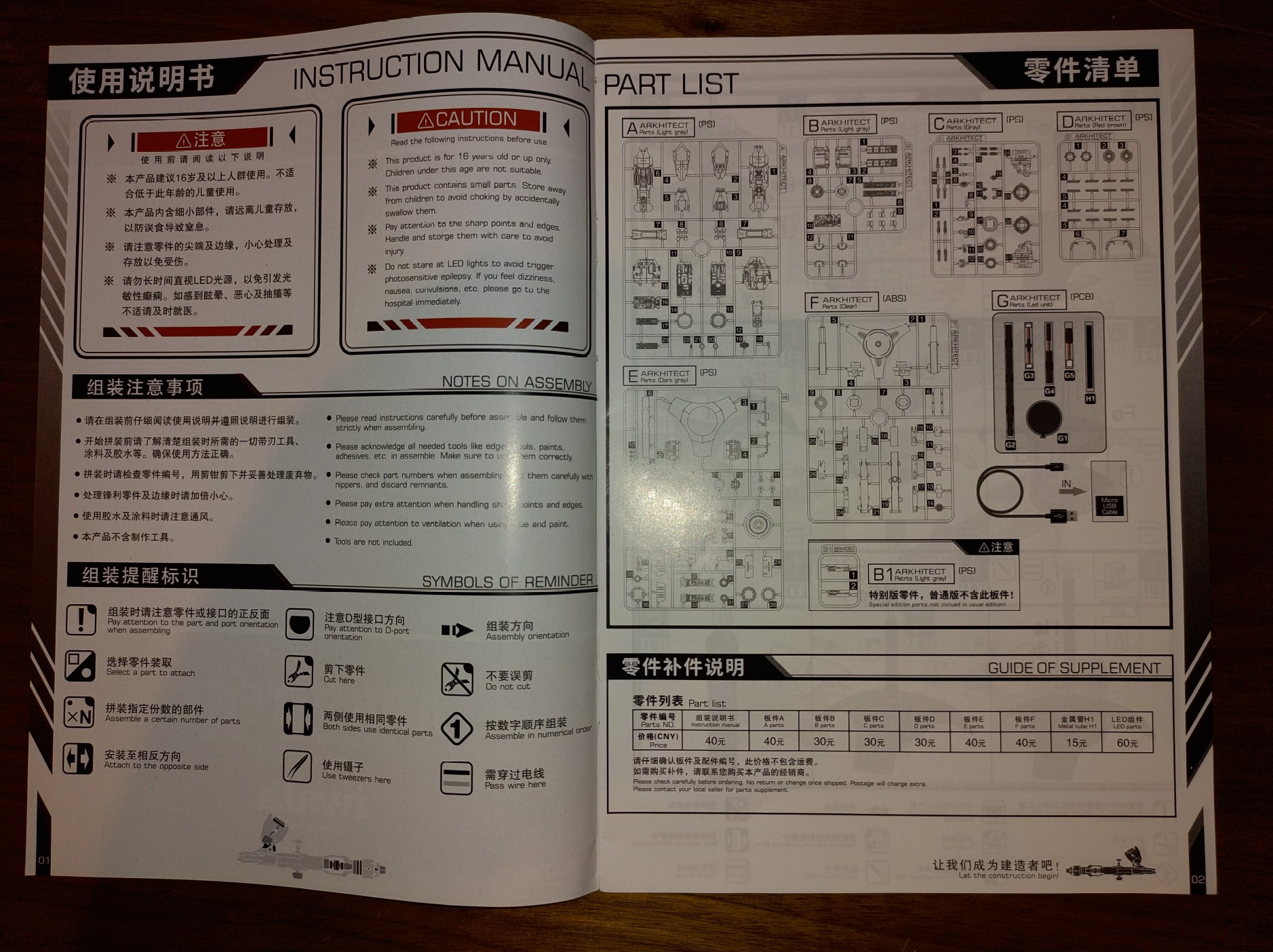 Inside the box I was greeted with sprues of plastic parts, a dedicated lighting kit (including USB power cable) and a set of instructions.