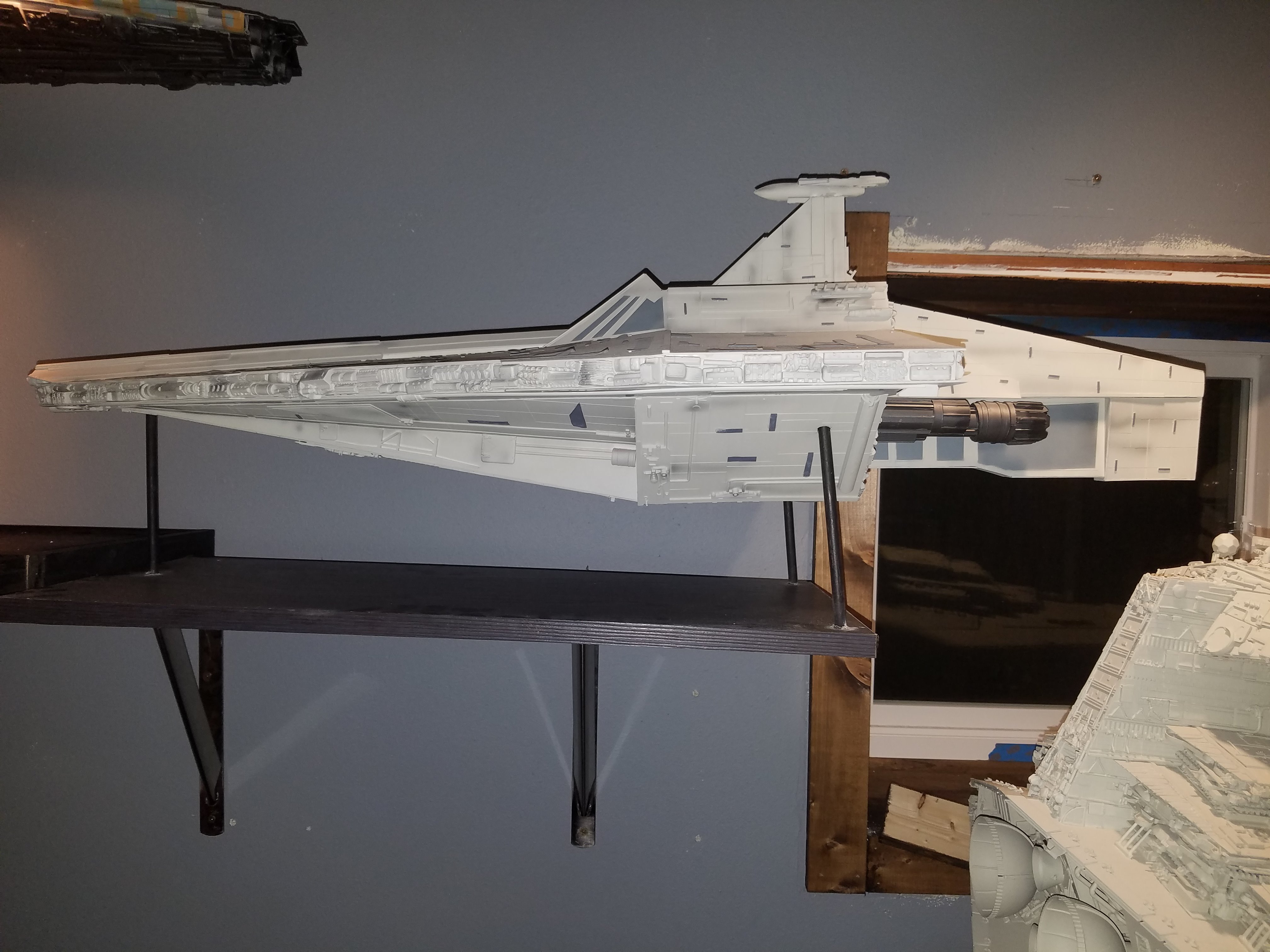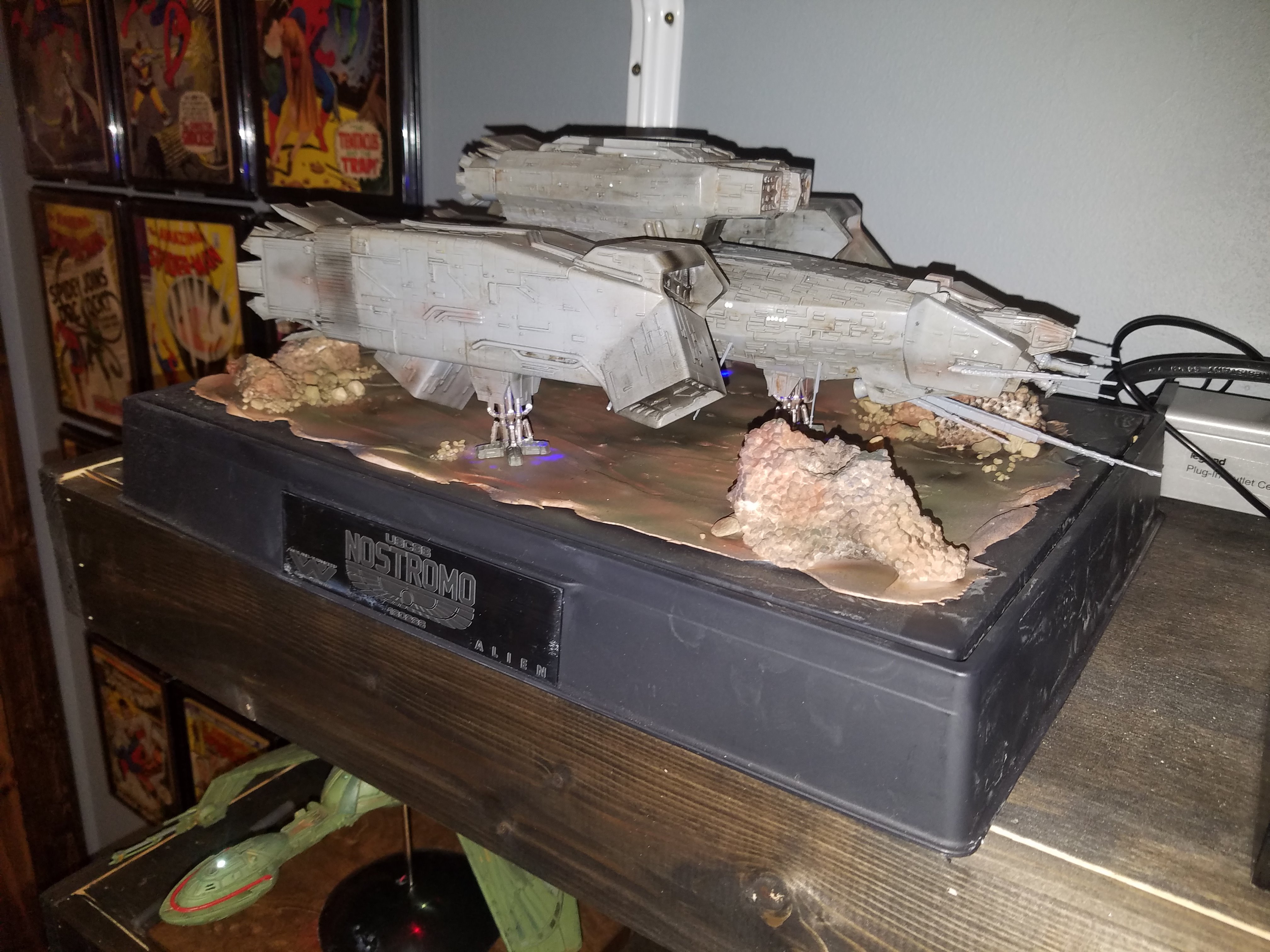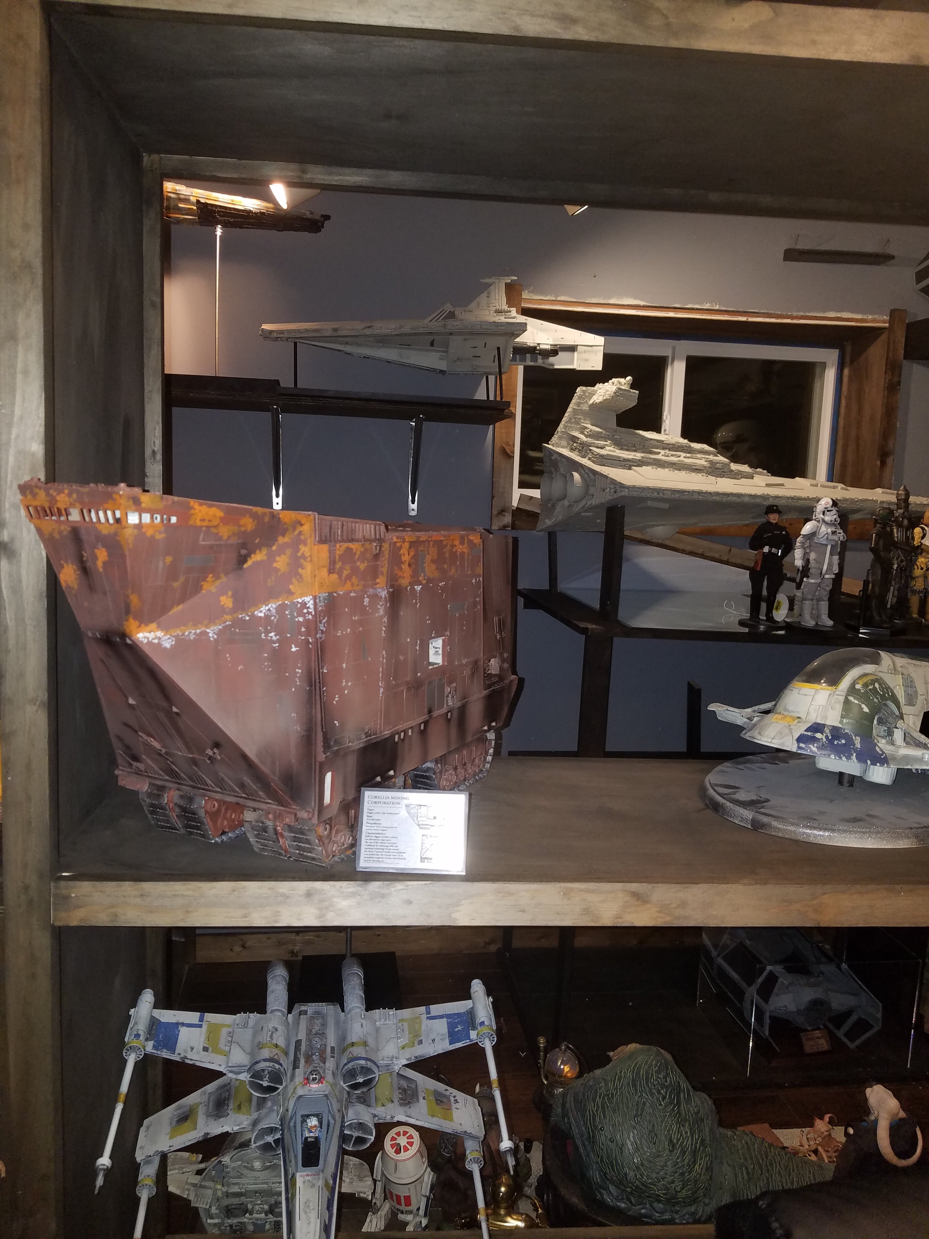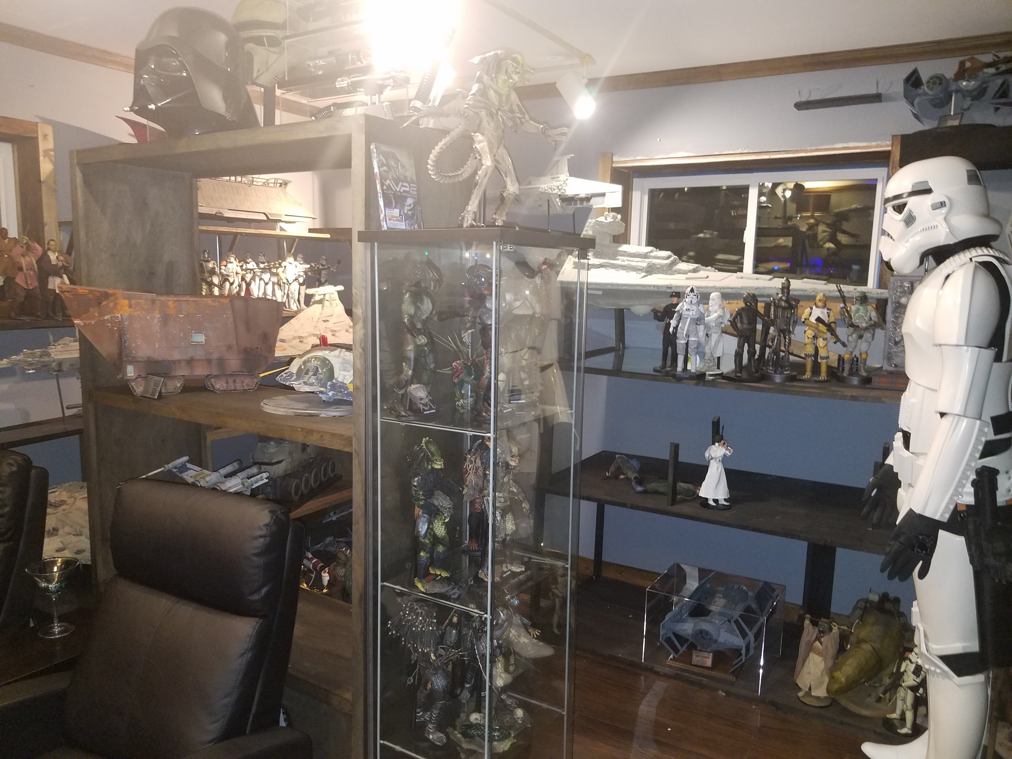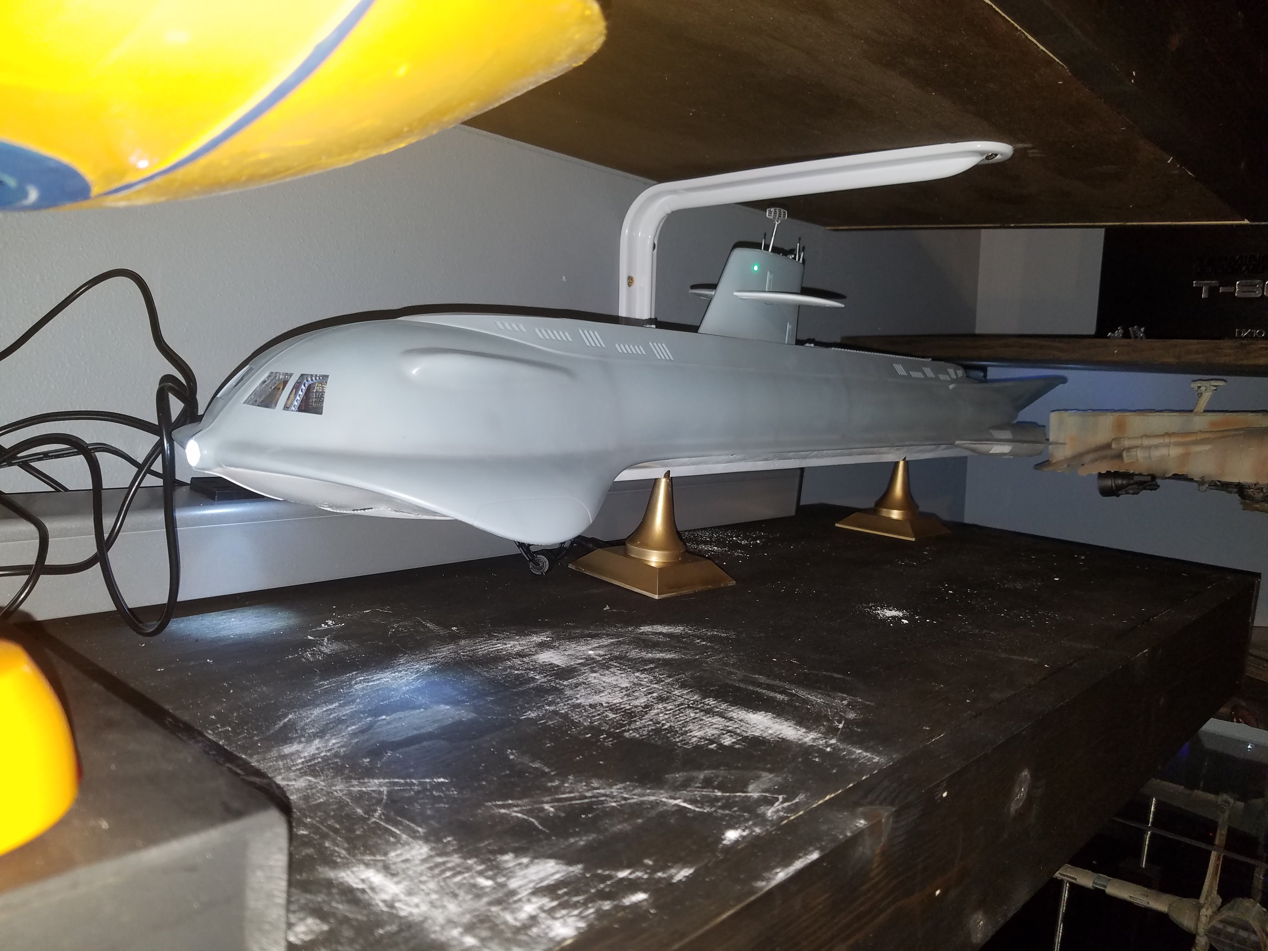 I have been a long time viewer of Modeler Magic and thought I would submit some of the things that I have created over my modeling career. Here is a general look at my current collection. Most of the larger ships are all built from scratch. The lit builds are from kits, and I have a lot of Hasbro toy mods in there as well. Also, I have a few Randy Cooper models and other garage kits. I wanted to scratch build pieces that are unique and not found in many other collections.