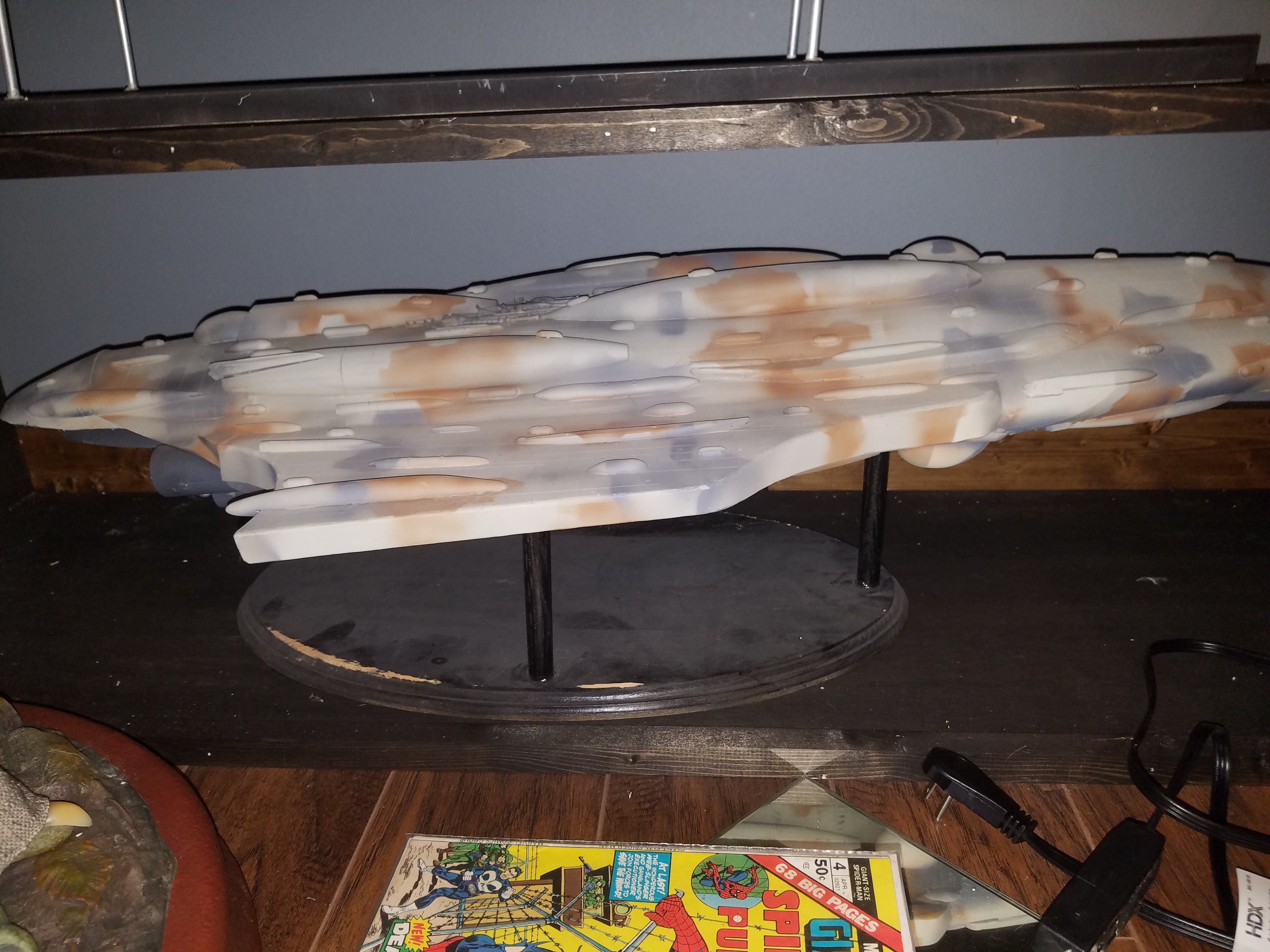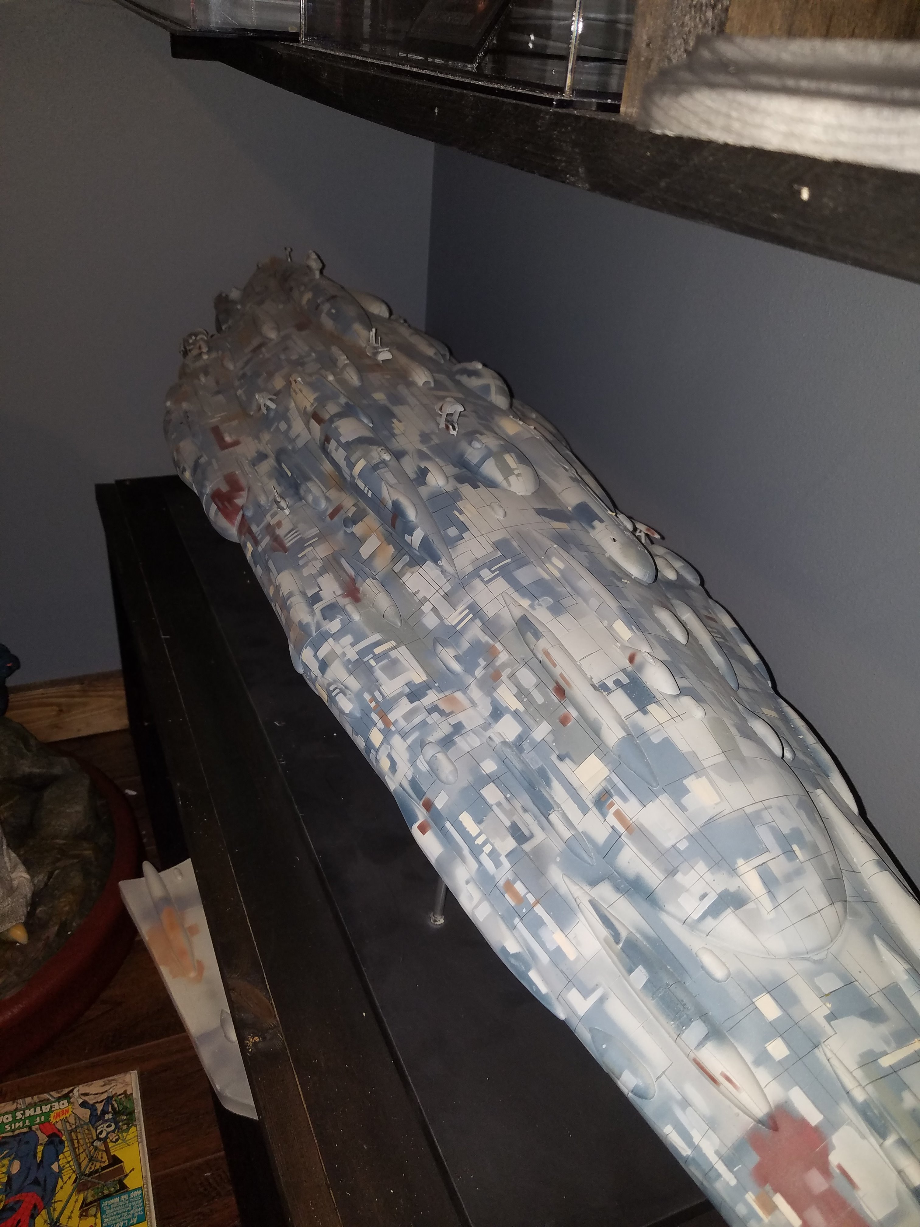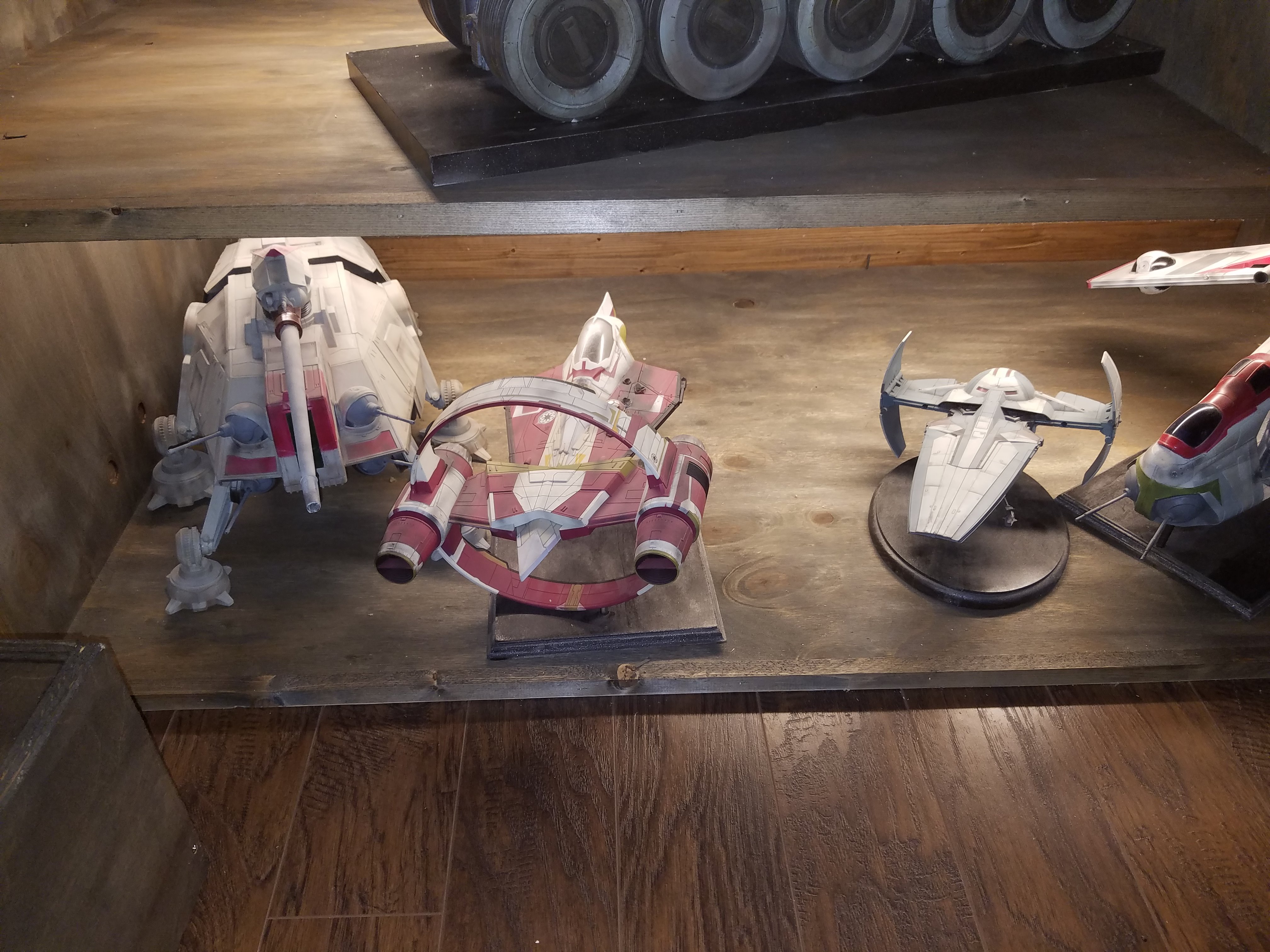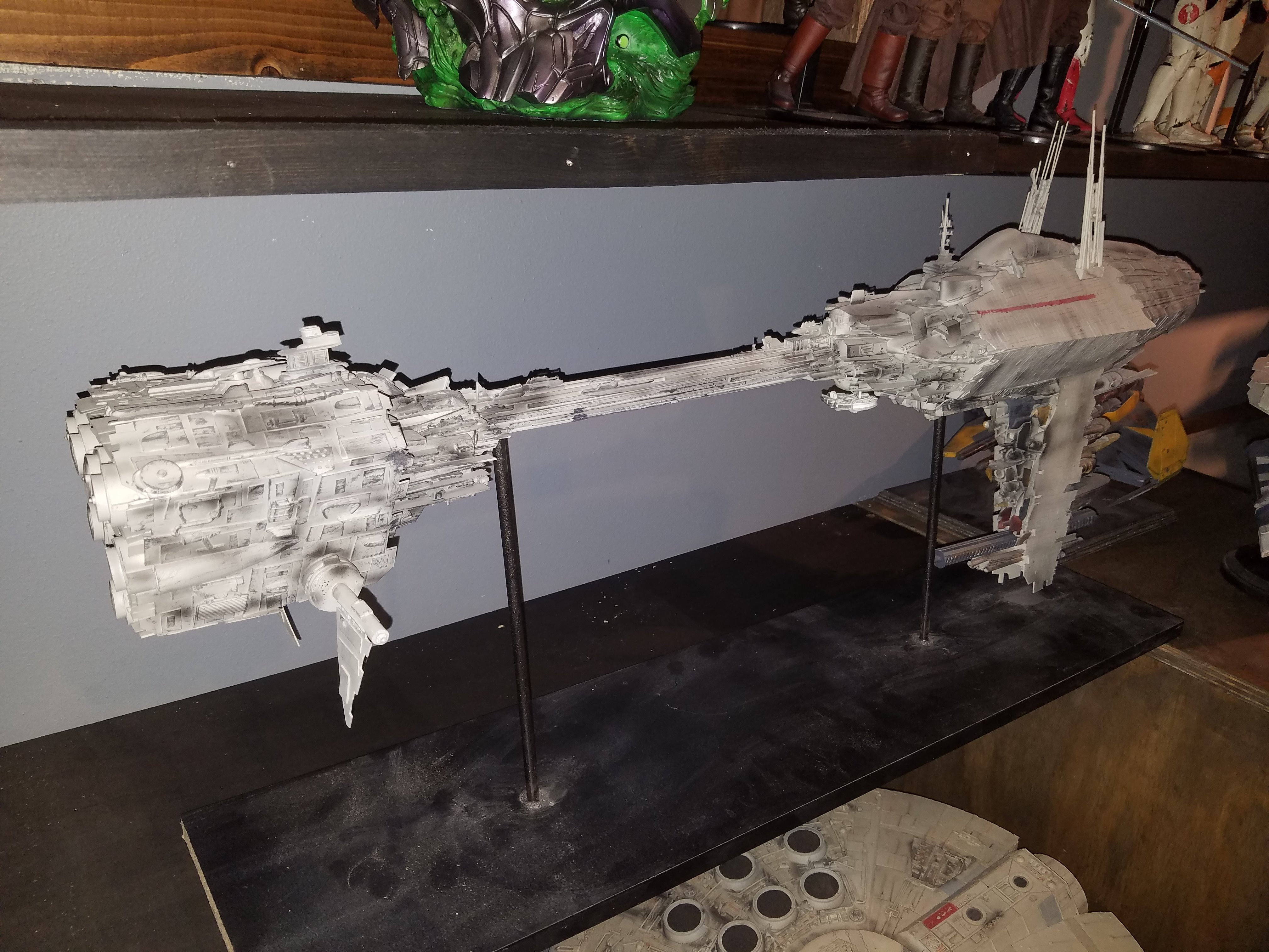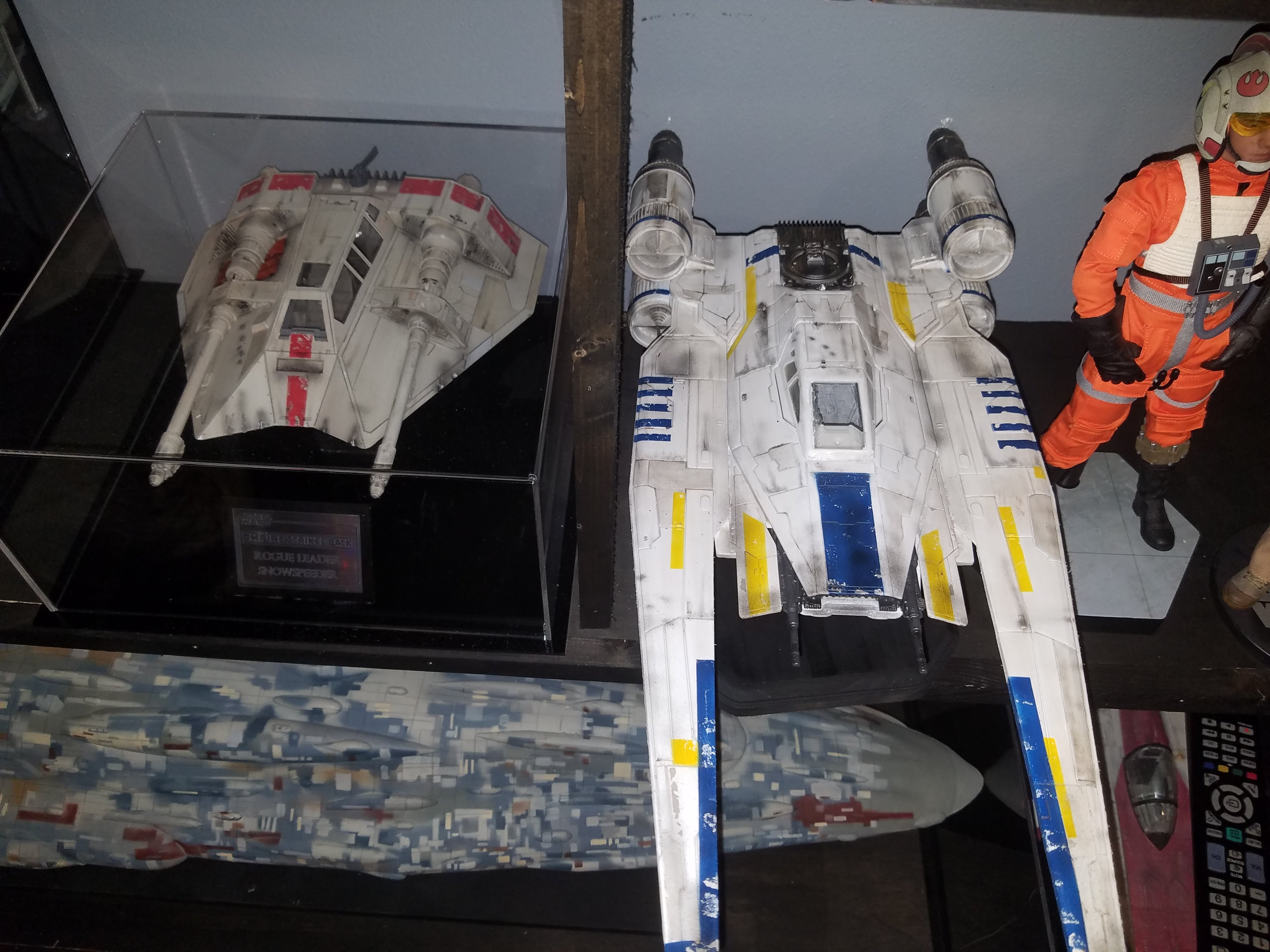 I have been a long time viewer of Modeler Magic and thought I would submit some of the things that I have created over my modeling career. Here is a general look at my current collection. Most of the larger ships are all built from scratch. The lit builds are from kits, and I have a lot of Hasbro toy mods in there as well. Also, I have a few Randy Cooper models and other garage kits. I wanted to scratch build pieces that are unique and not found in many other collections.