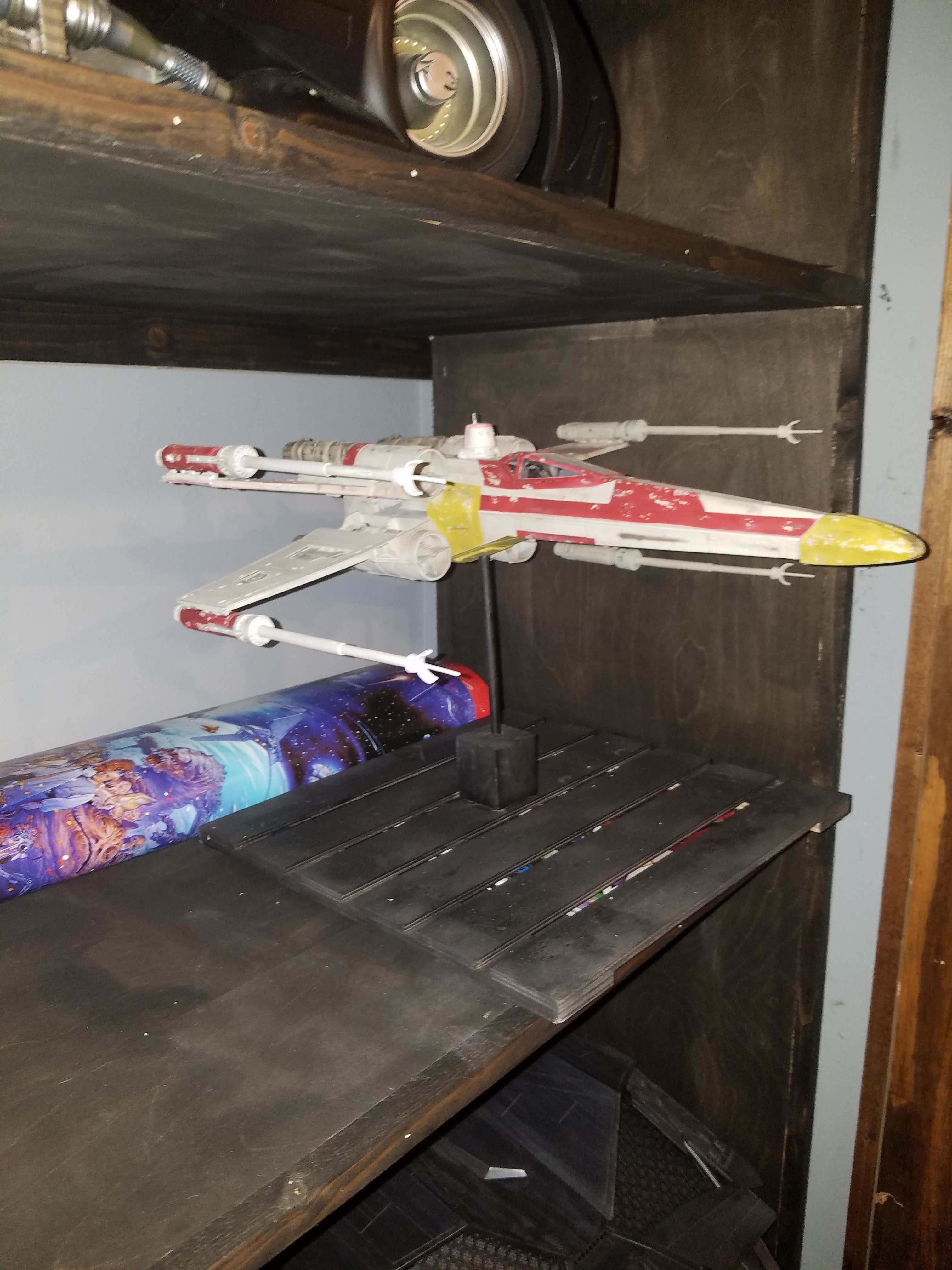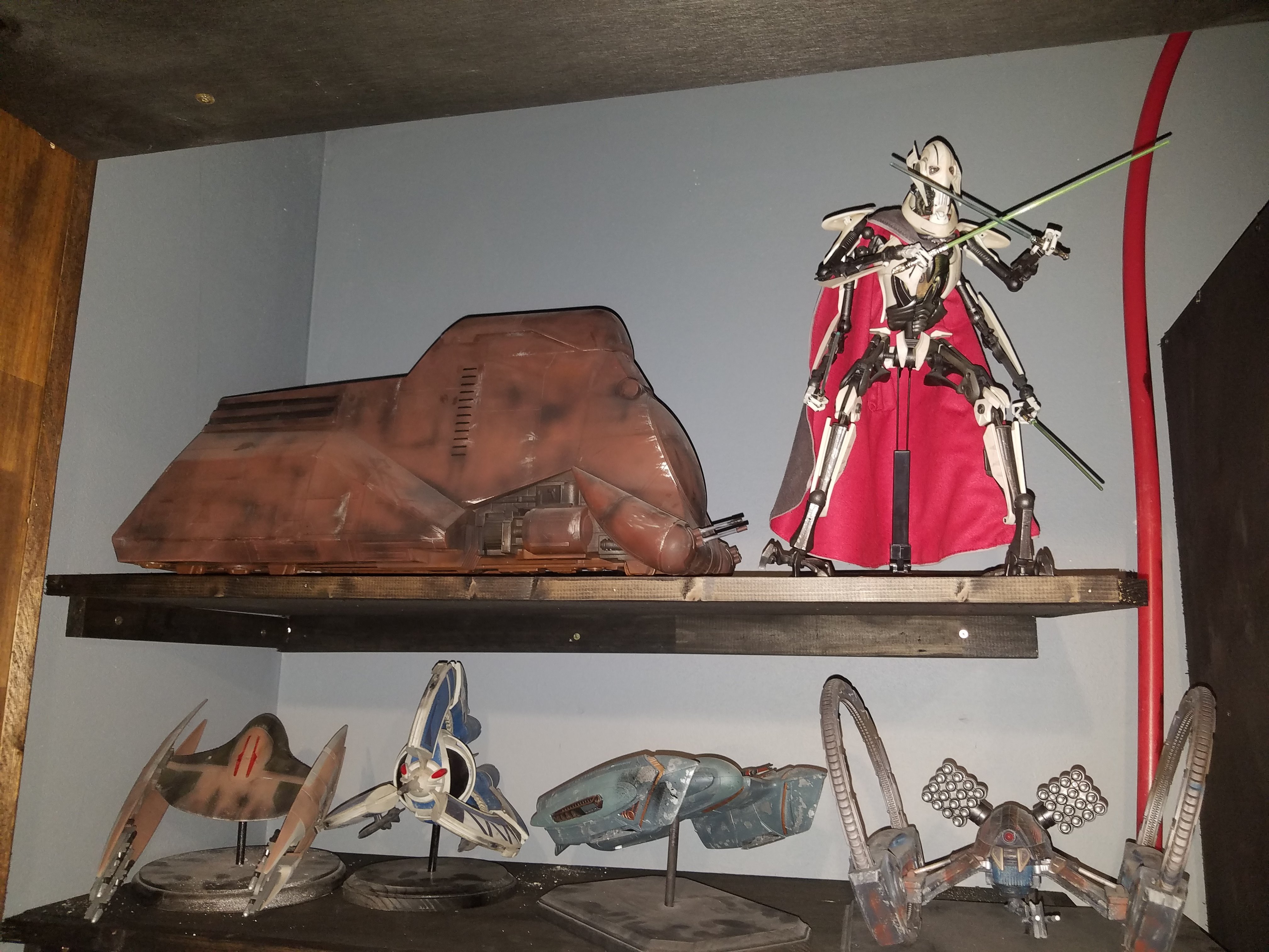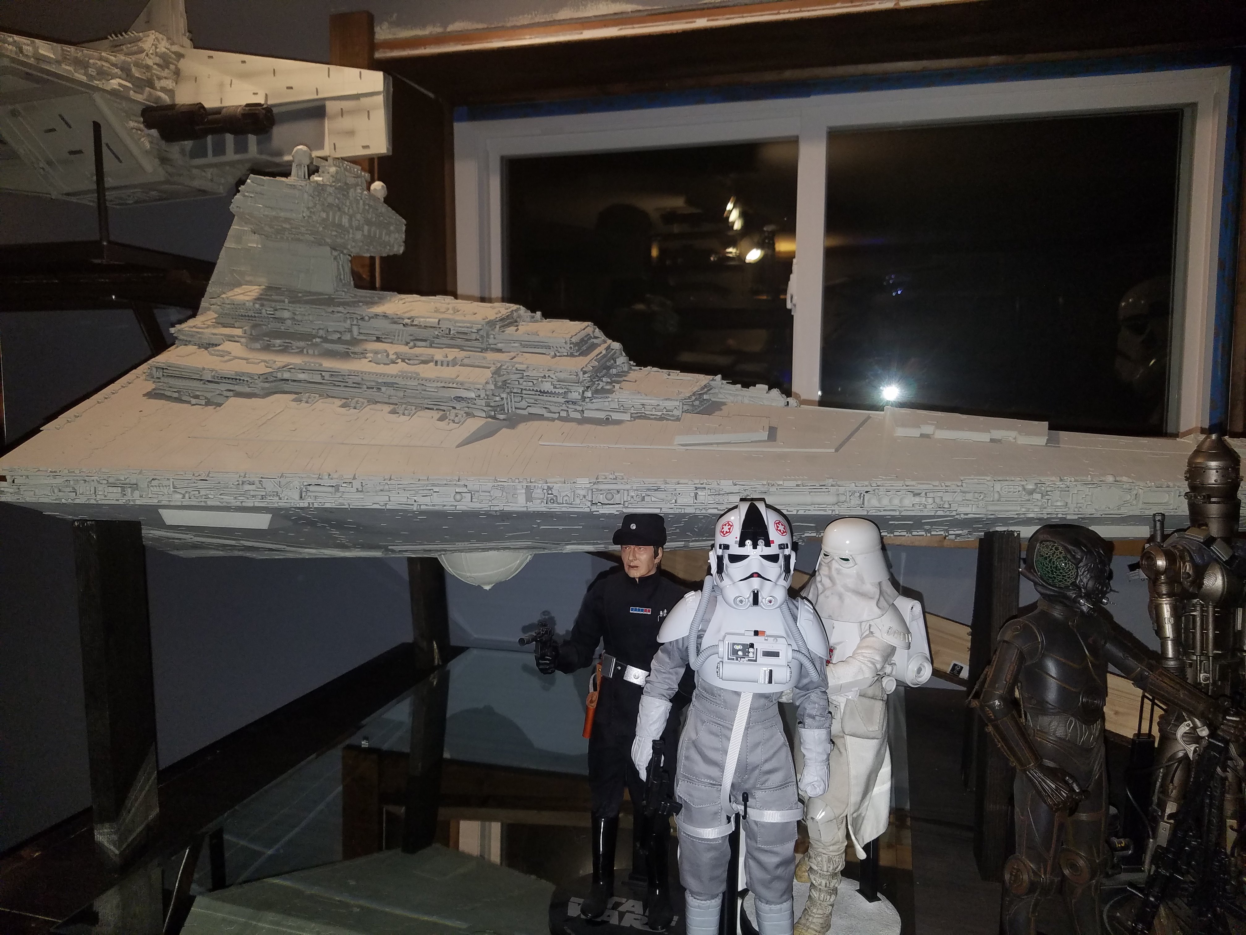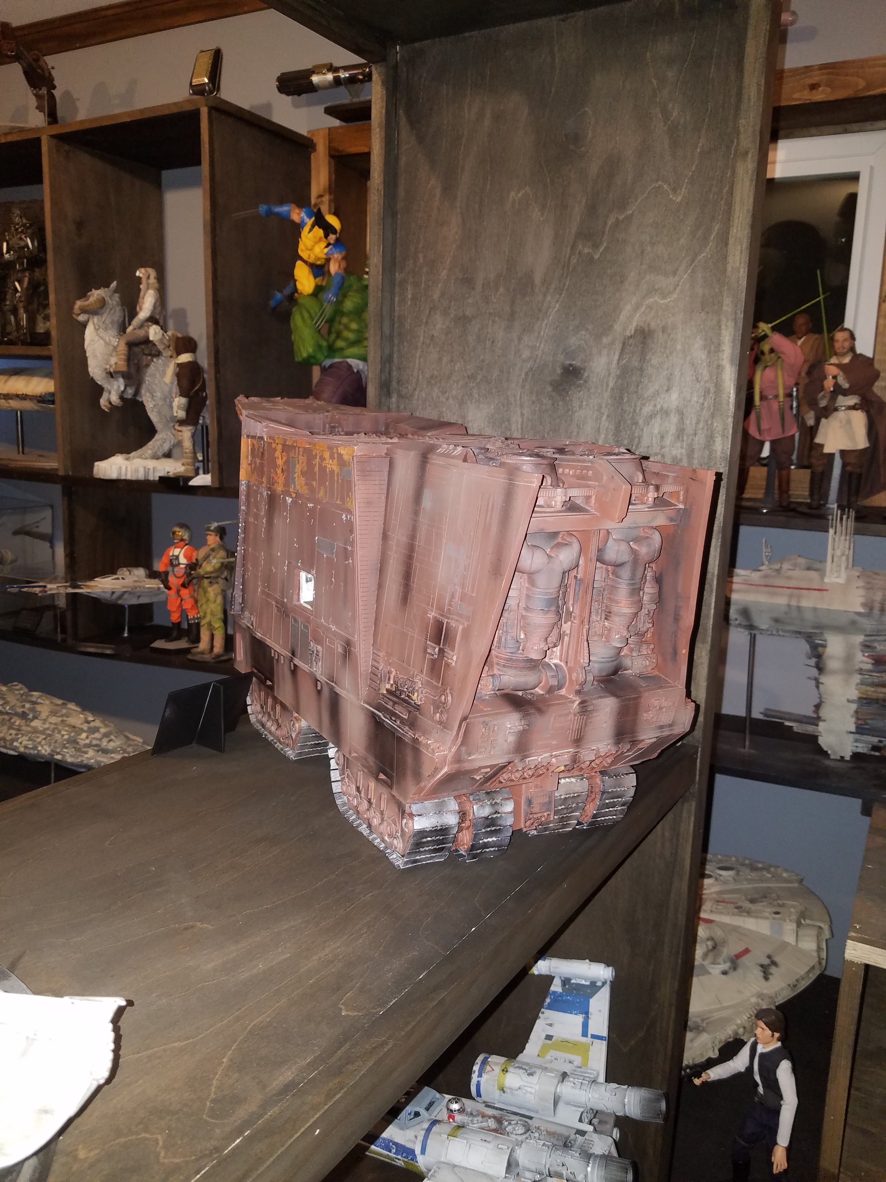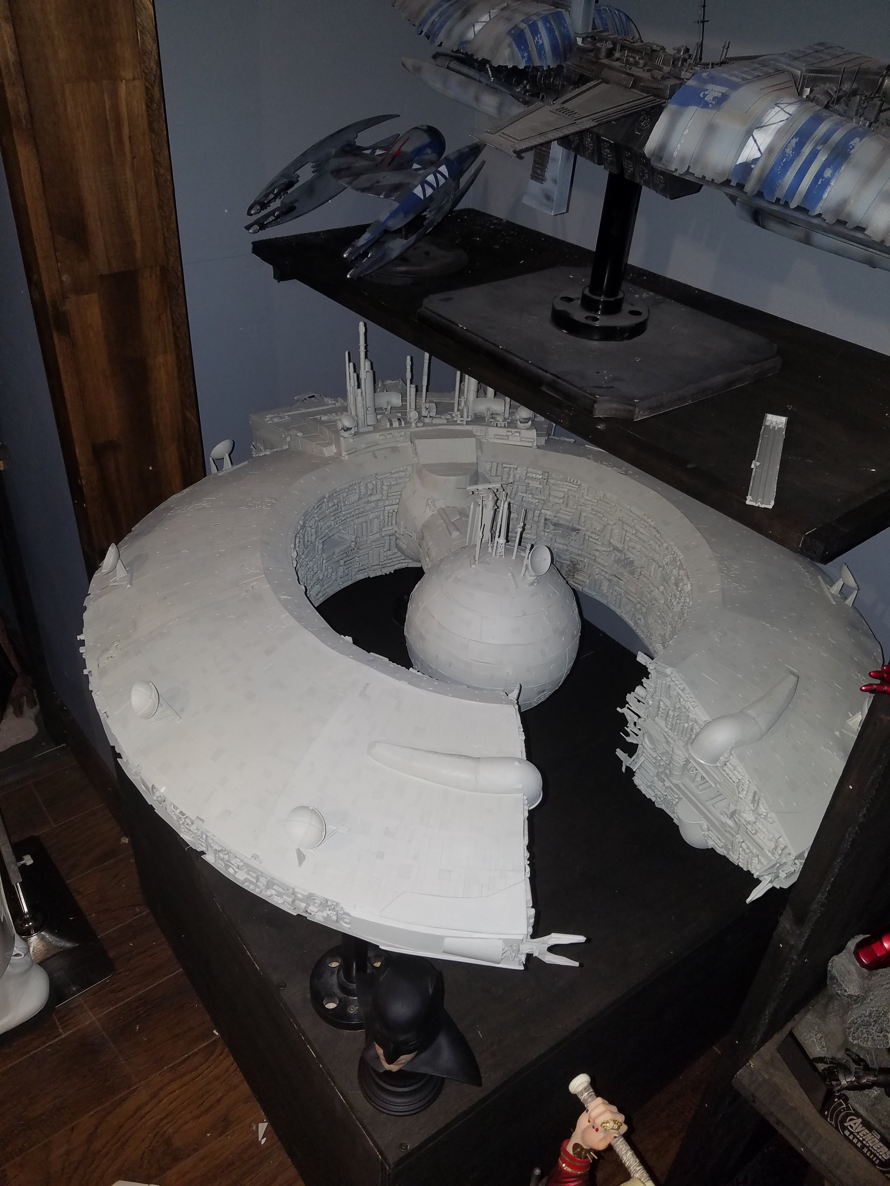 I have been a long time viewer of Modeler Magic and thought I would submit some of the things that I have created over my modeling career. Here is a general look at my current collection. Most of the larger ships are all built from scratch. The lit builds are from kits, and I have a lot of Hasbro toy mods in there as well. Also, I have a few Randy Cooper models and other garage kits. I wanted to scratch build pieces that are unique and not found in many other collections.