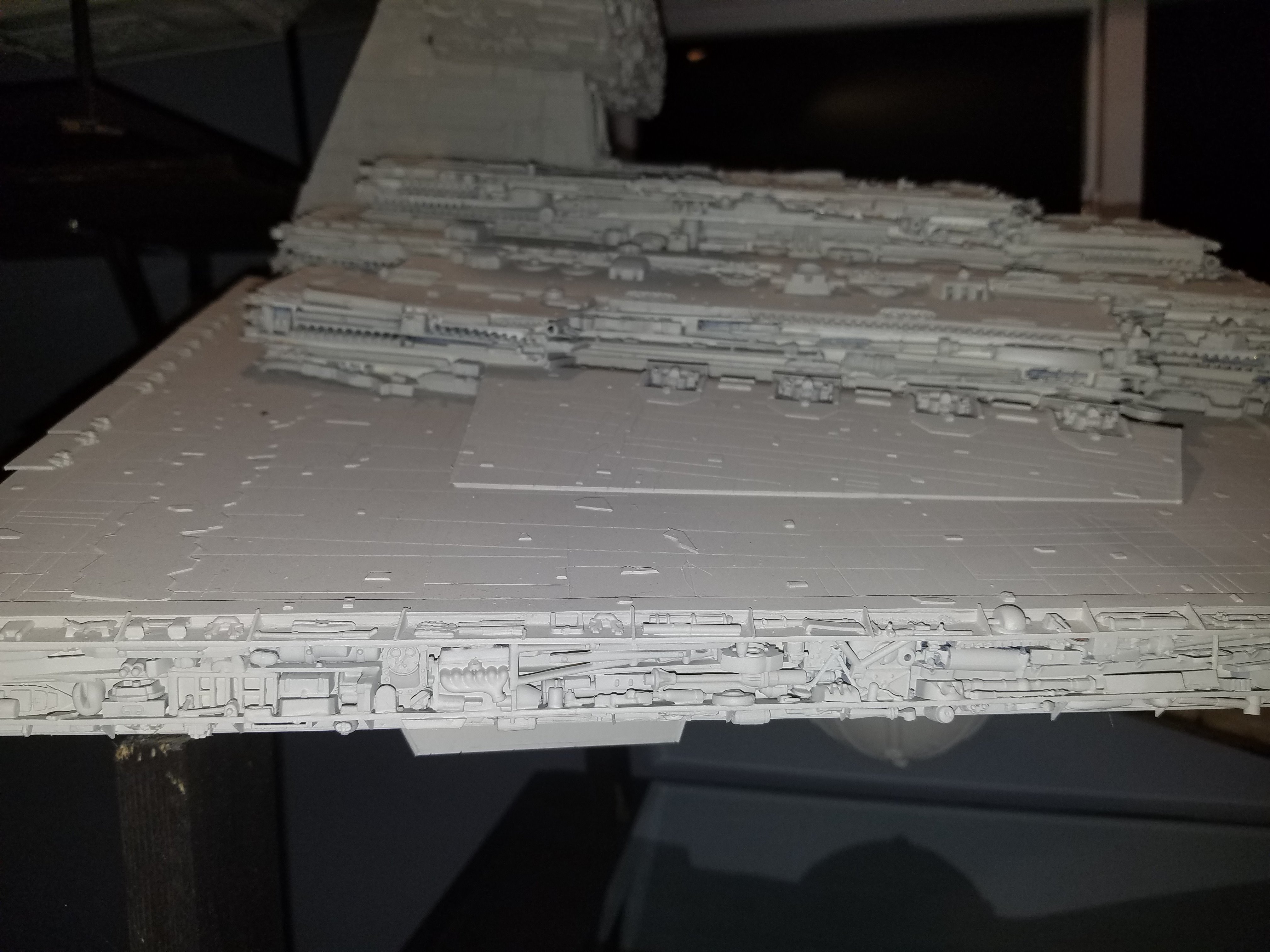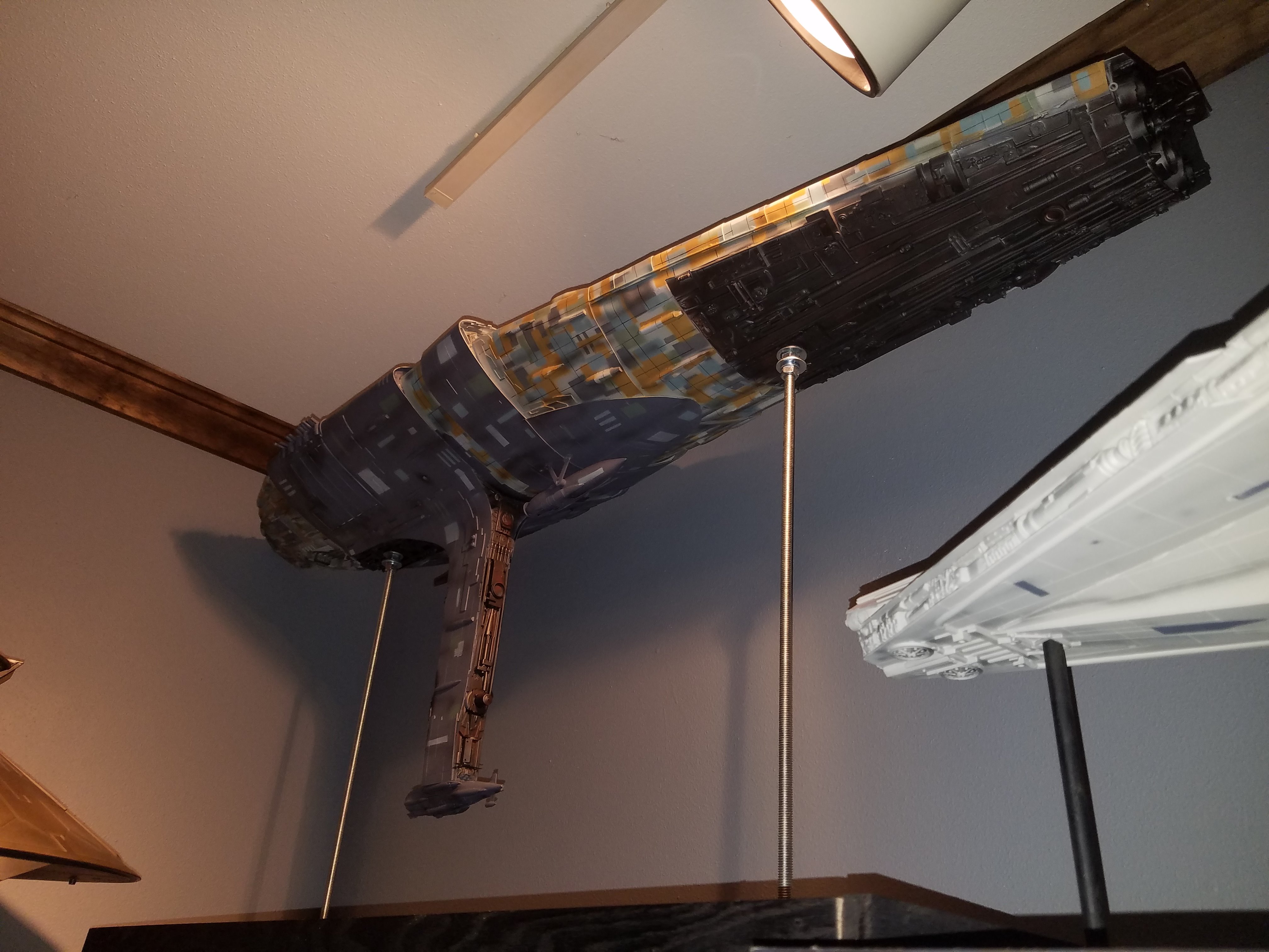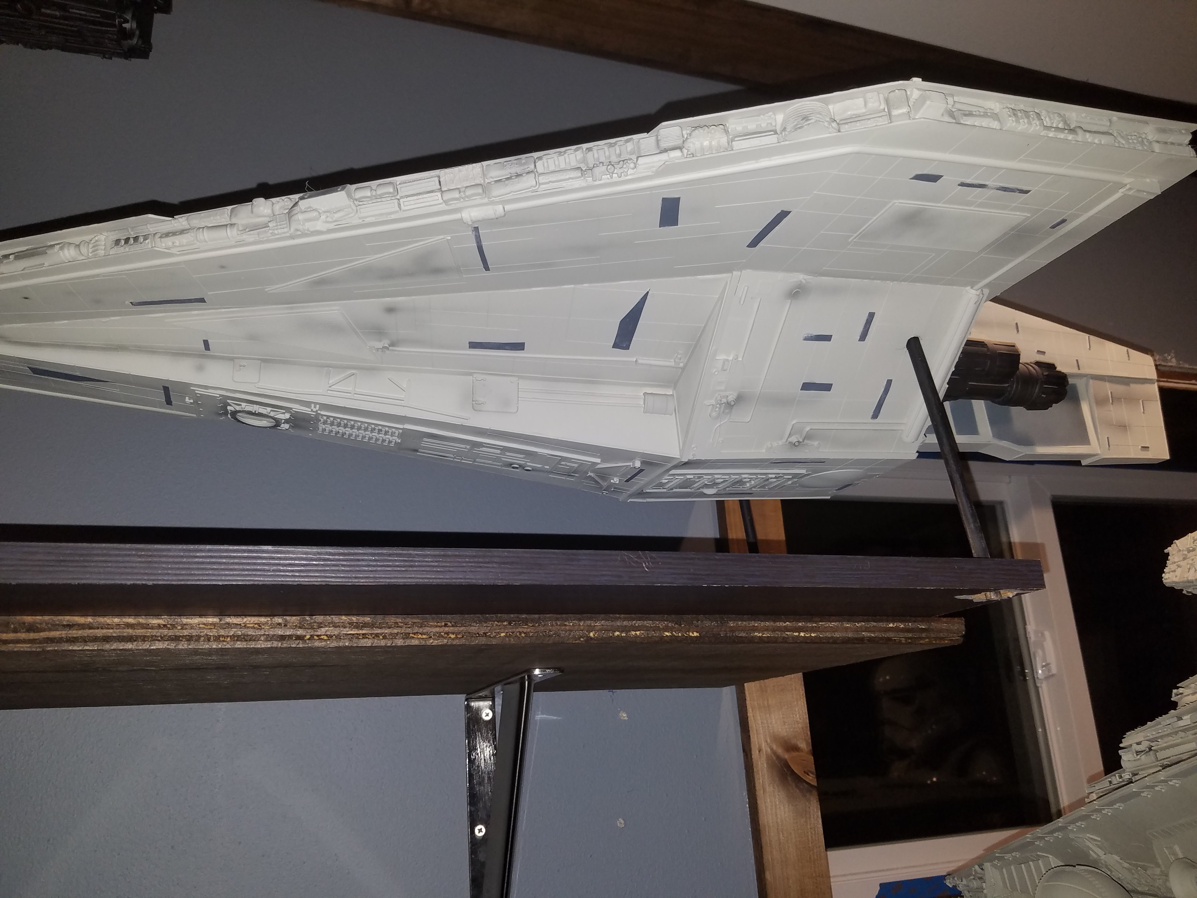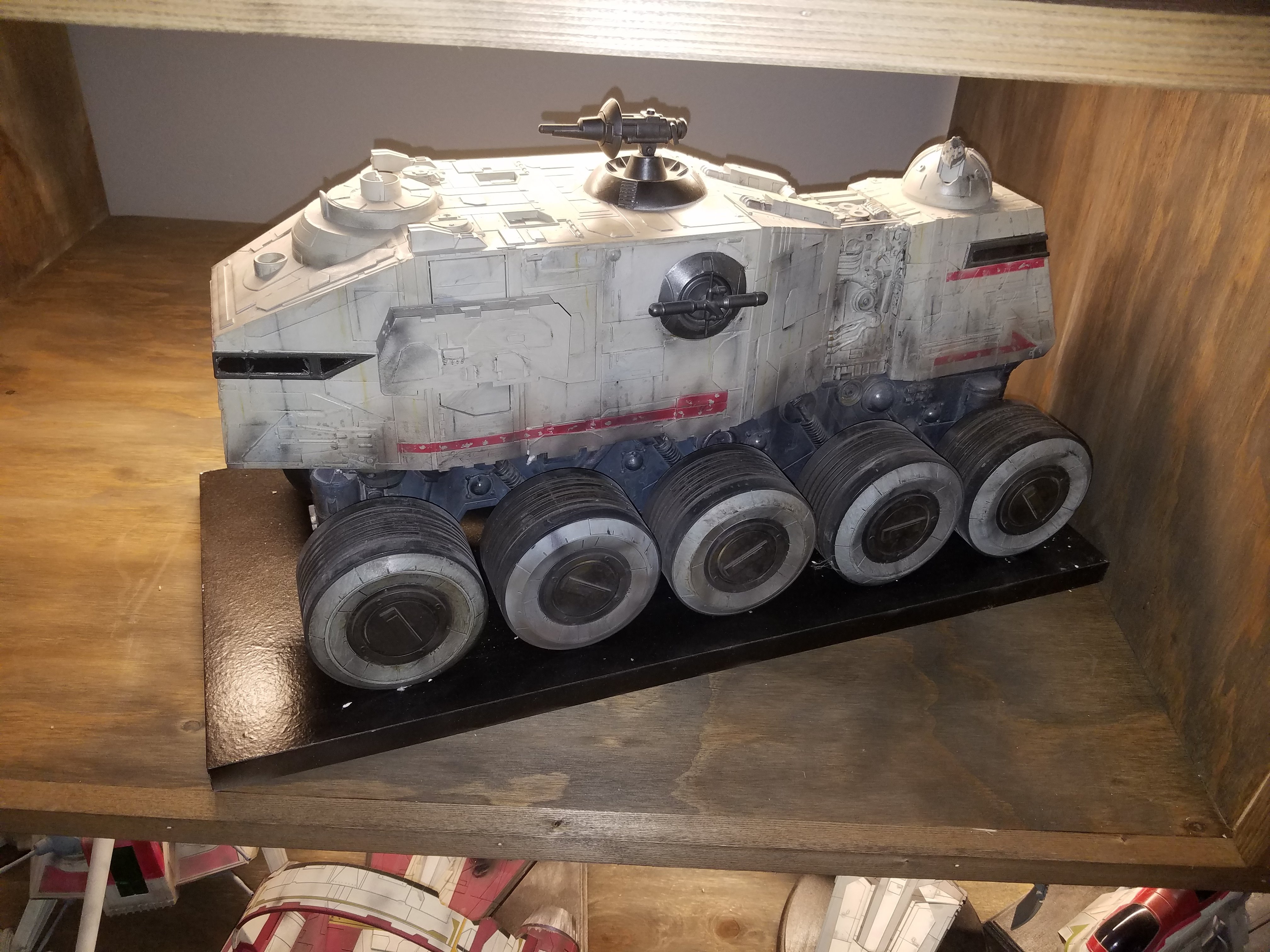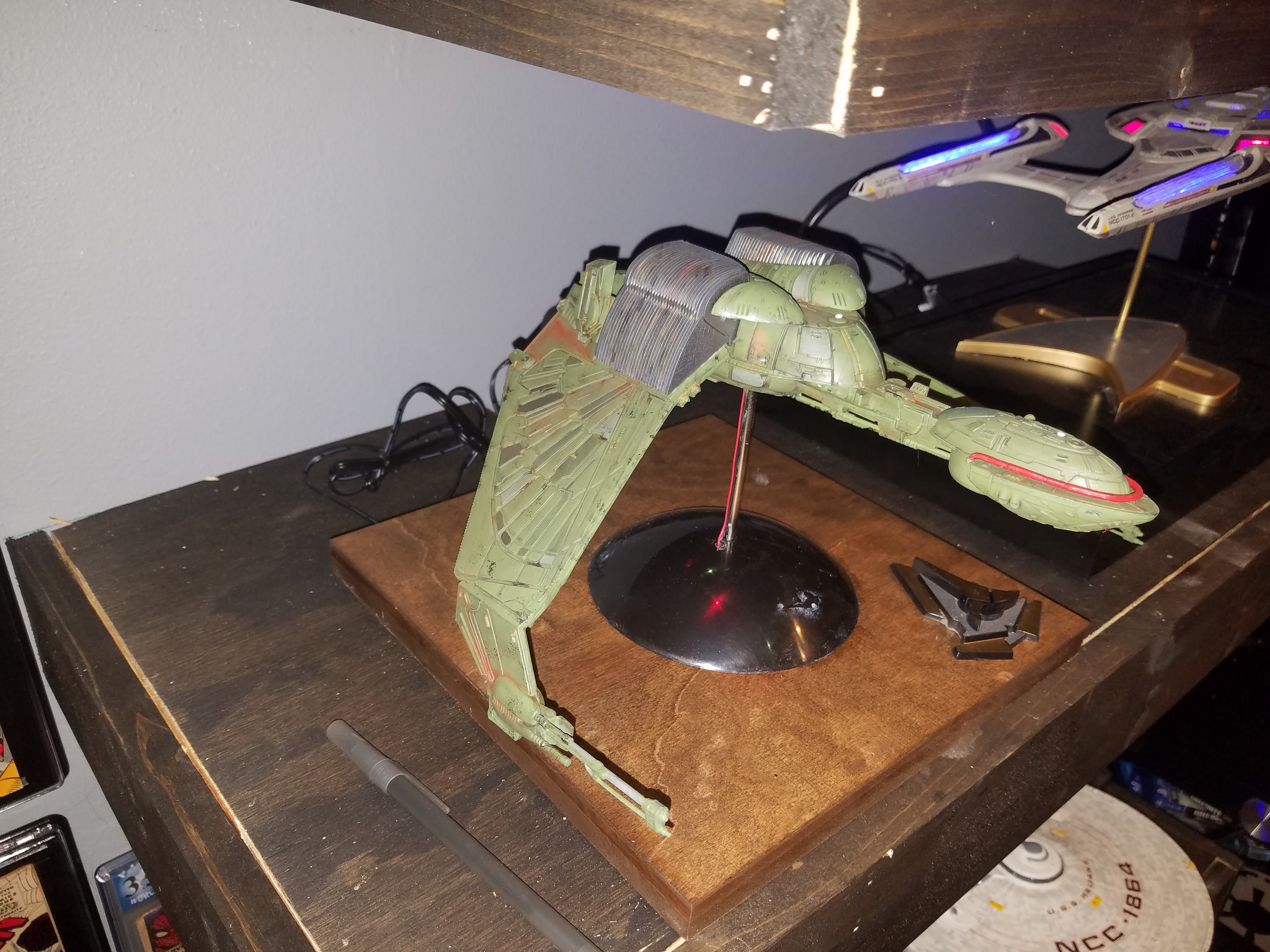 I have been a long time viewer of Modeler Magic and thought I would submit some of the things that I have created over my modeling career. Here is a general look at my current collection. Most of the larger ships are all built from scratch. The lit builds are from kits, and I have a lot of Hasbro toy mods in there as well. Also, I have a few Randy Cooper models and other garage kits. I wanted to scratch build pieces that are unique and not found in many other collections.