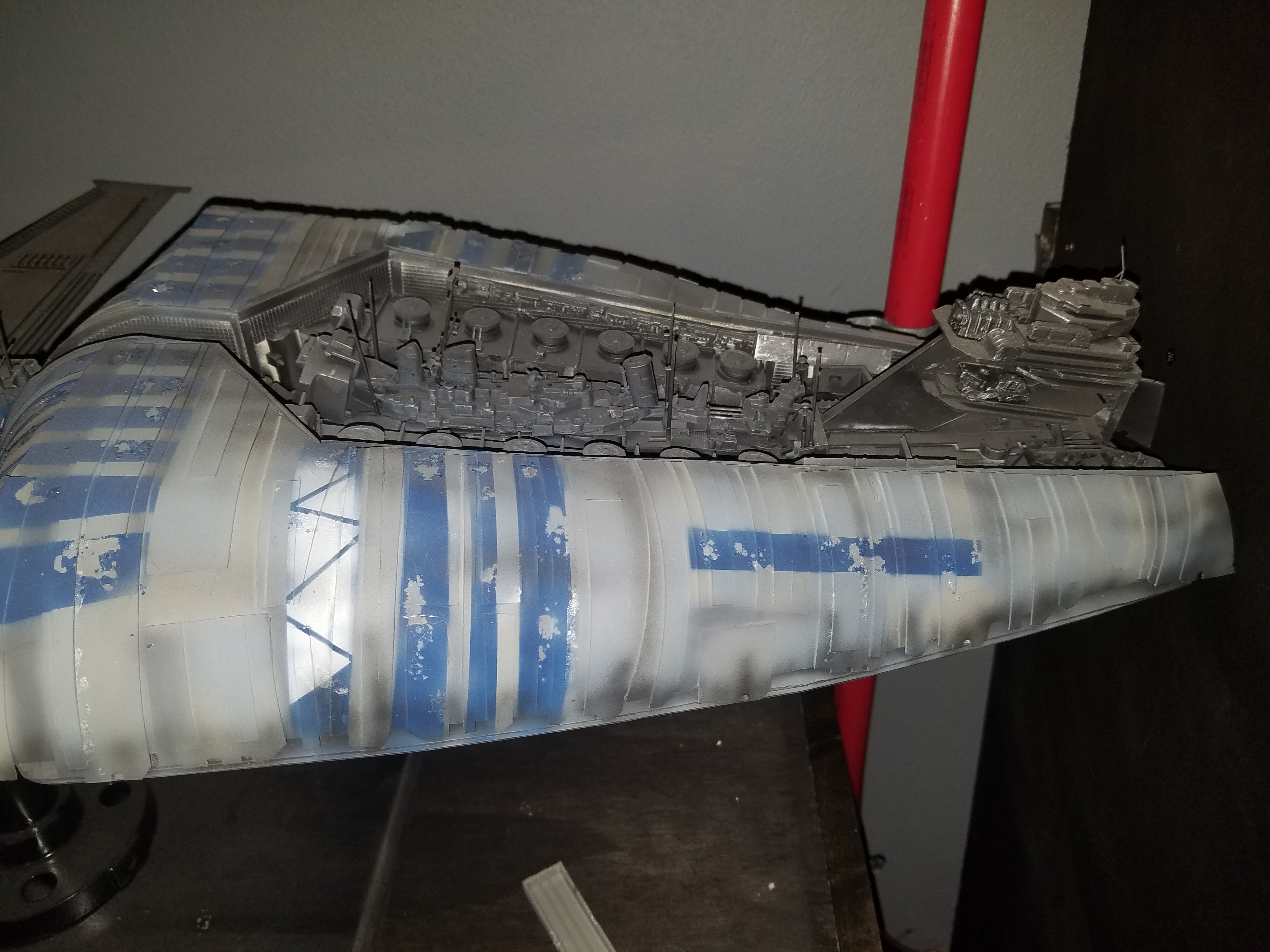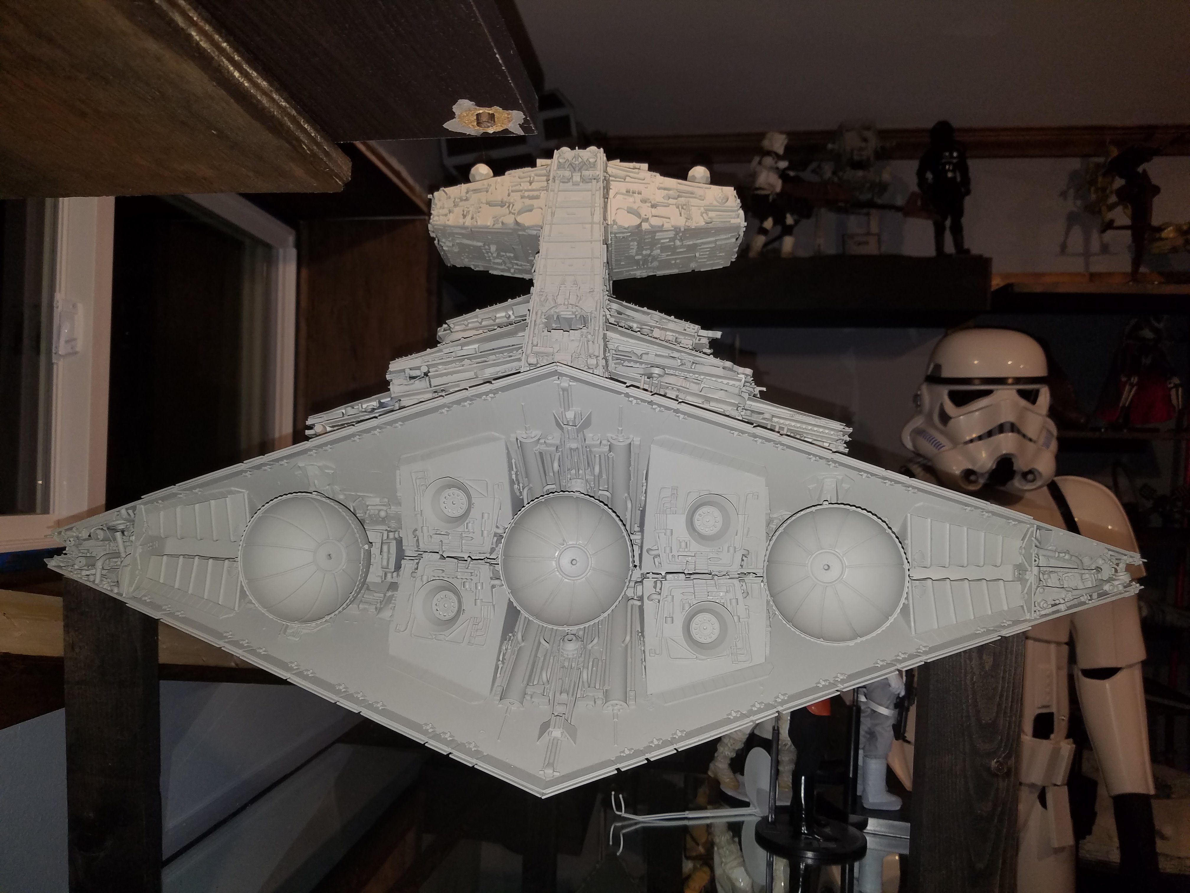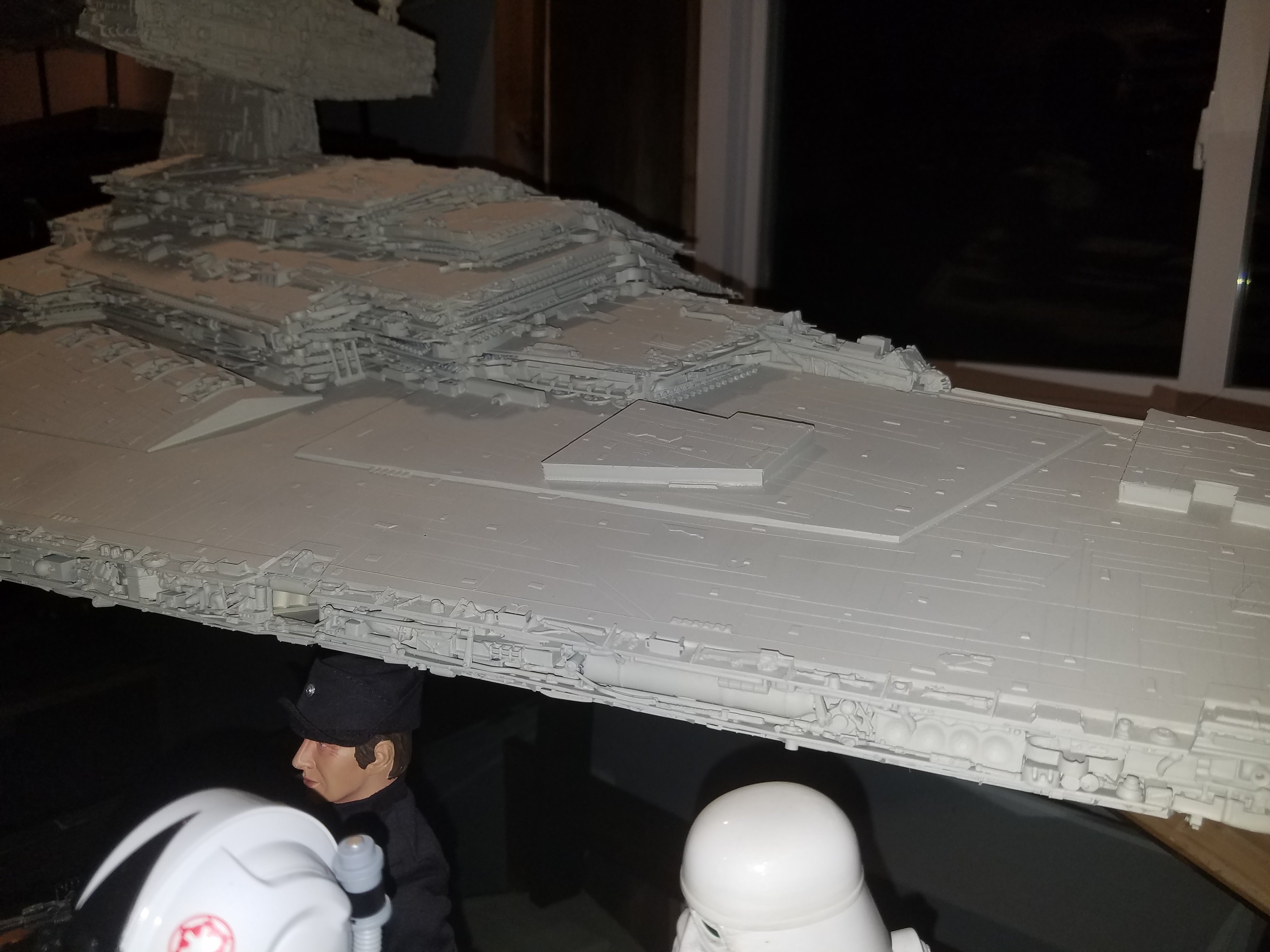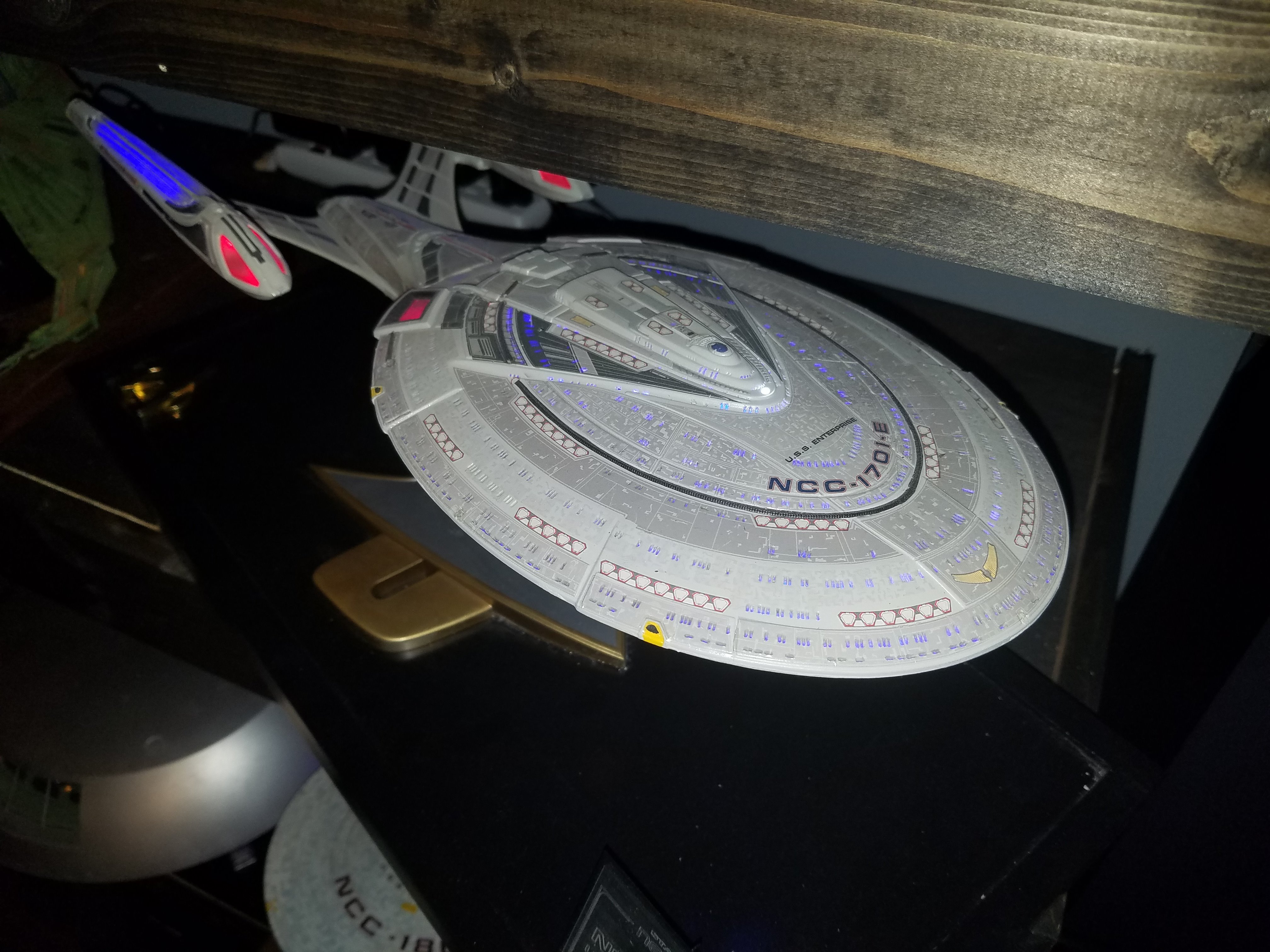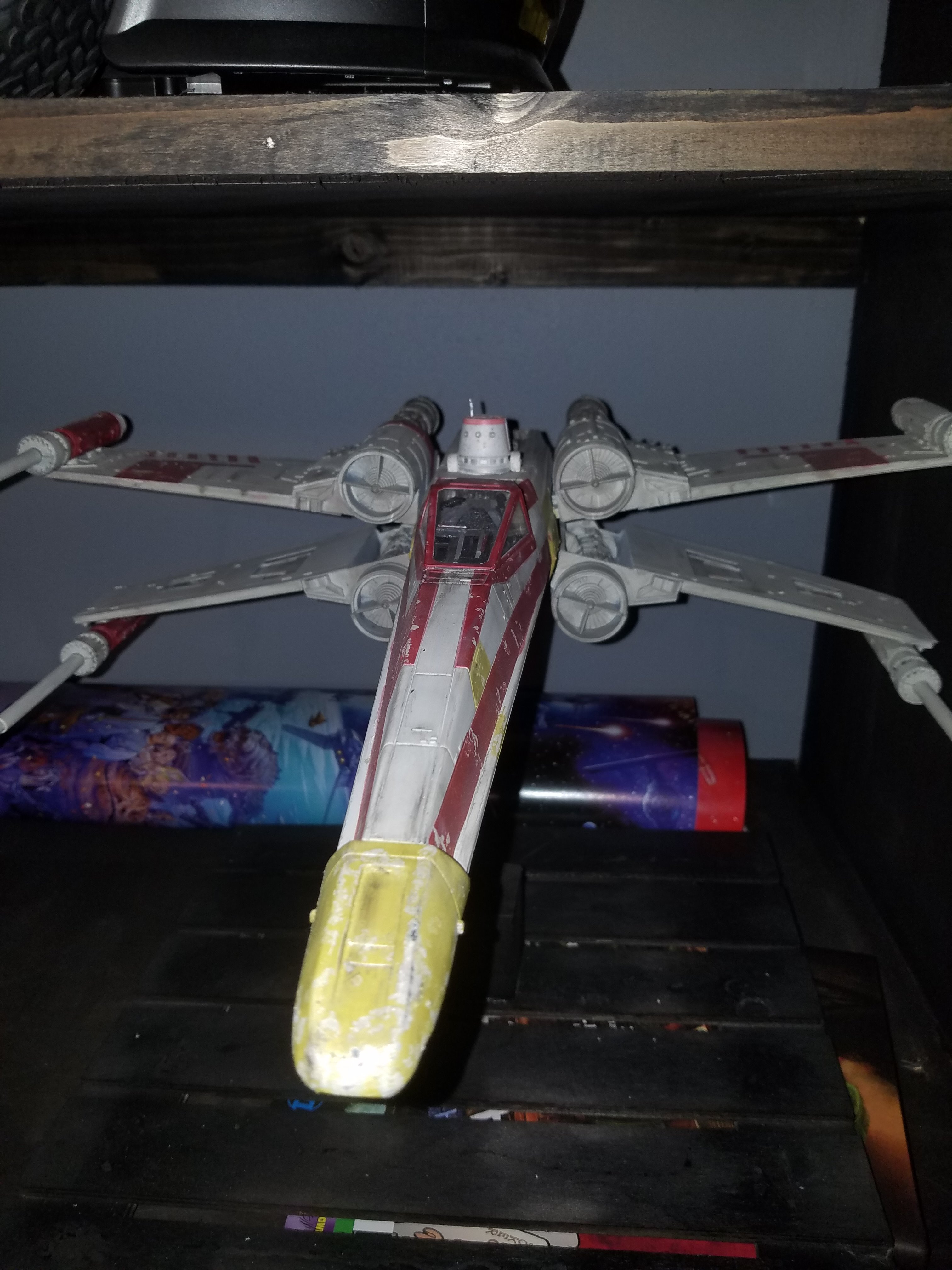 I have been a long time viewer of Modeler Magic and thought I would submit some of the things that I have created over my modeling career. Here is a general look at my current collection. Most of the larger ships are all built from scratch. The lit builds are from kits, and I have a lot of Hasbro toy mods in there as well. Also, I have a few Randy Cooper models and other garage kits. I wanted to scratch build pieces that are unique and not found in many other collections.
