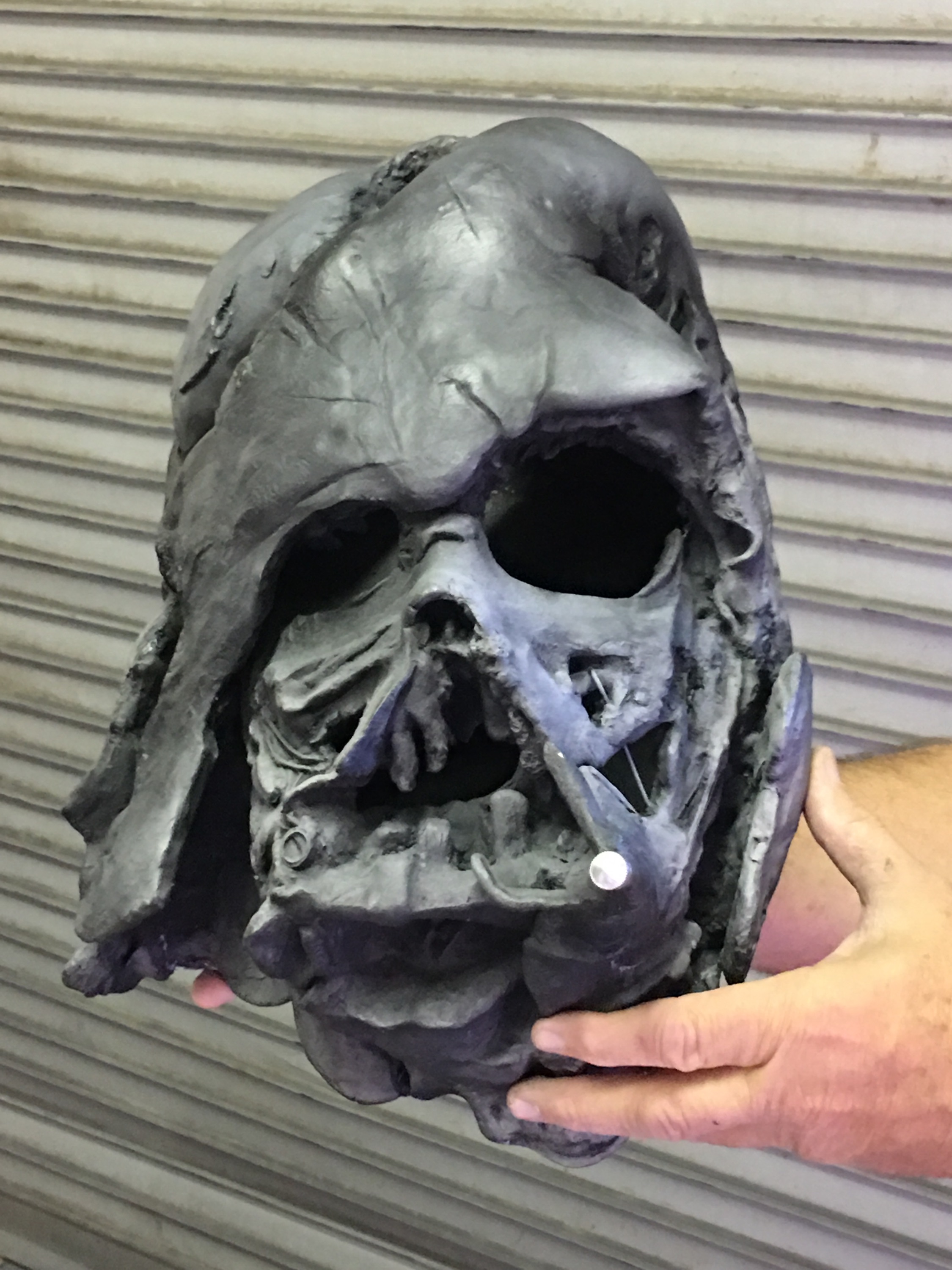 I had the great pleasure to meet artist named Rick Volk about a month ago during my travel months. He had hand sculpted the fantastic TFA Melted Vader Helmet, then intending to make it for sale…. which it now is through KORBANTH for $495 USD (plus shipping)! I have to say that this piece is quite outstanding and Rick did amazing work! This is in no way associated with the PropShop offering,… which has now unfortunately closed it’s doors. Rick’s TFA Vader is completely his own work, and I can tell you it is beautiful! Great job Rick!