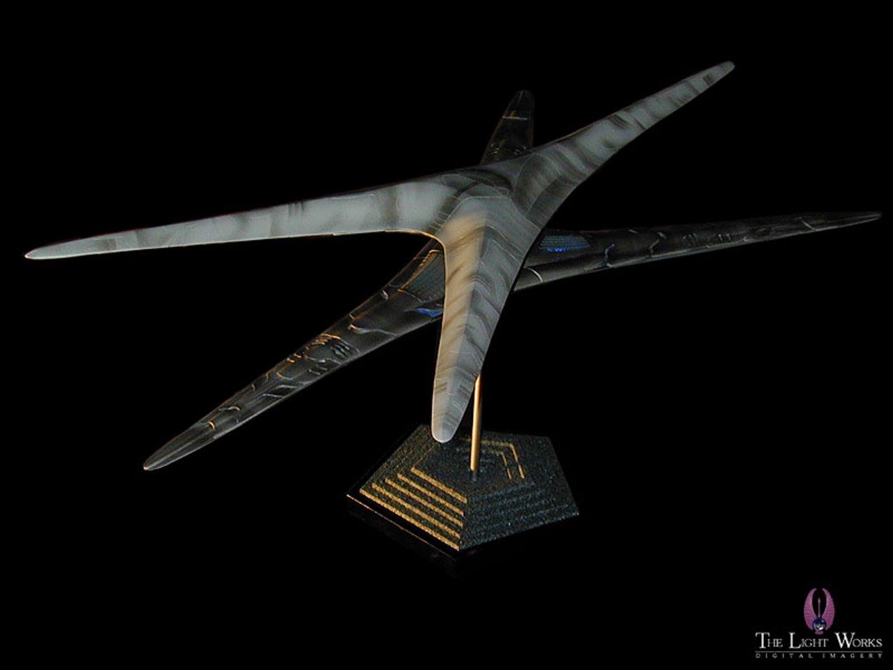 This magnificent piece was built and photographed by artist Tobias Richter of The Light Works. Tobias used the Howling Wolf 1/2500 kit (HW-005) that is now sold by JT-Graphics (CLICK HERE to View their Kit). I love how the subtle blue lighting accents the Cylon Raider bays on this huge 29.5 inch model. Plus, if one chose to have a to scale display for BSG, this goes along side their 1/2500 22.5″ Battlestar kit perfectly. This one is beautifully built by Tobias Richter.