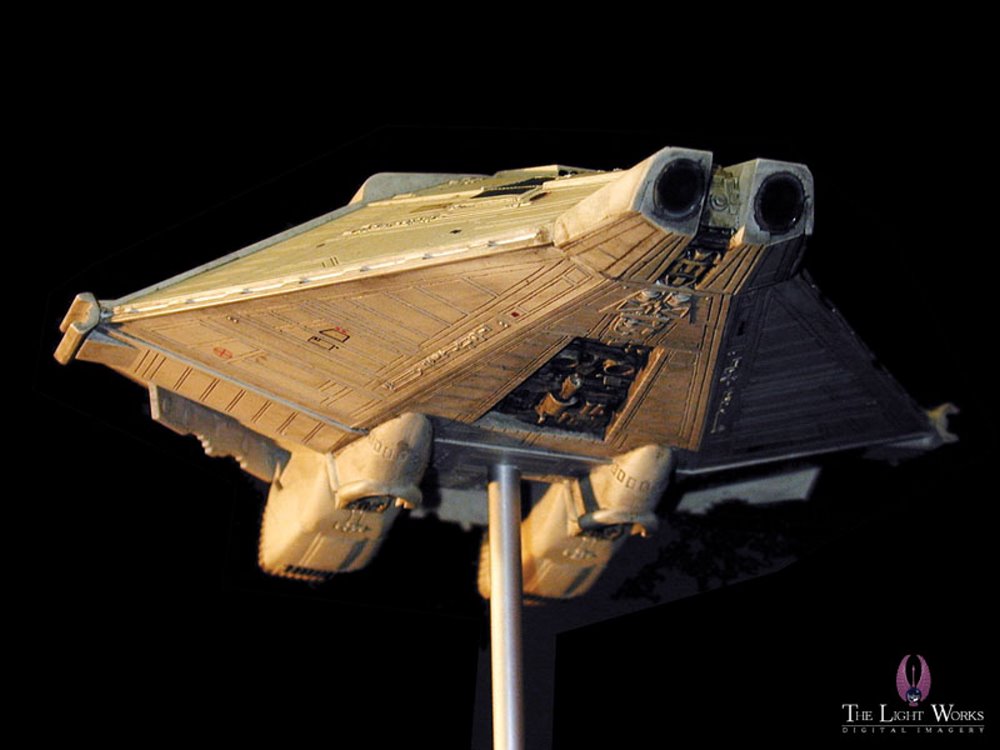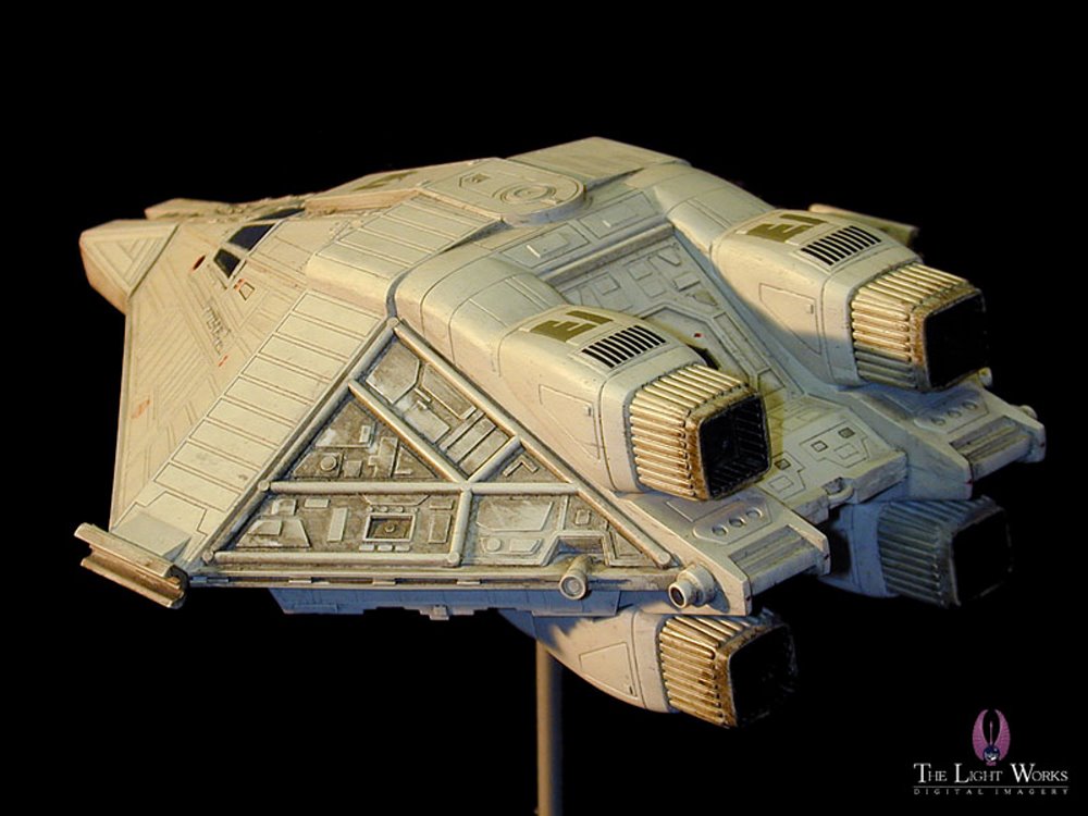 “This is the escape capsule, NARCISSUS, which Ripley used to get away at the end of the 1979 film “Alien”. The kit is very nice, although there are some parts that don’t fit perfectly (the nose section). But over all, this is a beautiful little ship.”