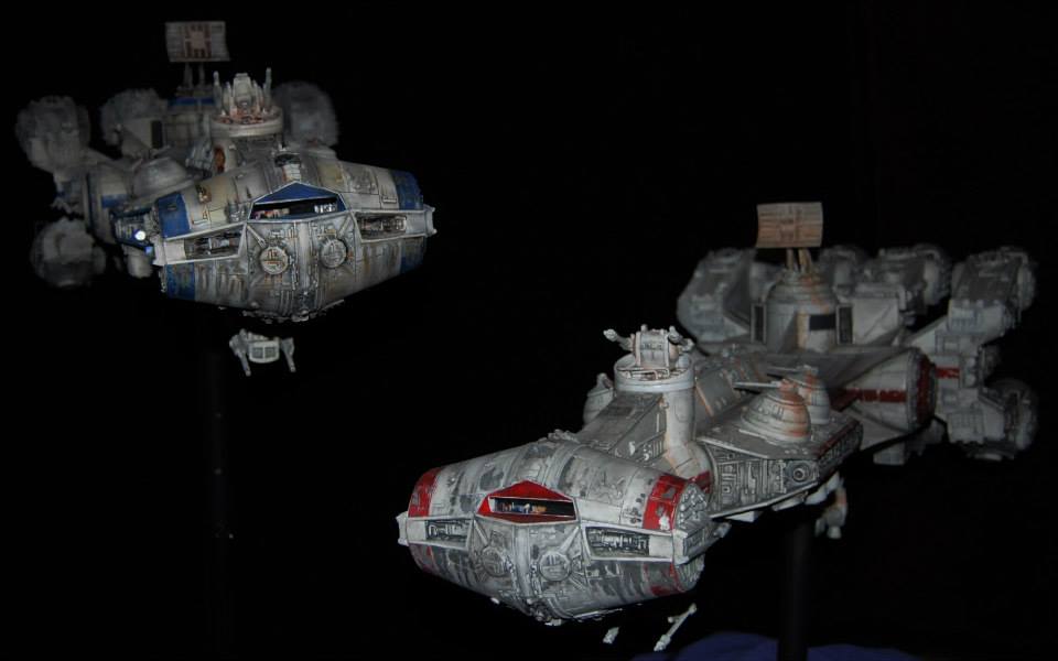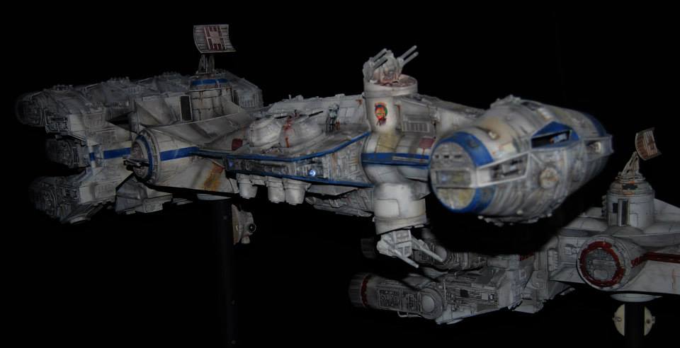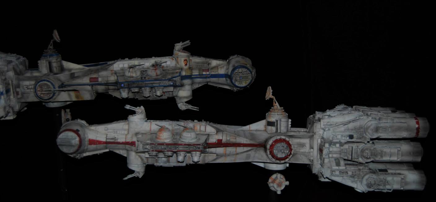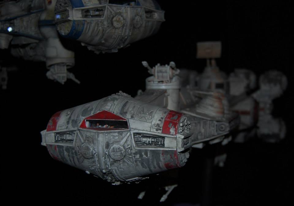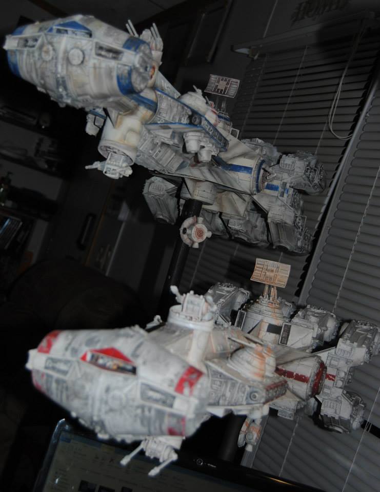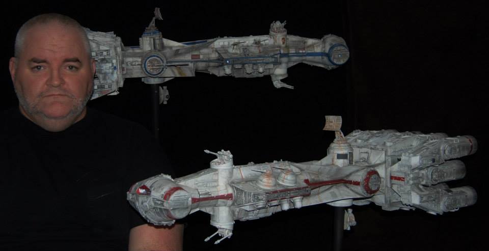 After winning a few close to home Modeling Contests, artist Ray Lawson is now crating these two beautifully built 41 inch Blockade Runners to be sent to Kuhn Global / Modeler Magic for display. Built from the amazing Chris Kelley kits, Ray gave these two beasties life in the best way. They are fully lit and each have the bridge crew viewable inside their bridge modules! Outstanding work. Stay tuned for more from Ray soon! Maybe even two more Blockade Runner builds (possibly THREE)  he may again be taking on! I wish to thank Ray for his continued excellence in this art form.