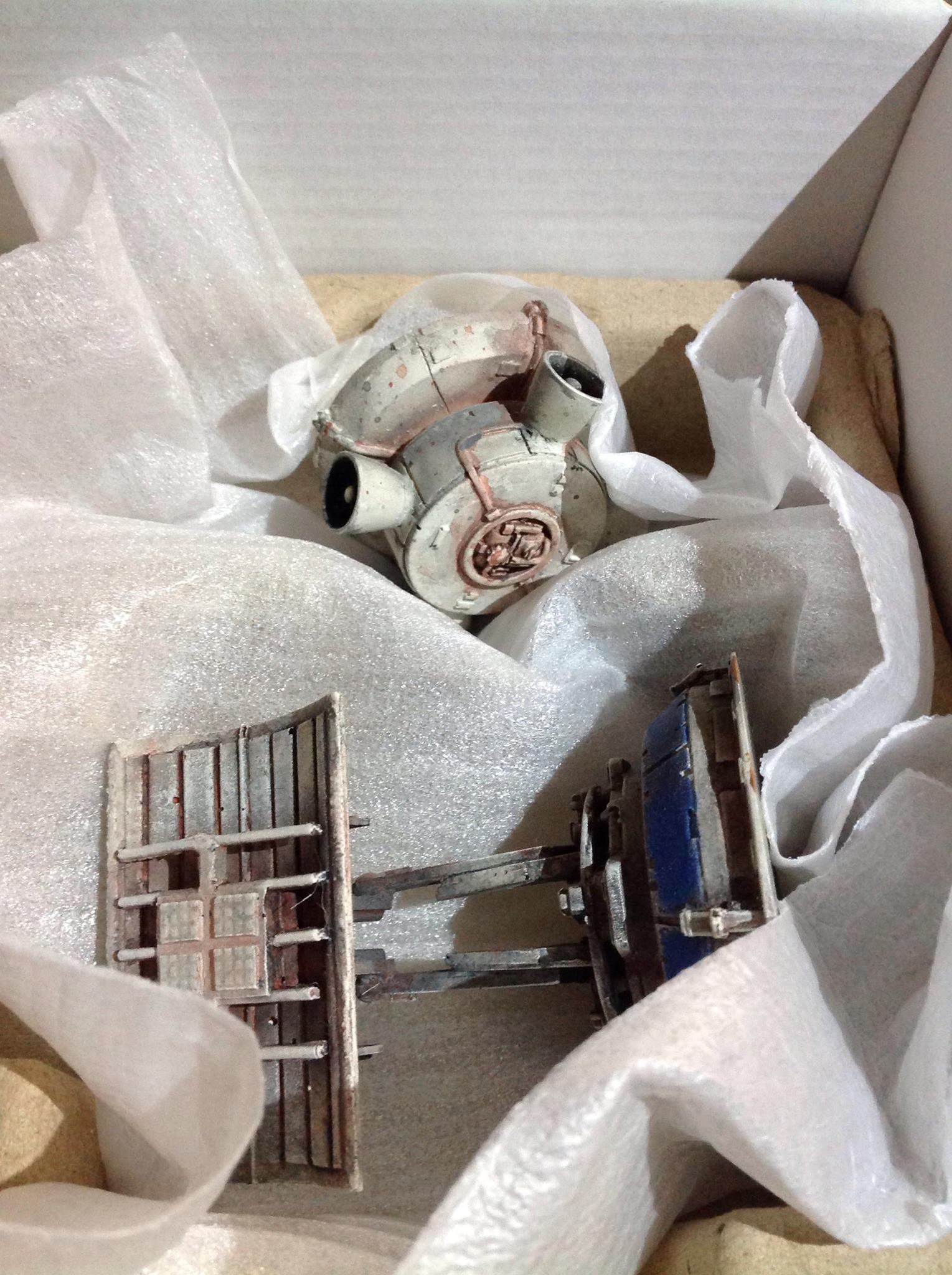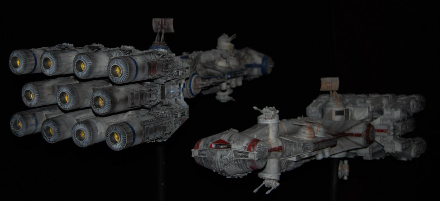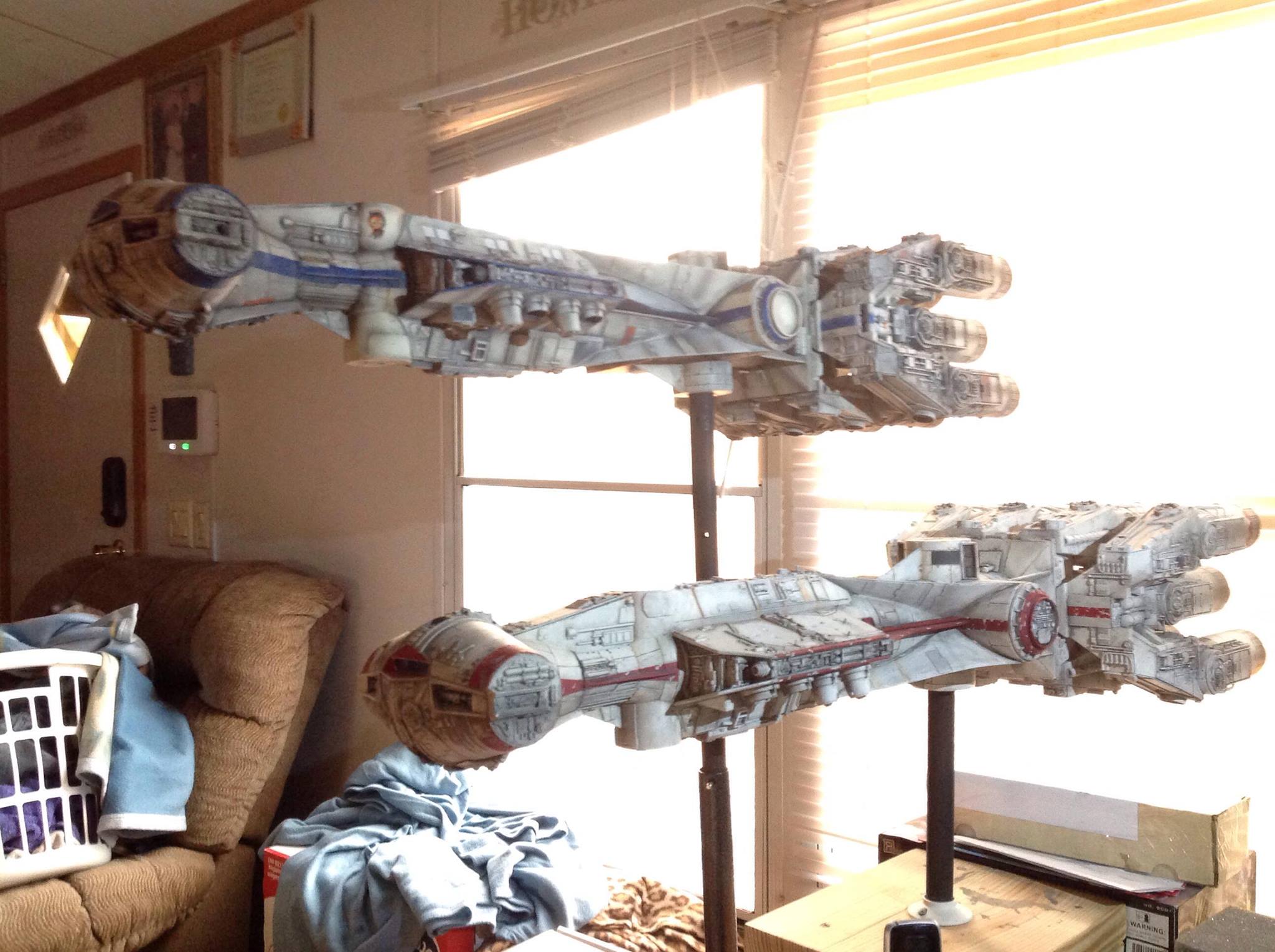 After winning a few close to home Modeling Contests, artist Ray Lawson is now crating these two beautifully built 41 inch Blockade Runners to be sent to Kuhn Global / Modeler Magic for display. Built from the amazing Chris Kelley kits, Ray gave these two beasties life in the best way. They are fully lit and each have the bridge crew viewable inside their bridge modules! Outstanding work. Stay tuned for more from Ray soon! Maybe even two more Blockade Runner builds (possibly THREE)  he may again be taking on! I wish to thank Ray for his continued excellence in this art form.