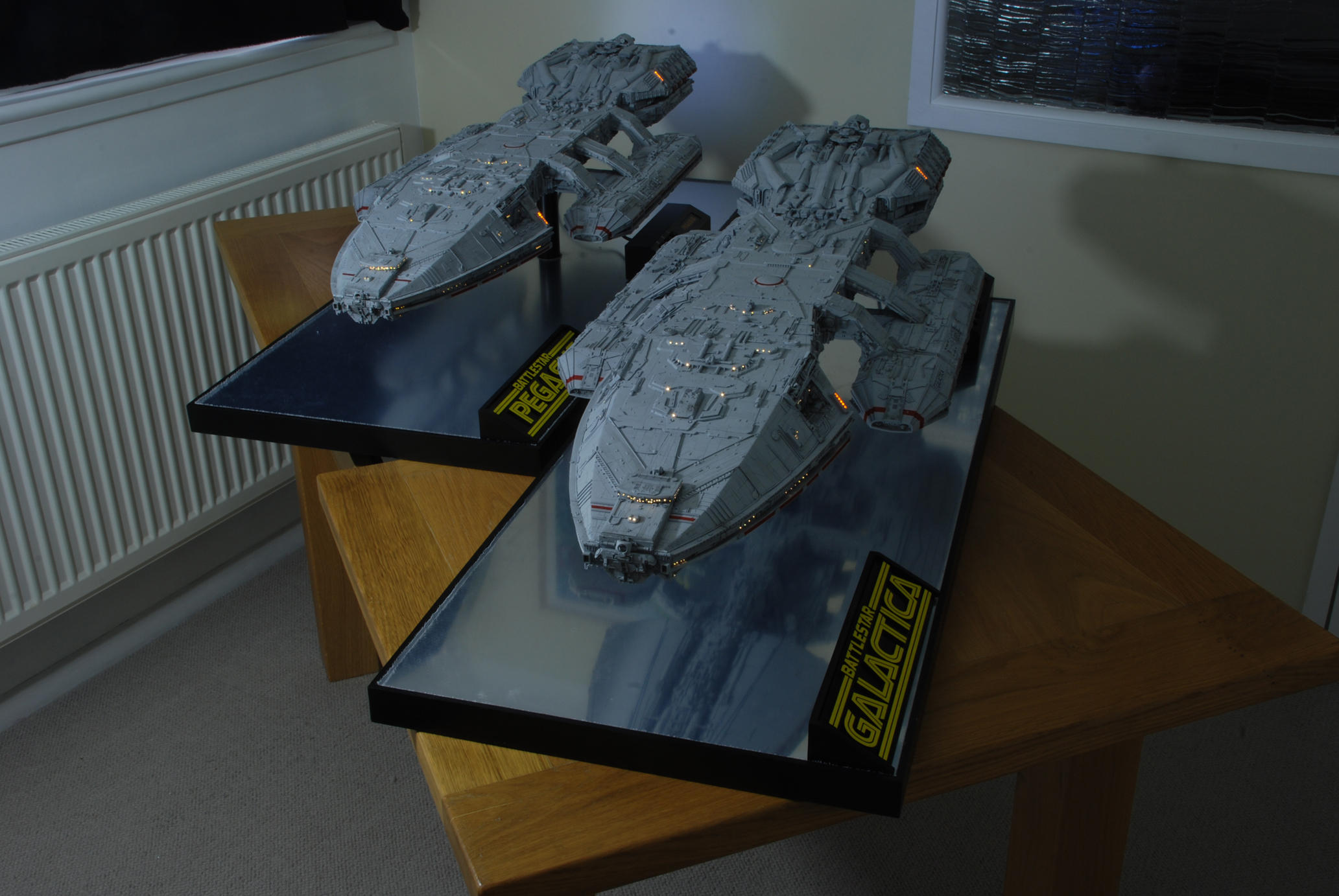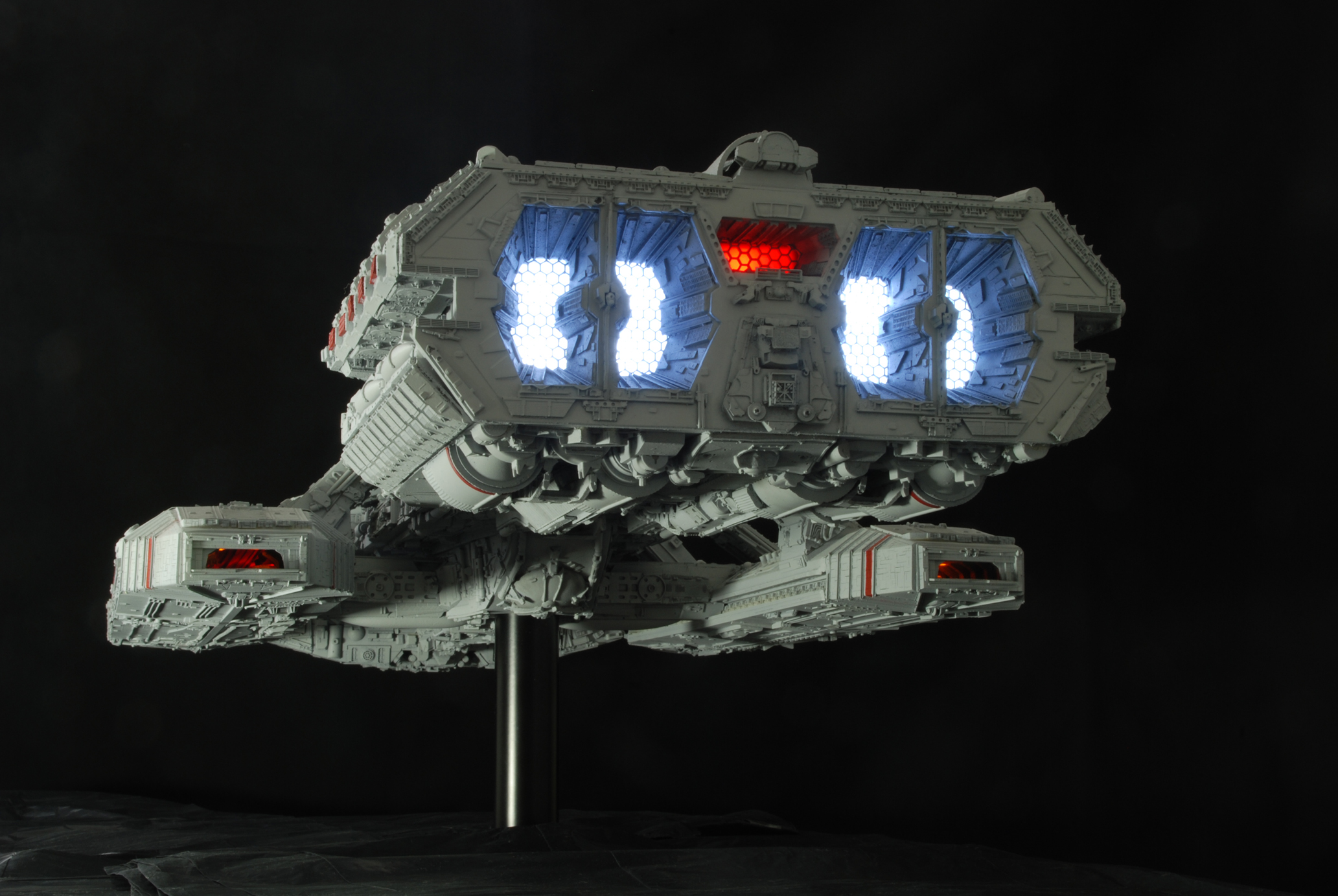 Collector Michael Kuehner must be smiling ear to ear with these two magnificent Battlestar builds by Nick Sainton-Clark. Built from the 37.5 inch Salzo half studio scale kits, Nick had originally been the artist who assisted Salzo make the parts the correct scale for the kit, thus he knows this kit like the back of his hand. Beautiful work!!