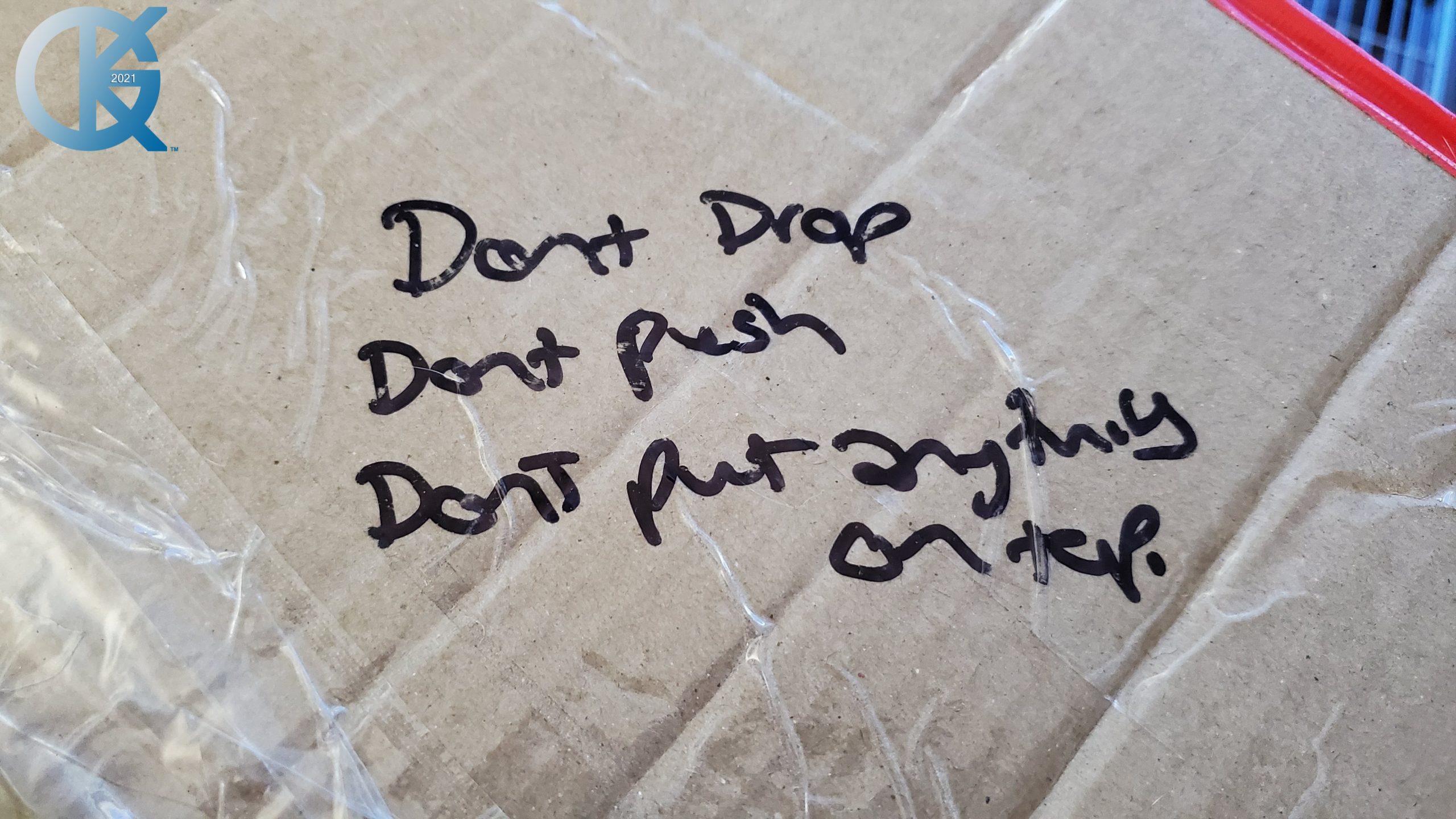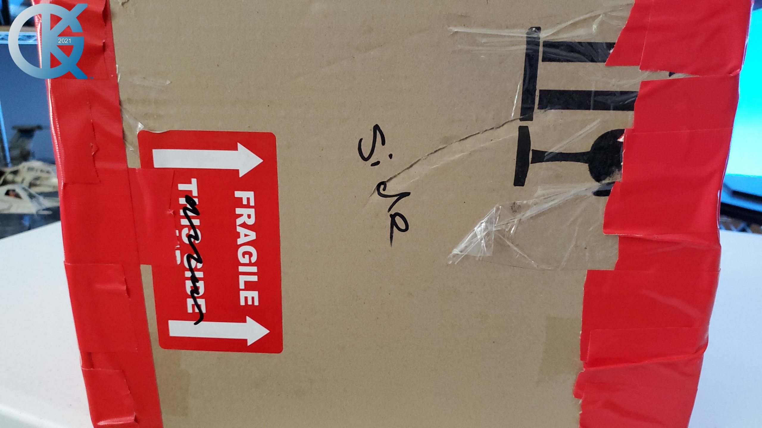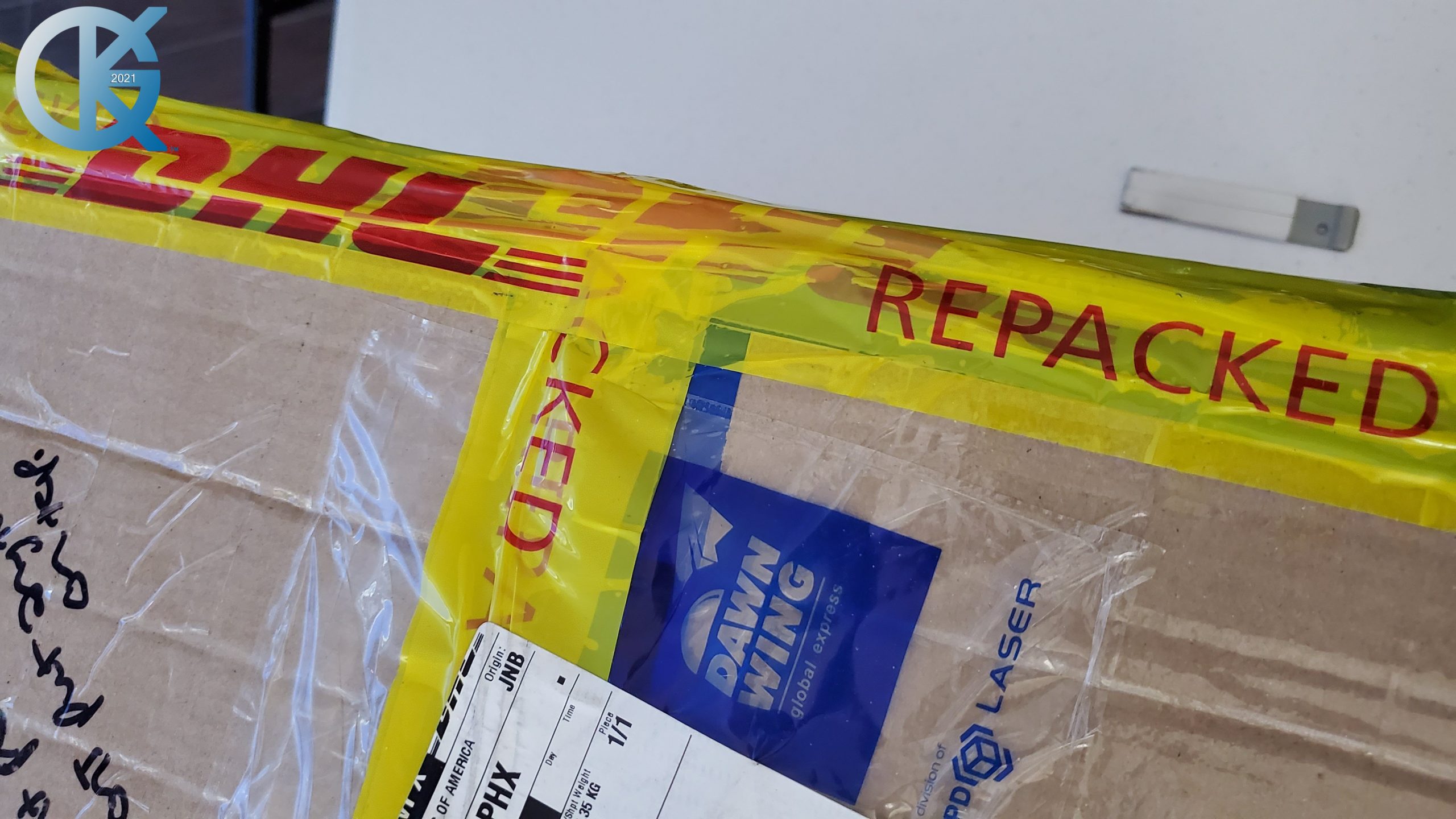 In the first photos, you can see that the main box was indeed opened by the Customs Agency, and that DHL re-taped it to continue on it’s journey to me. When it arrived to me, Even though Tony’s spouse stated that protective wording on the box, it was evidently still stacked upon in some way, and the side was dented in significantly. Because we took the extra packing precaution of what is referred to as “double-boxing”, the boxes inside were unharmed.