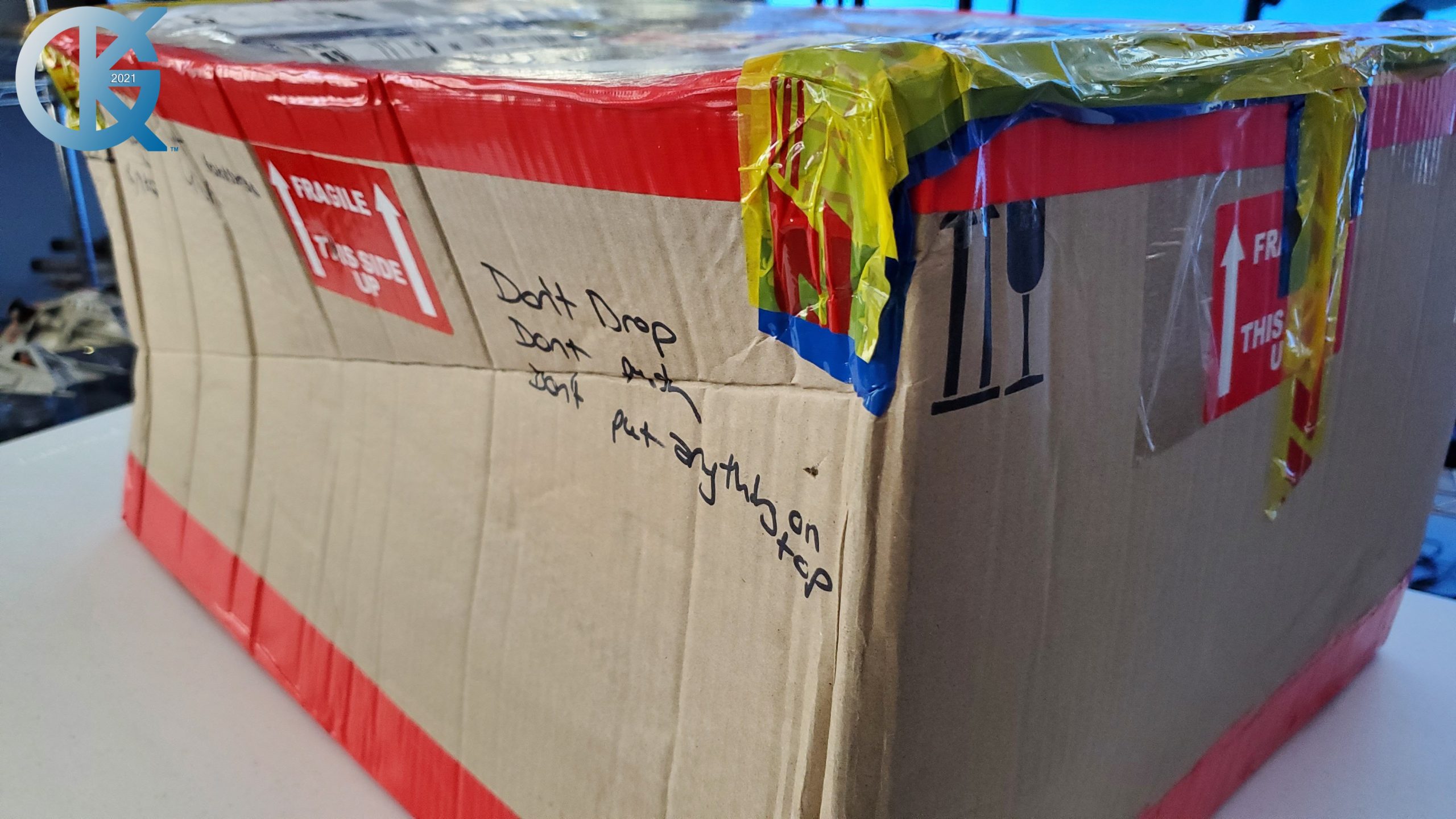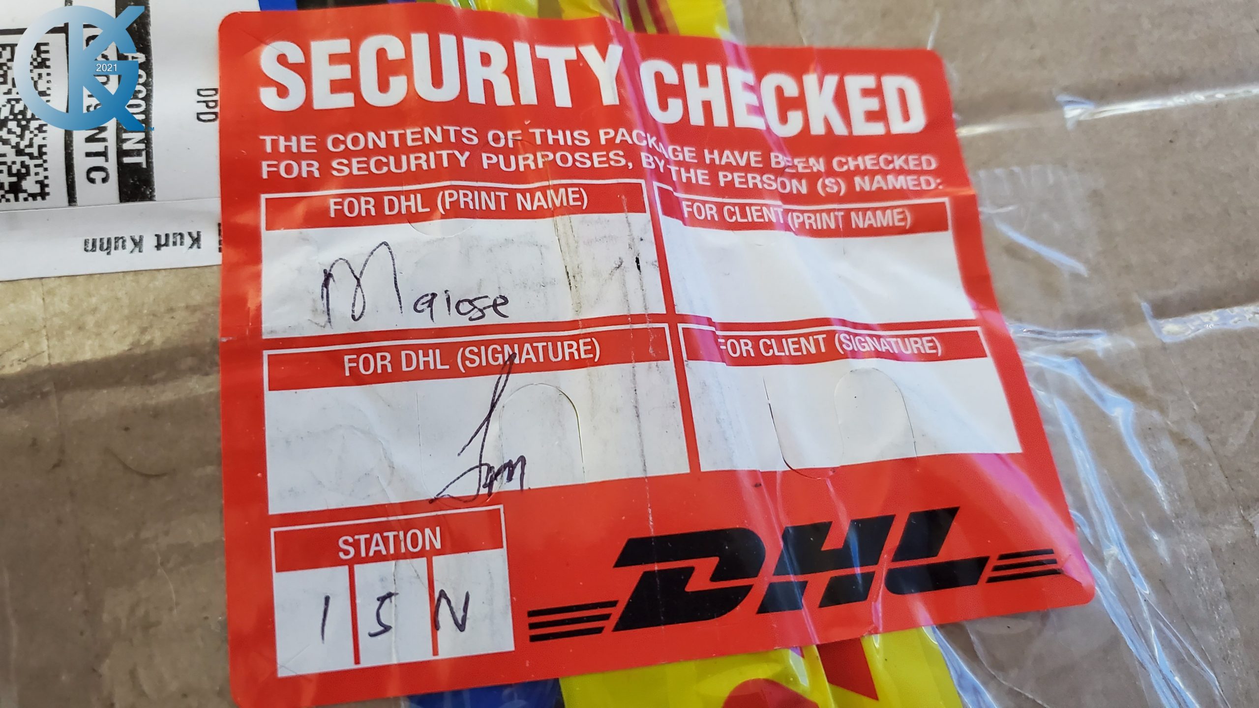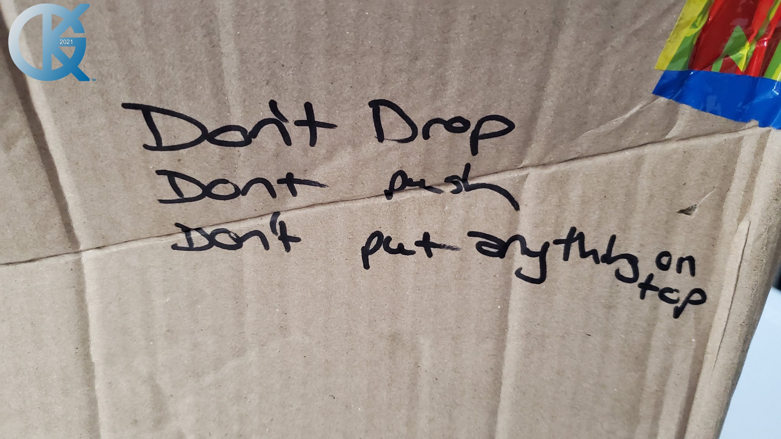 In the first photos, you can see that the main box was indeed opened by the Customs Agency, and that DHL re-taped it to continue on it’s journey to me. When it arrived to me, Even though Tony’s spouse stated that protective wording on the box, it was evidently still stacked upon in some way, and the side was dented in significantly. Because we took the extra packing precaution of what is referred to as “double-boxing”, the boxes inside were unharmed.