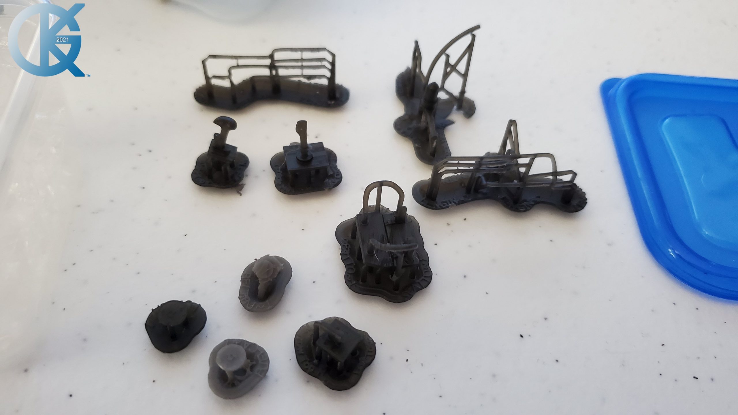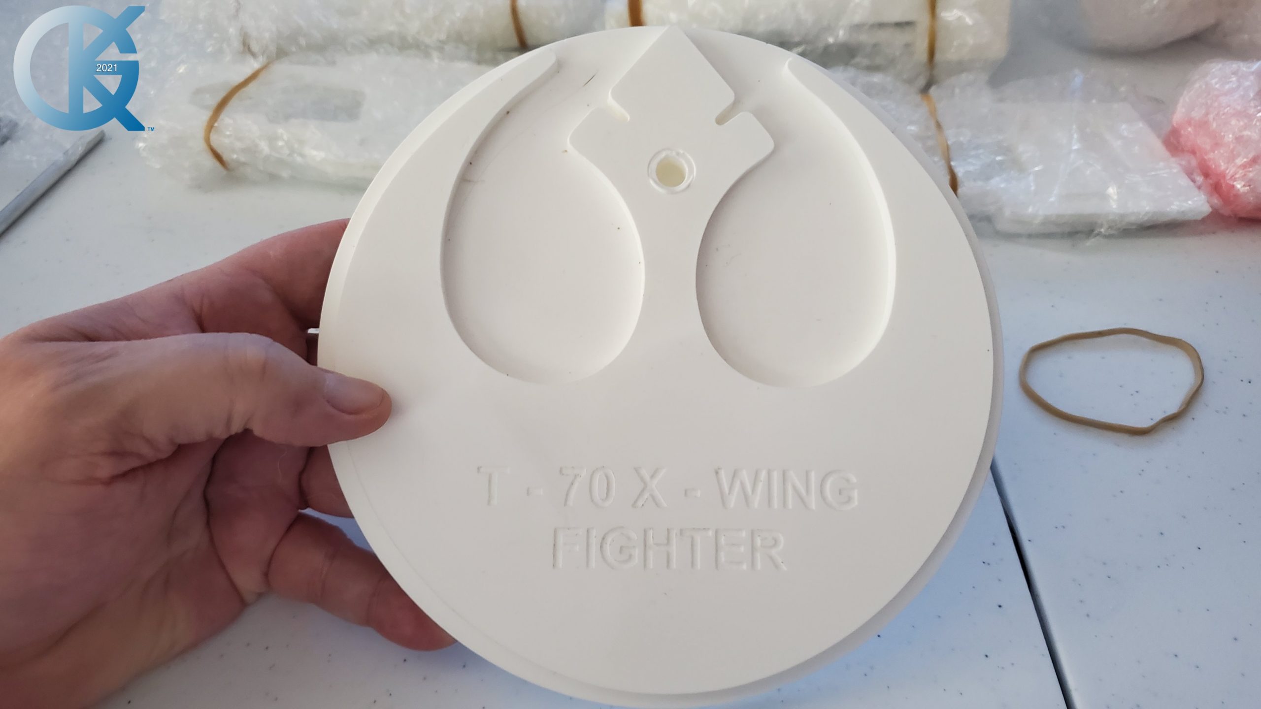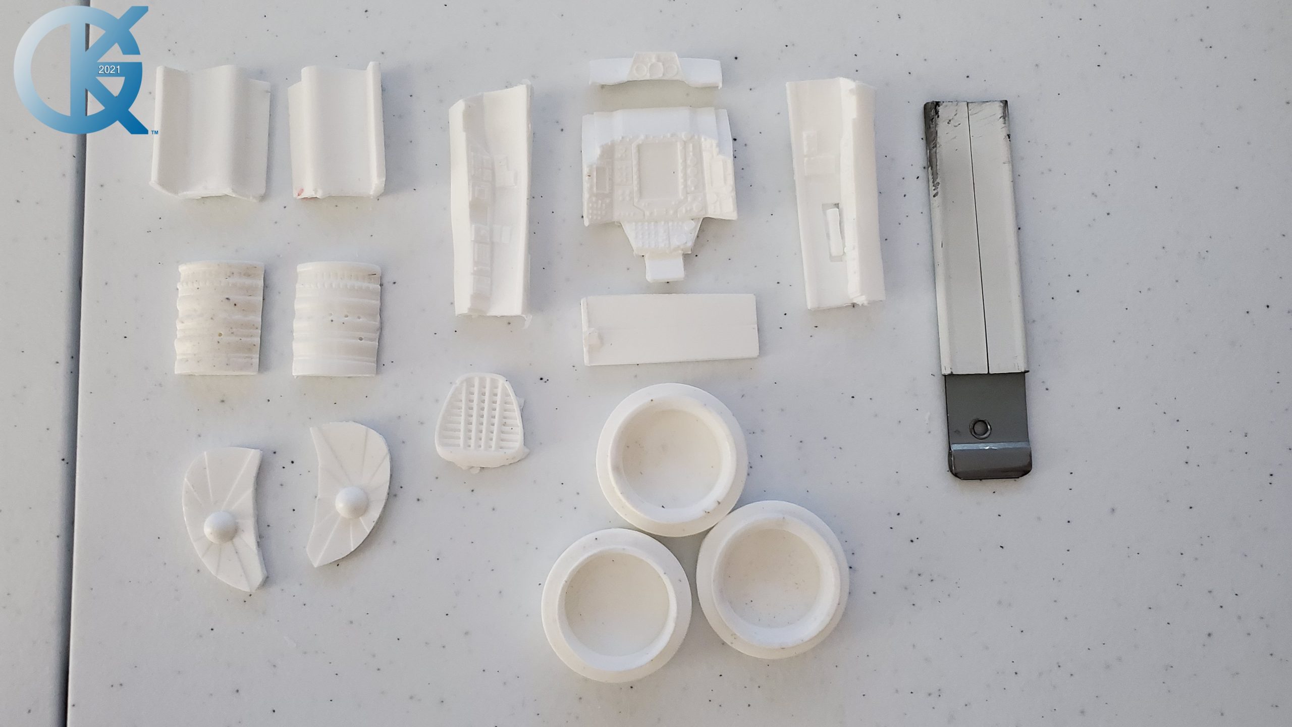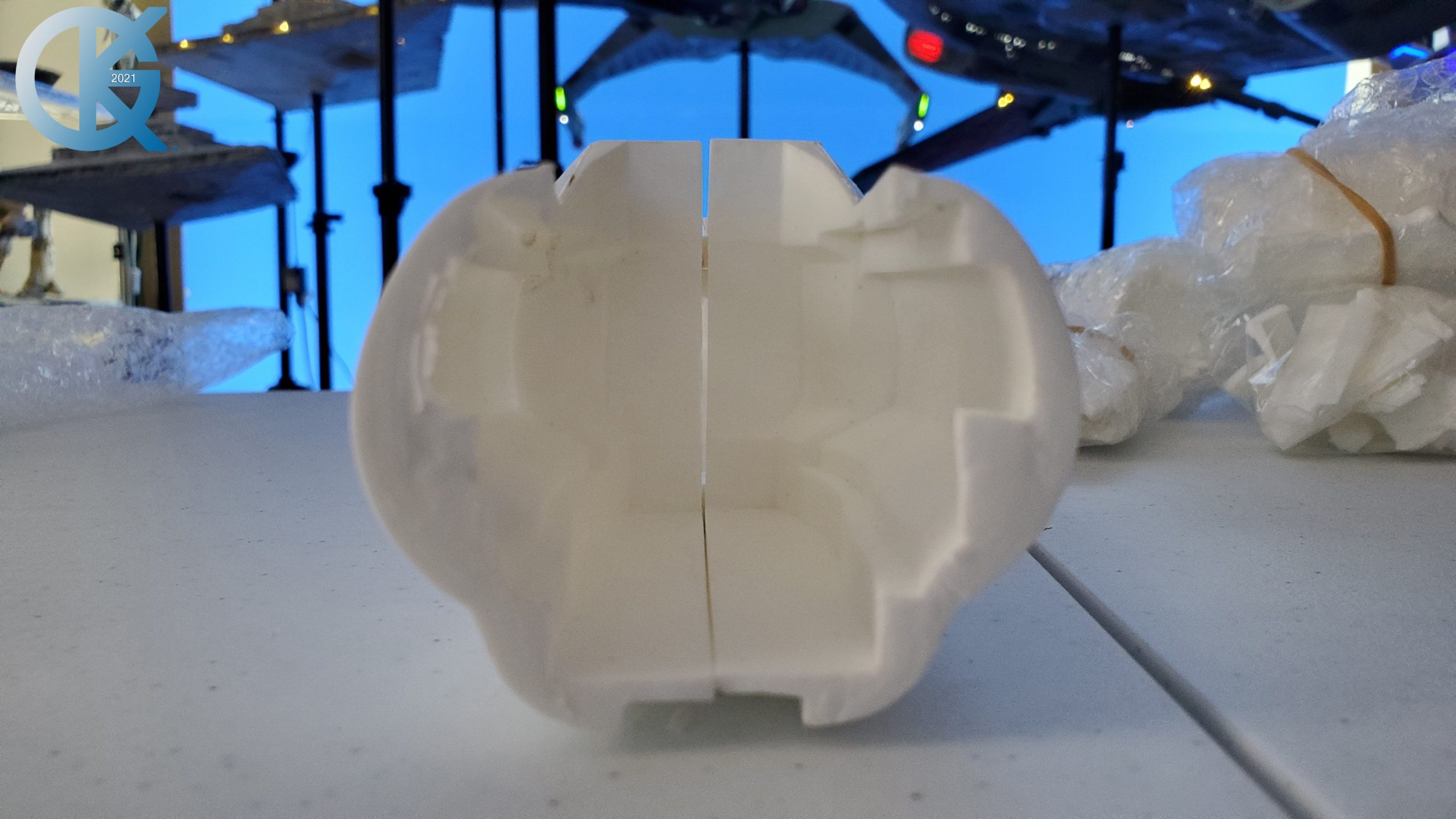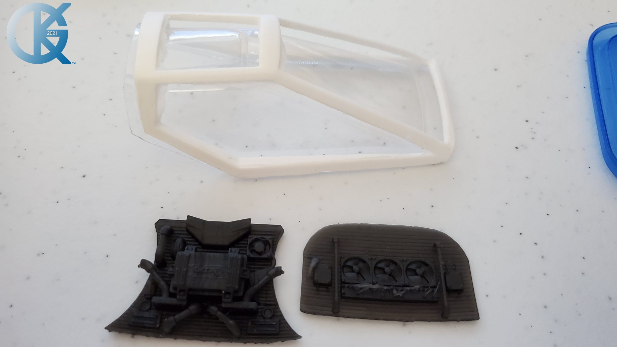 Pulling out the kit parts was wonderful, and there were many that were all wrapped up, or placed in fantastic tiny containers to prevent the parts from potential crushing. While some parts have a few tiny voids here and there, mostly each part I unwrapped looked wonderful and clean. There were some parts that shall require 3D print line clean up, but that truly is part of the build experience for the artist. Included were printed photos to replicate the paint job, along with a wonderful decal sheet, not to mention the aluminum mounting rode for the well designed stand base (also included). The canopy “glass” is included as well, though we may utilize our own options for this build, or possibly leave it off all together… like the studio scale replicas on display here. The vacu-formed canopy is nice, and is clear of any wavy artifacts. This kit looks to be comprised of the larger parts being resin casts, and smaller parts, or detailed parts having been 3D Printed directly. Occasionally there were parts that had some particles within the resin… like some sort of dark fibers. I am not sure what they are. That parts are clean enough, however, and after cleanup, build and paint,.. nobody viewing the finished piece shall every know those particles existed.