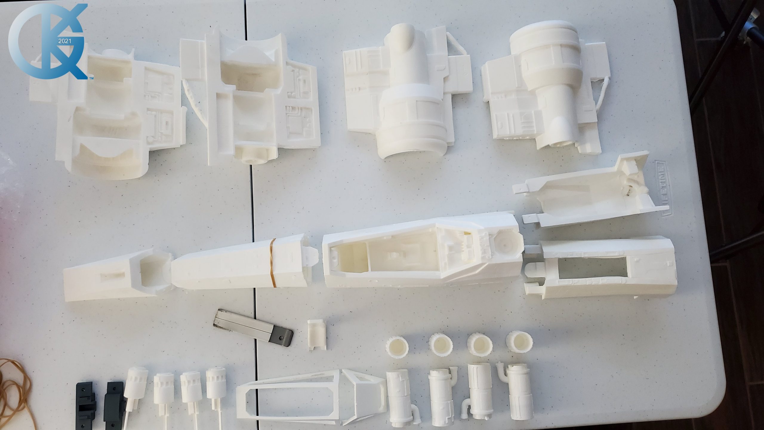 Opening this kit, and removing it all took some time. I photographed each wrapped part as I came to it, noting haw large it all is. I am amazed at it’s size! I LOVE THESE LARGE MODELS! Inside the box is printed art work, all the metal tubing, screws, a wing stripe guide, and once again vacu-formed canopy glass. The parts again were well packed and wrapped. You can definitely tell which were directly 3D Printed, among the larger parts that were printed, cleaned up, and cast in resin. You can see the size of these parts that comprise the fuselage and wings. There is no doubt as to the immense size of this model, and the many parts that comprise it. Impressive. The 3D Printed wing blocks are wonderful, and I am looking forward to their use. They feel solid, though light in that 3D printed way. The wings are also strong, yet light in weight. Many X-Wings ending up sagging over time unless there was added strength. These wings feel strong.