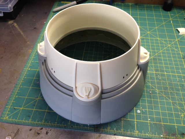 All four nacelles have been joined, now applying the fiberglass epoxy throughout the entire inside of the nacelles, it fully hardens within 2 hours, after the epoxy is finished then I will fill the exterior seam with filler then I will begin sanding it all to shape, then I will start to build the front grills and the other details, the inner grill that lights up will be left off in order to have full access to its interior for lighting and will be the last nacelle part to install.
