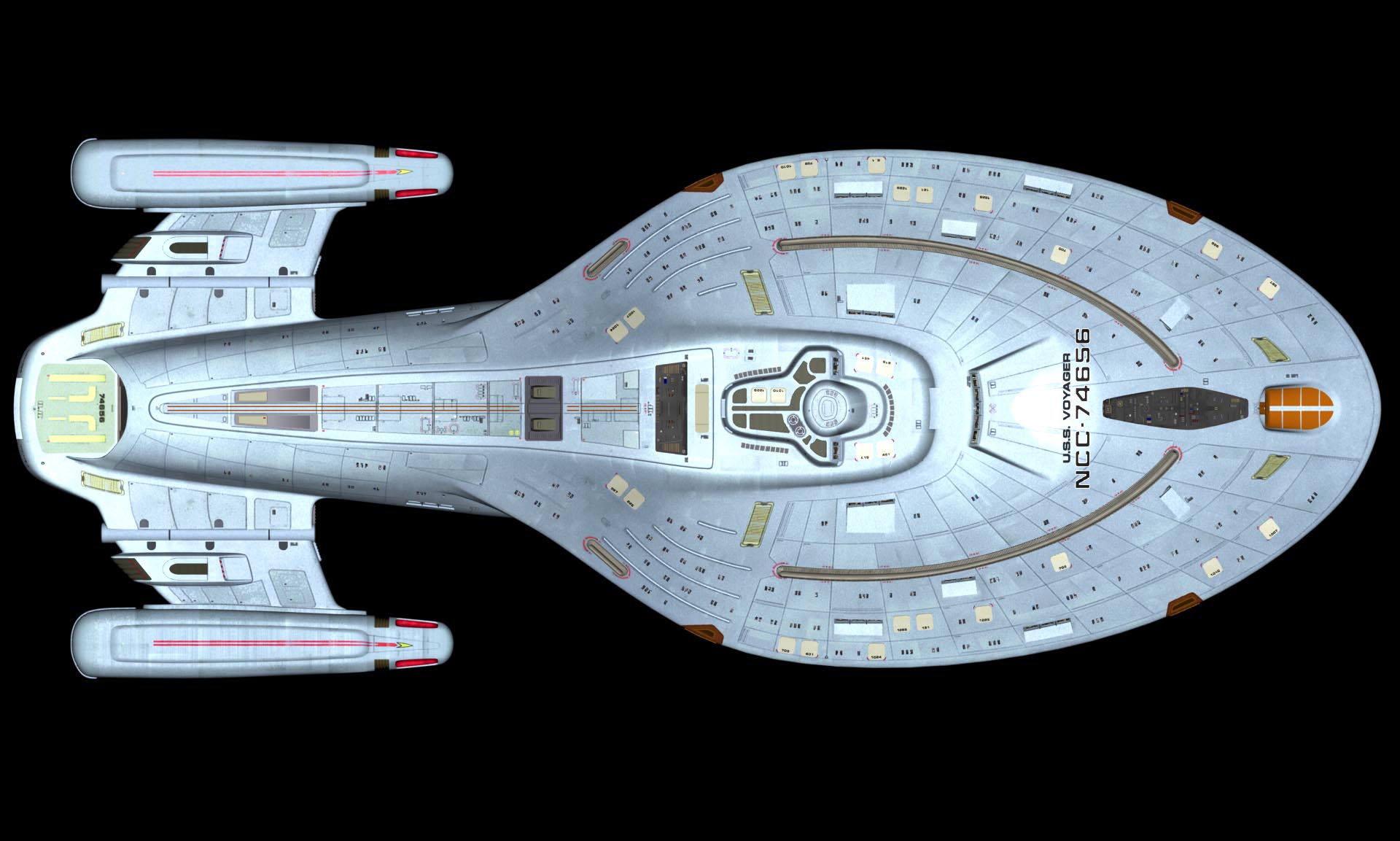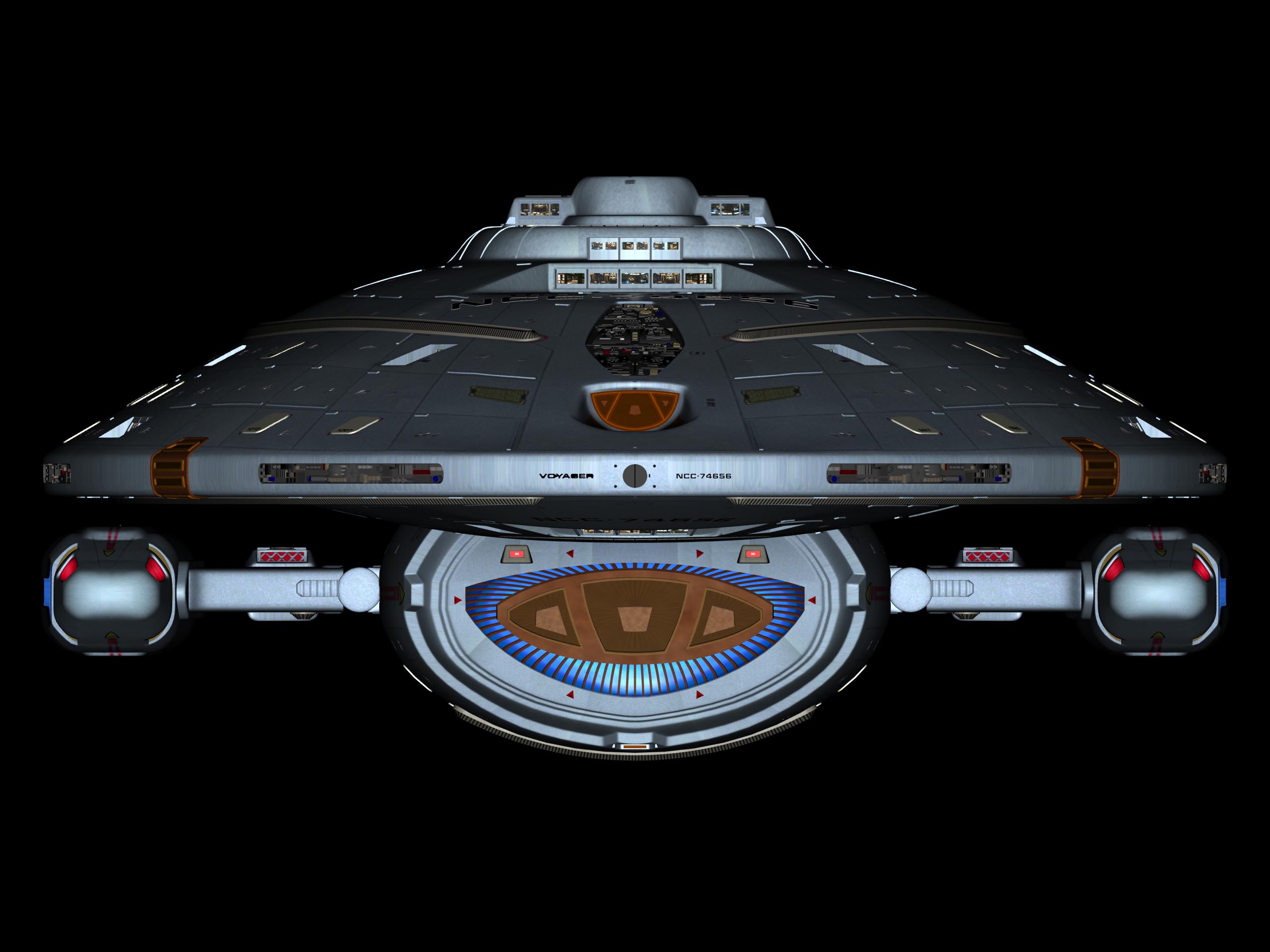 This is the USS Voyager that was created for Star Trek Voyager by the talented crew at Foundation Imaging. Sadly, after the first season of Enterprise ended, the company was dissolved. I thank Mark Dickson for providing these fantastic renders for all to view.