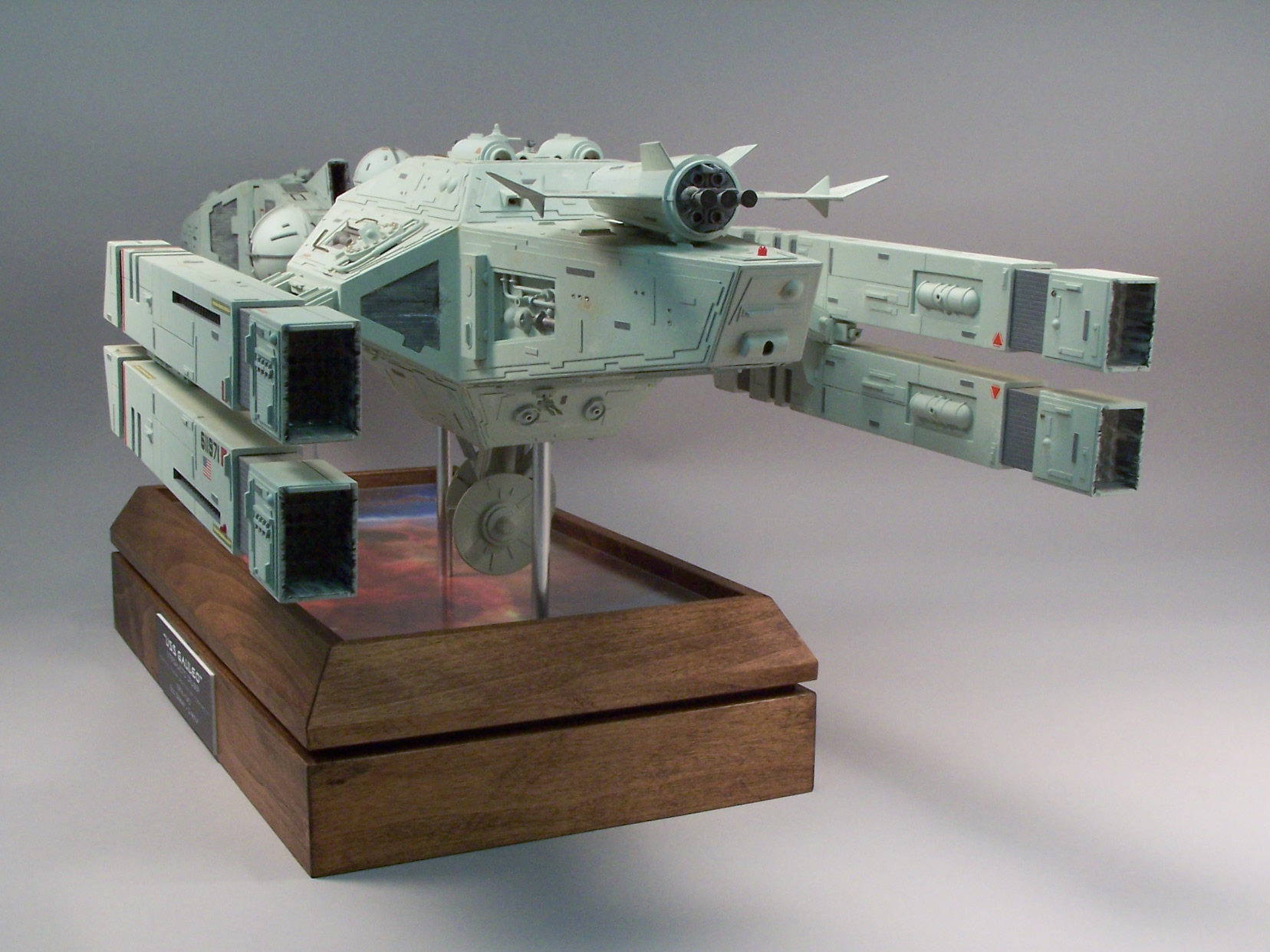 Many elements were also inspired by the iconic “Nostromo” from the first “ALIEN” movie. The nose spikes and the rear engine section being the most obvious. Surface details were added from the parts box as well as many bits from the MSG line of detail parts made by Kotobukiya and sold through Starship Modeler.