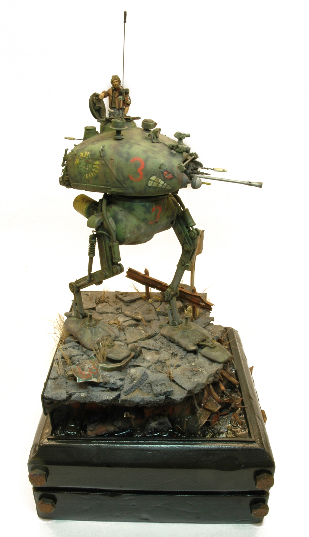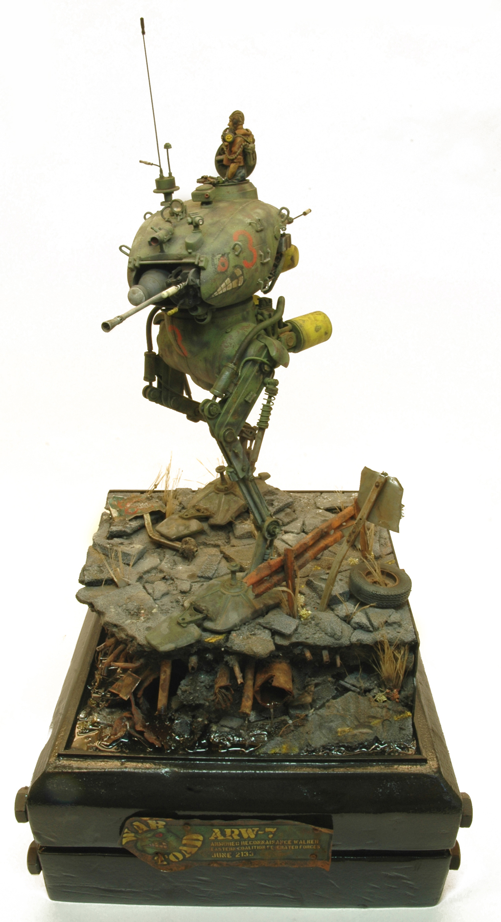 This is a piece I completed a couple of years ago, which I entitled “War Toad”. It is based on the Nitto SF3D kit of the Krote, which I re-imagined into a 1/35th scale scout walker in some kind of post apocalypse earth. I have posted a full build article on my site which can be visited below by clicking on the “VIEW MORE HERE” button below.