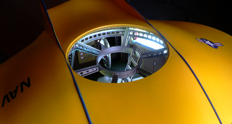 Here are some images of Moebius Models 1/32 scale Flying Sub from the 1960’s television series “Voyage to the bottom of the Sea”. I decided to add some navy markings to the craft just for something different.