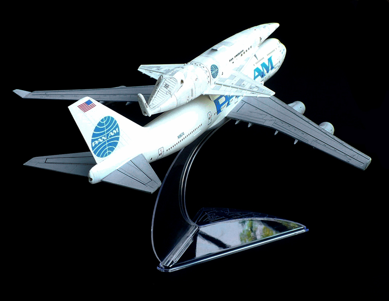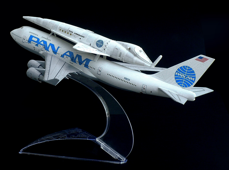 Here are some images of Moebius Models Orion III from 2001 A Space Odyssey riding piggyback on Revell’s 1/144 scale Boeing 747- 400 airliner.