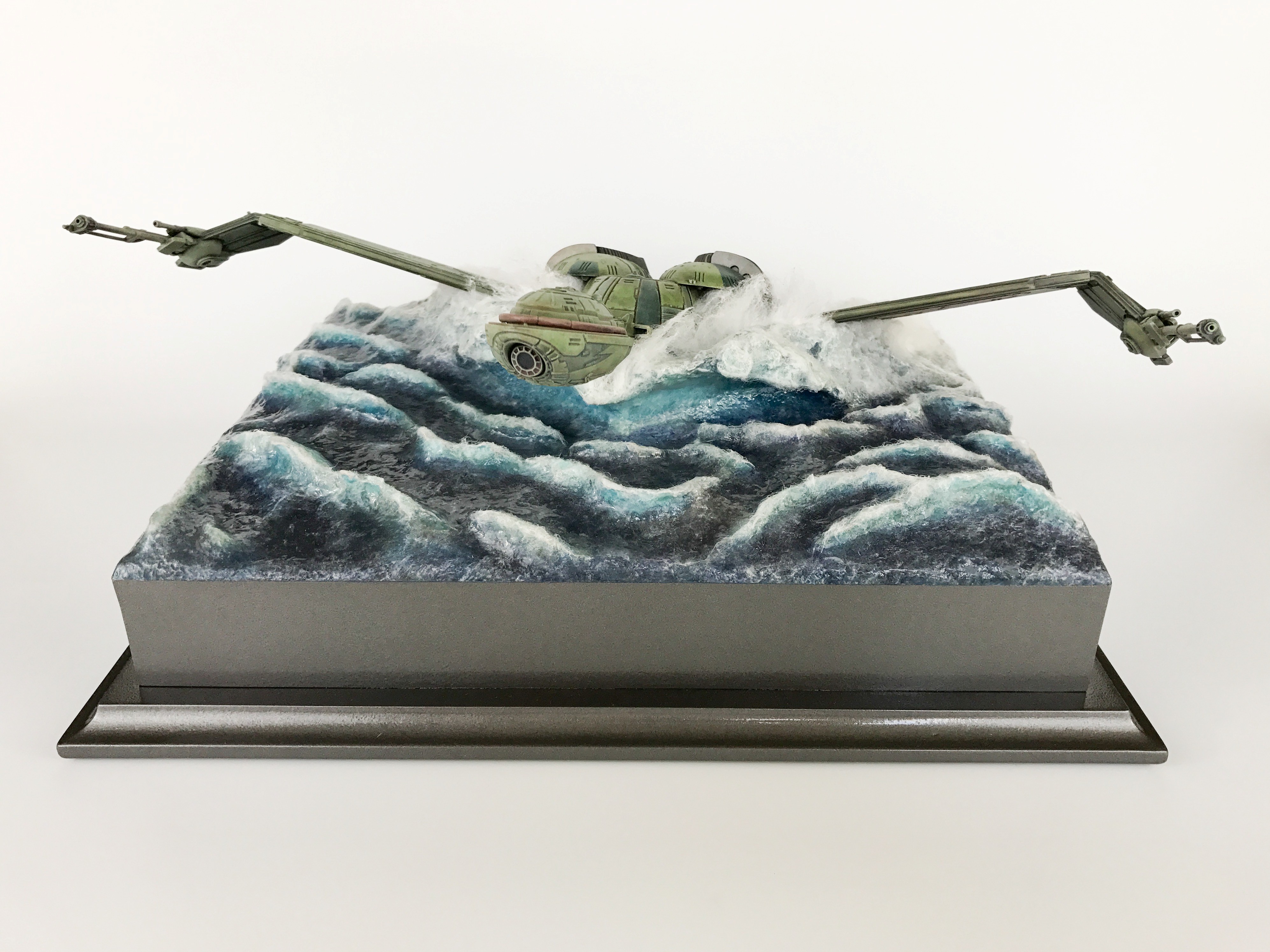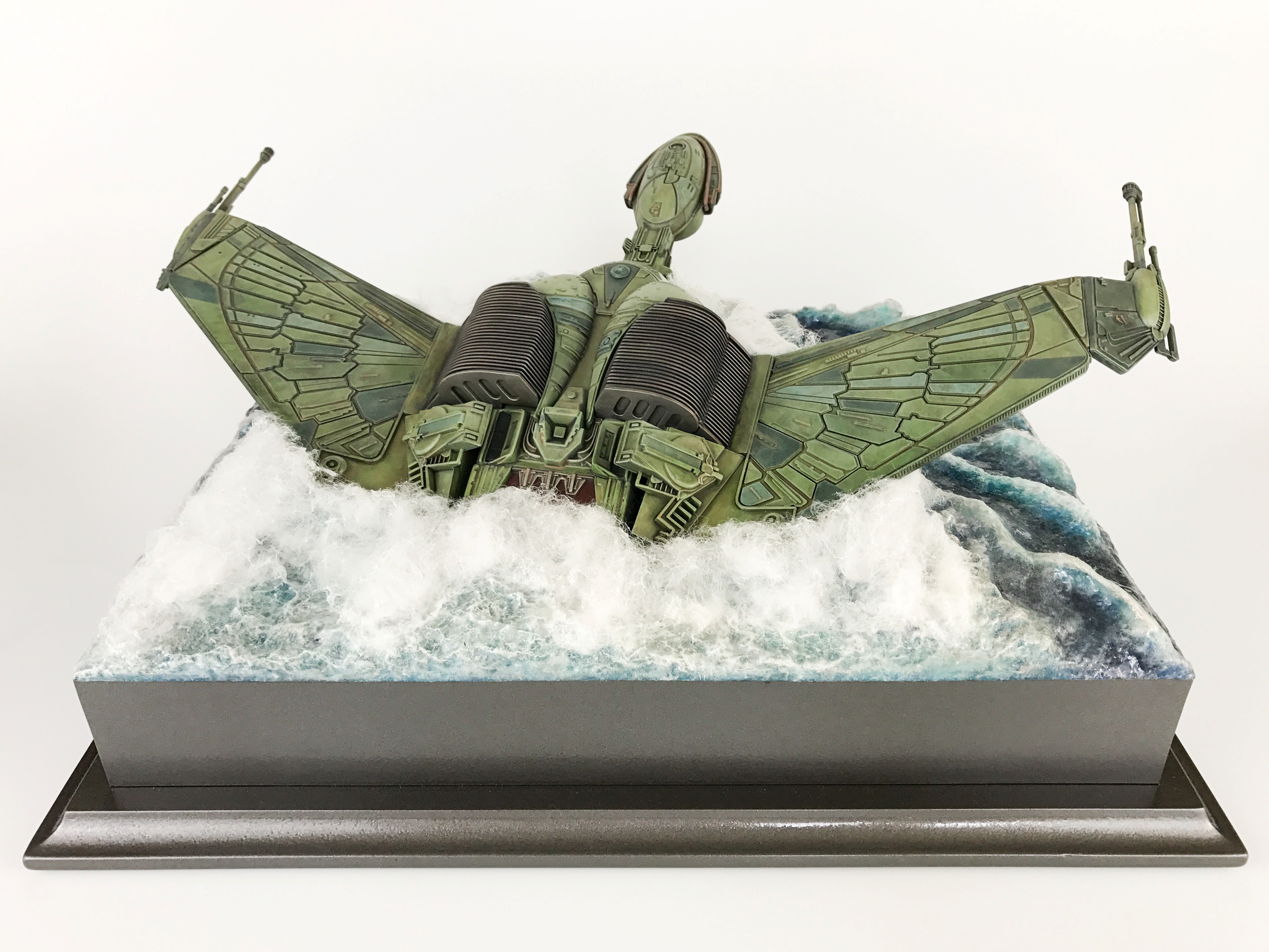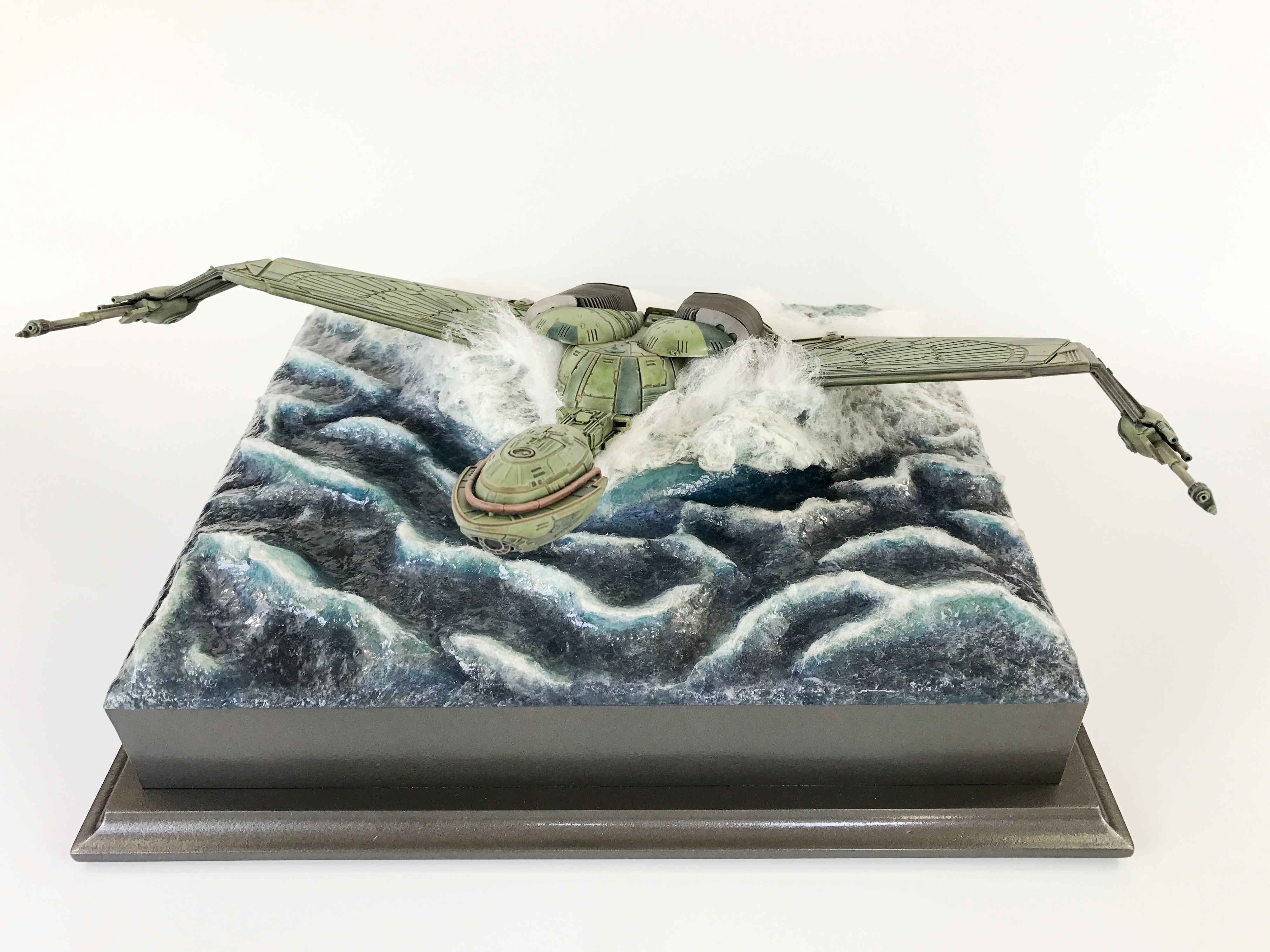 My Klingon Bird of Prey diorama is based on the climactic scene from Star Trek IV: The Voyage Home, in which the Enterprise crew crash-lands their acquired Klingon Bird of Prey (HMS Bounty) into the San Francisco Bay, after having time-traveled back to the 23rd century with George and Gracie.