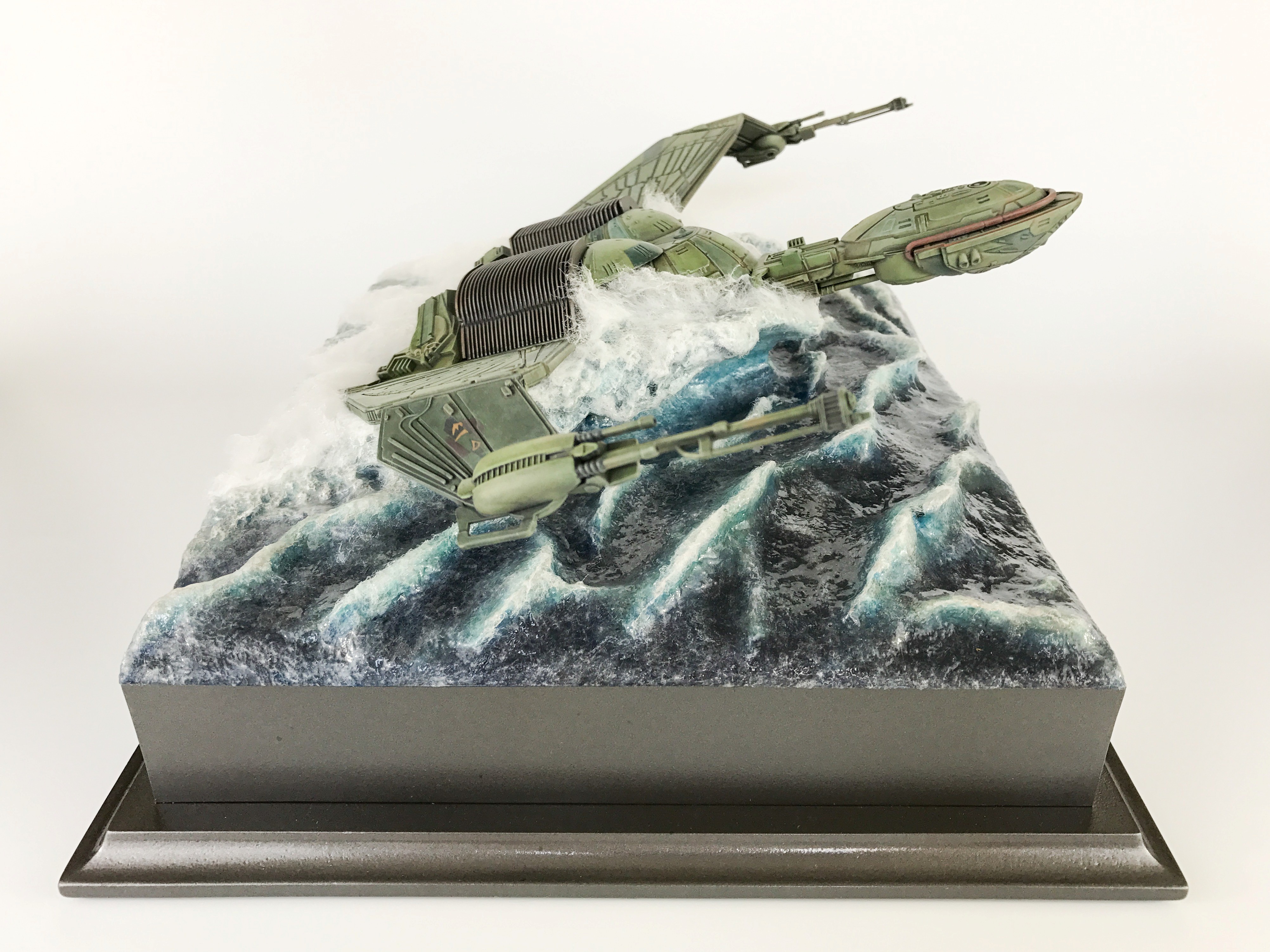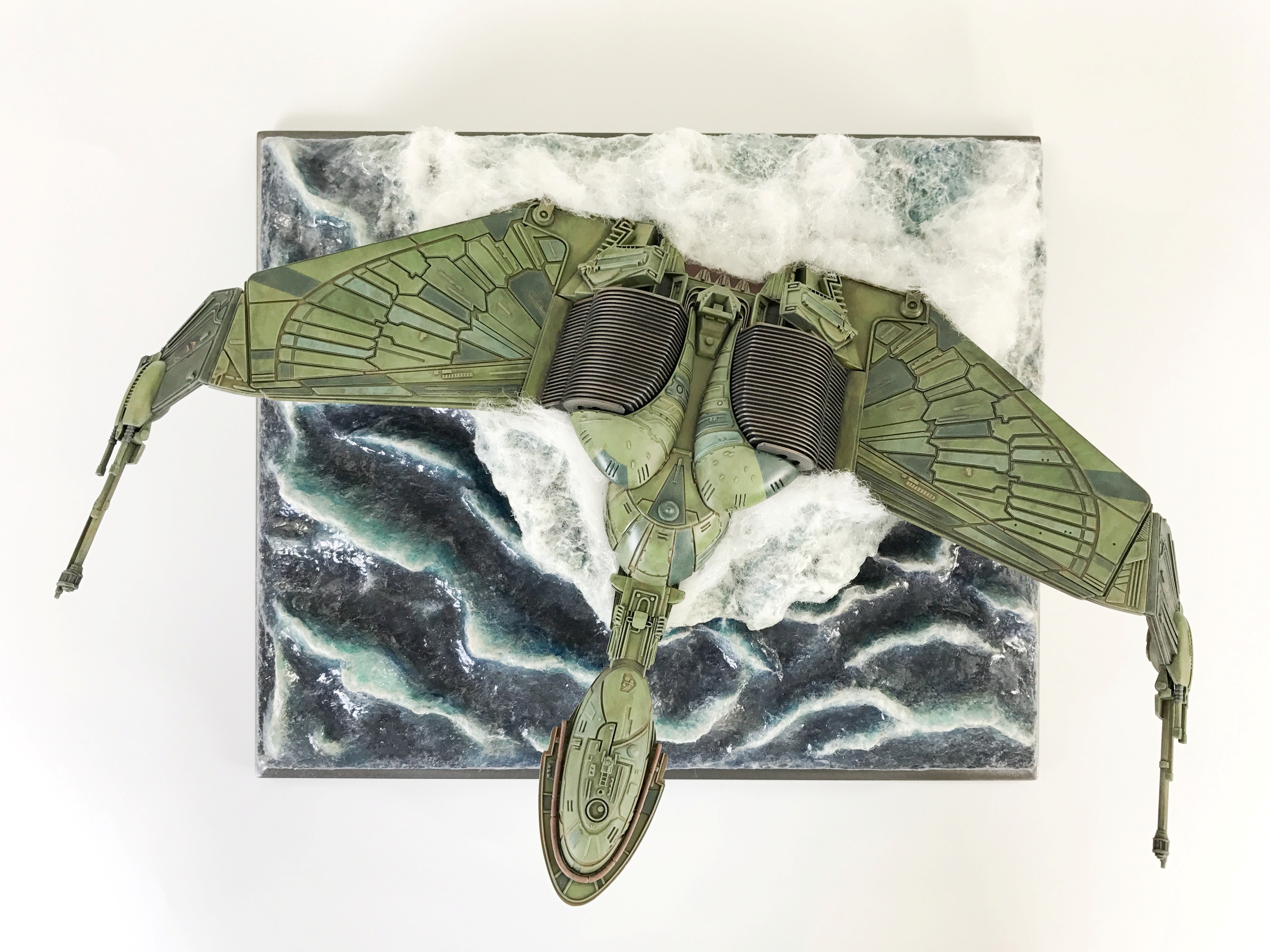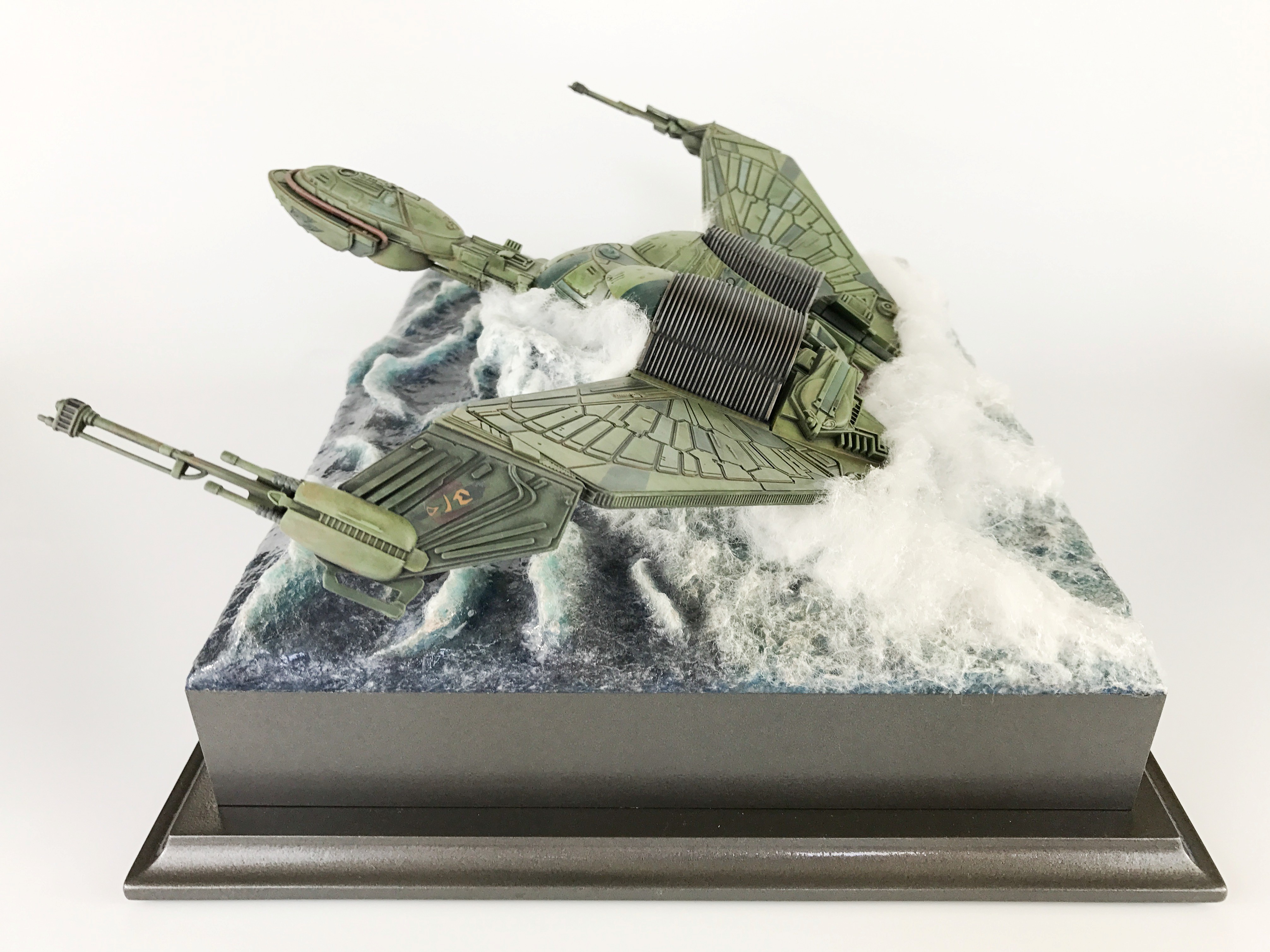 My Klingon Bird of Prey diorama is based on the climactic scene from Star Trek IV: The Voyage Home, in which the Enterprise crew crash-lands their acquired Klingon Bird of Prey (HMS Bounty) into the San Francisco Bay, after having time-traveled back to the 23rd century with George and Gracie.