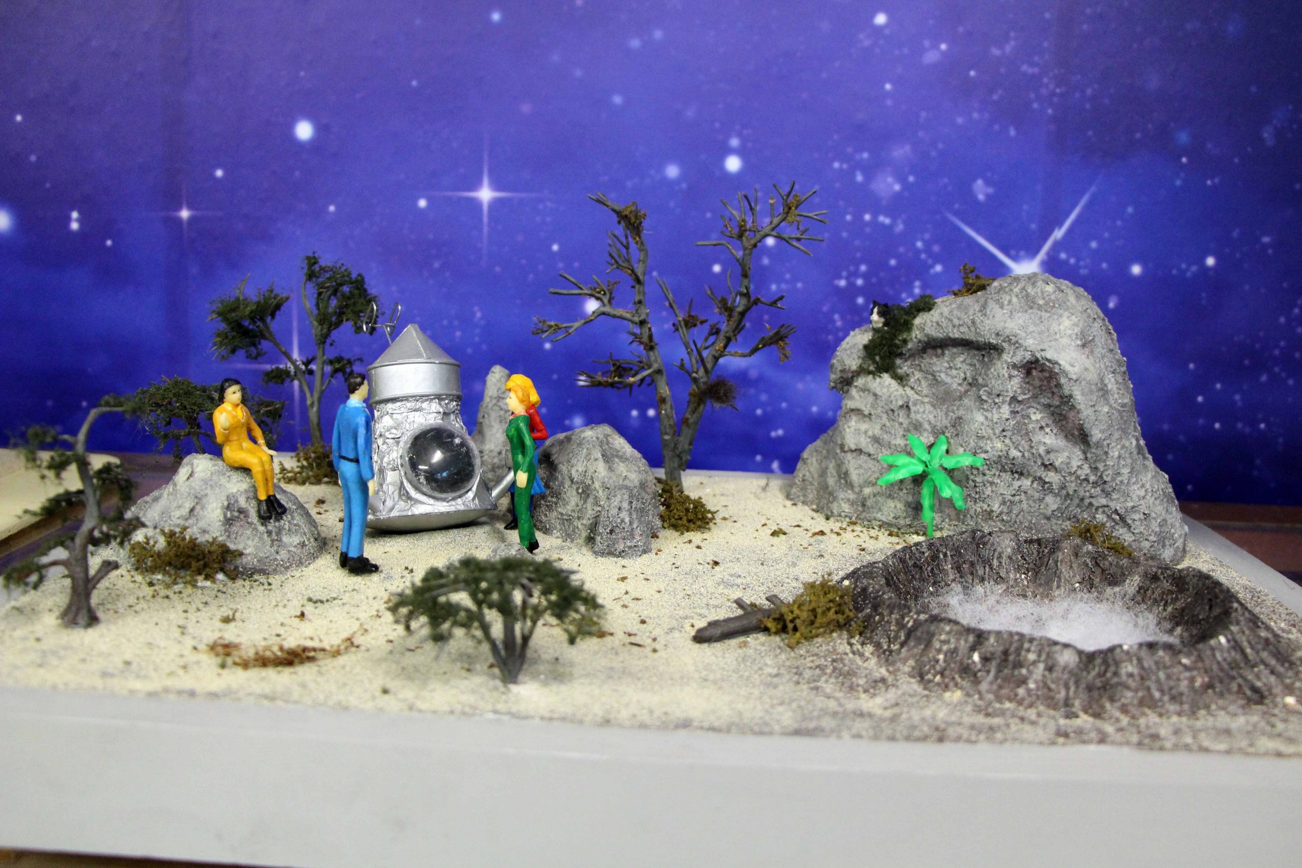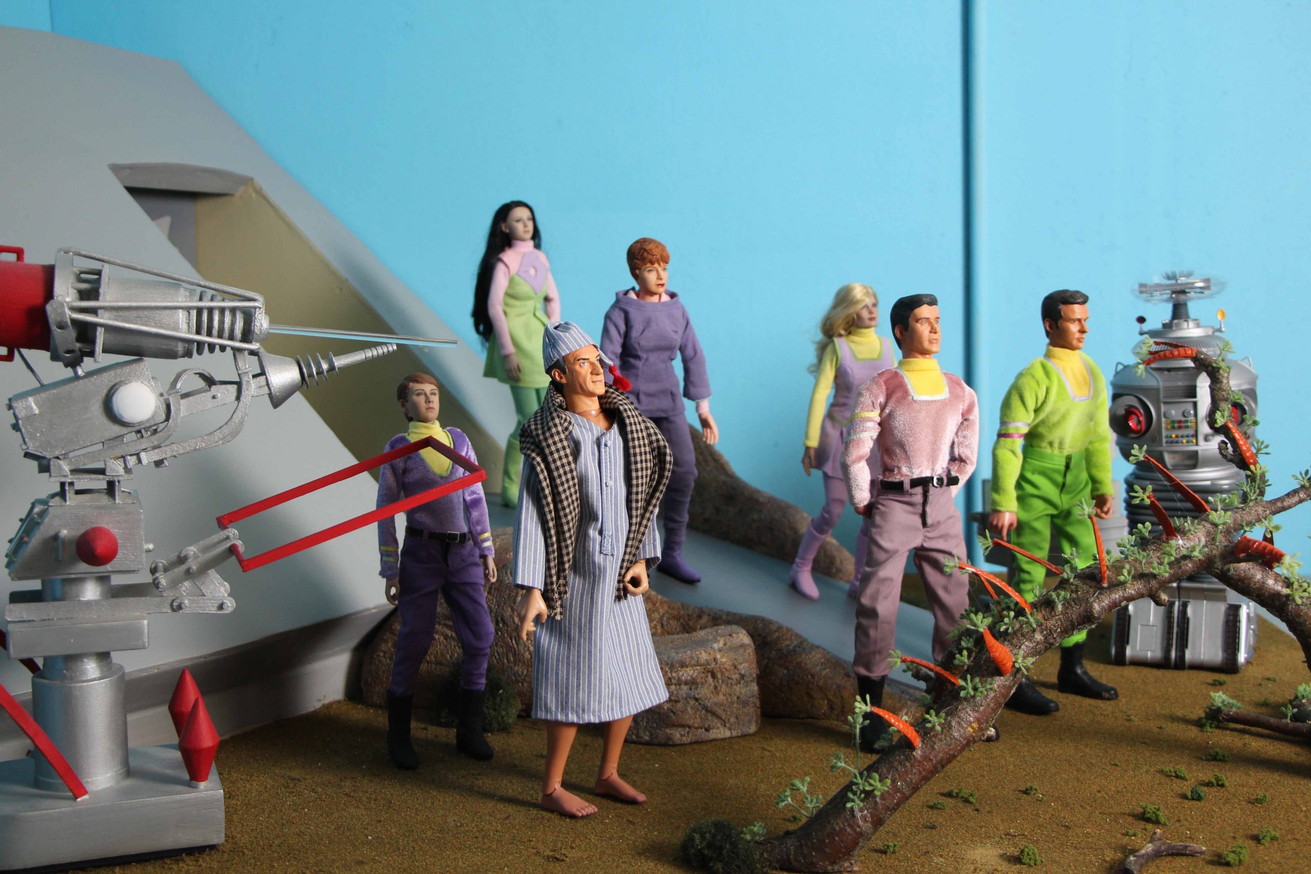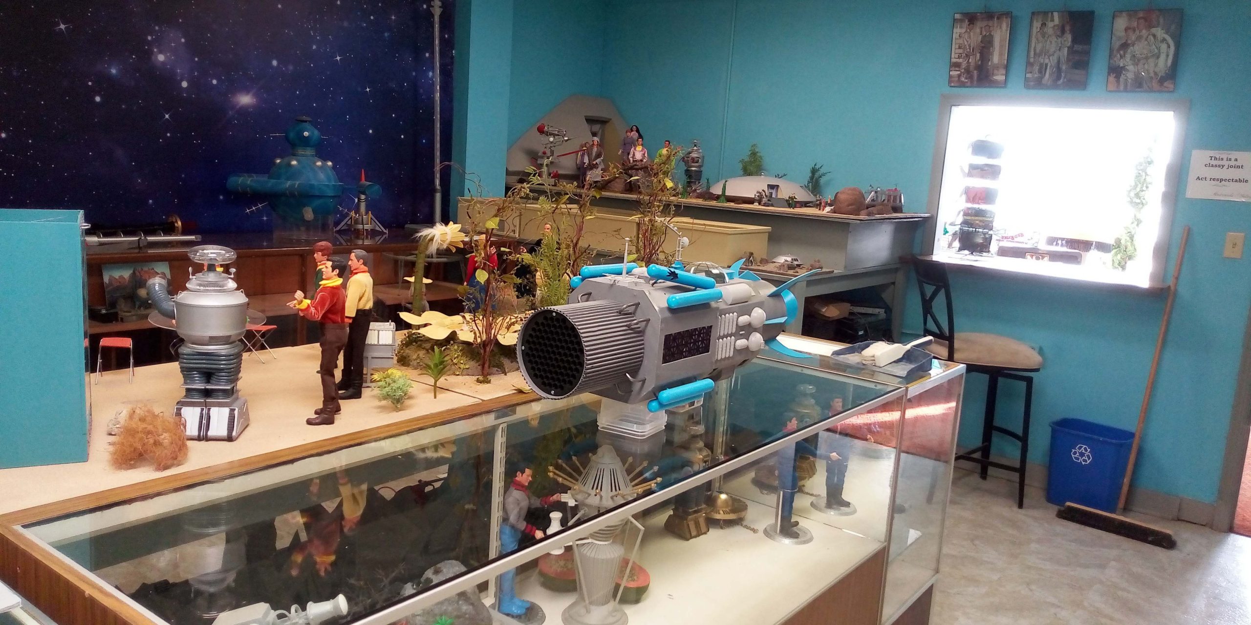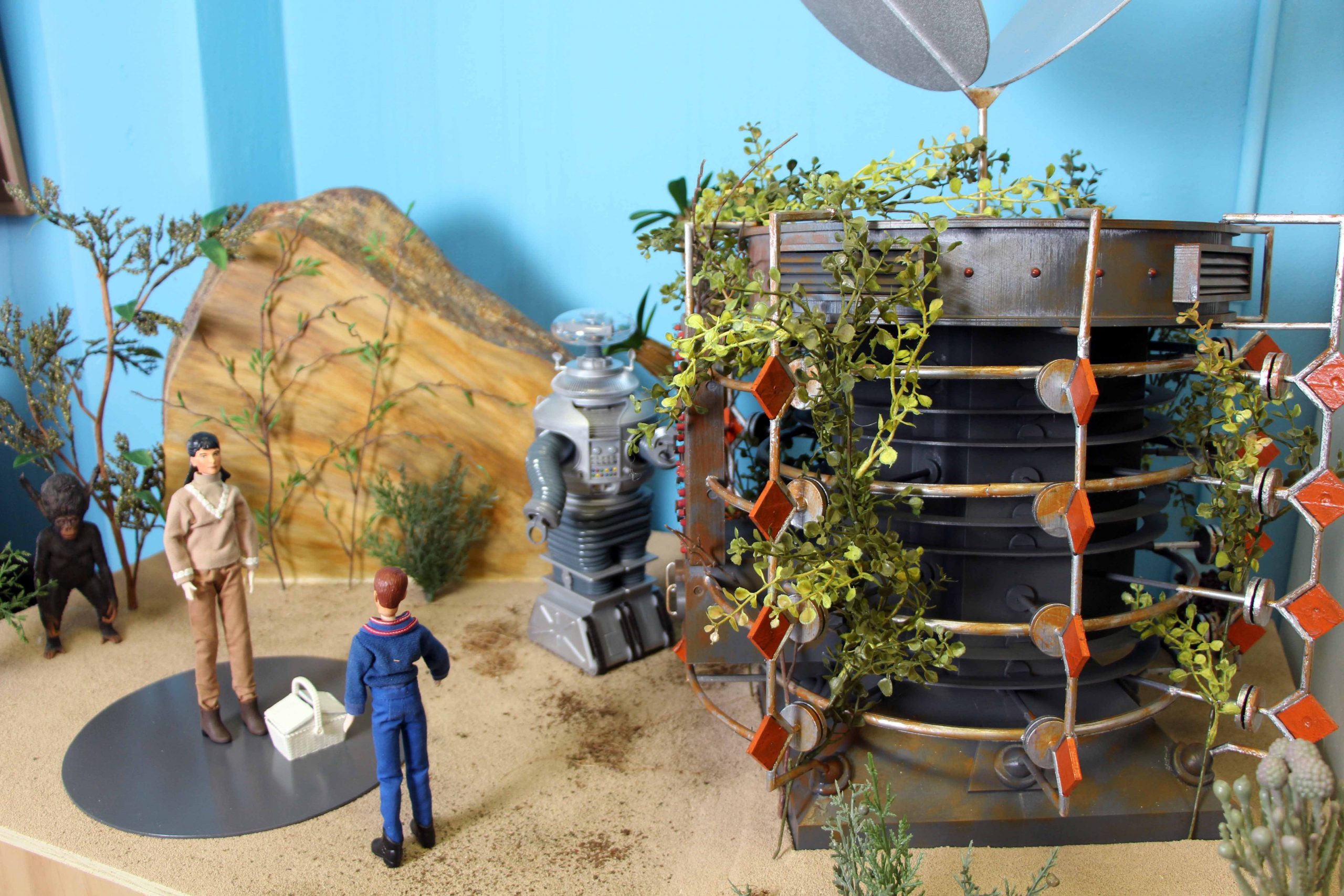 Here’s some photos of my Lost in Space dioramas that I’ve built in different scales. I mostly built them over the last year while staying home during the pandemic. The dioramas outgrew my house so I display them in a building downtown, along with some props associated with those scenes.