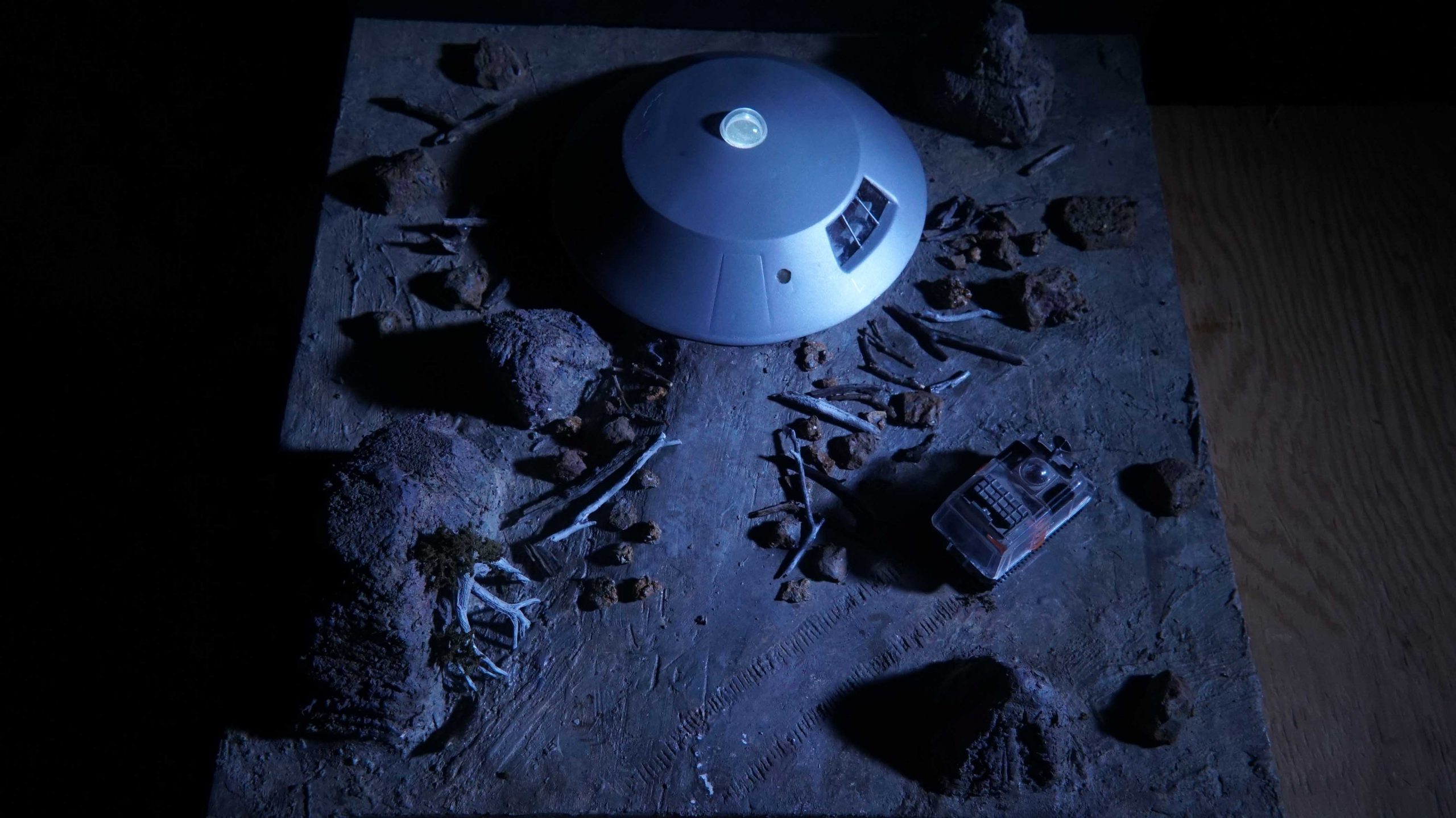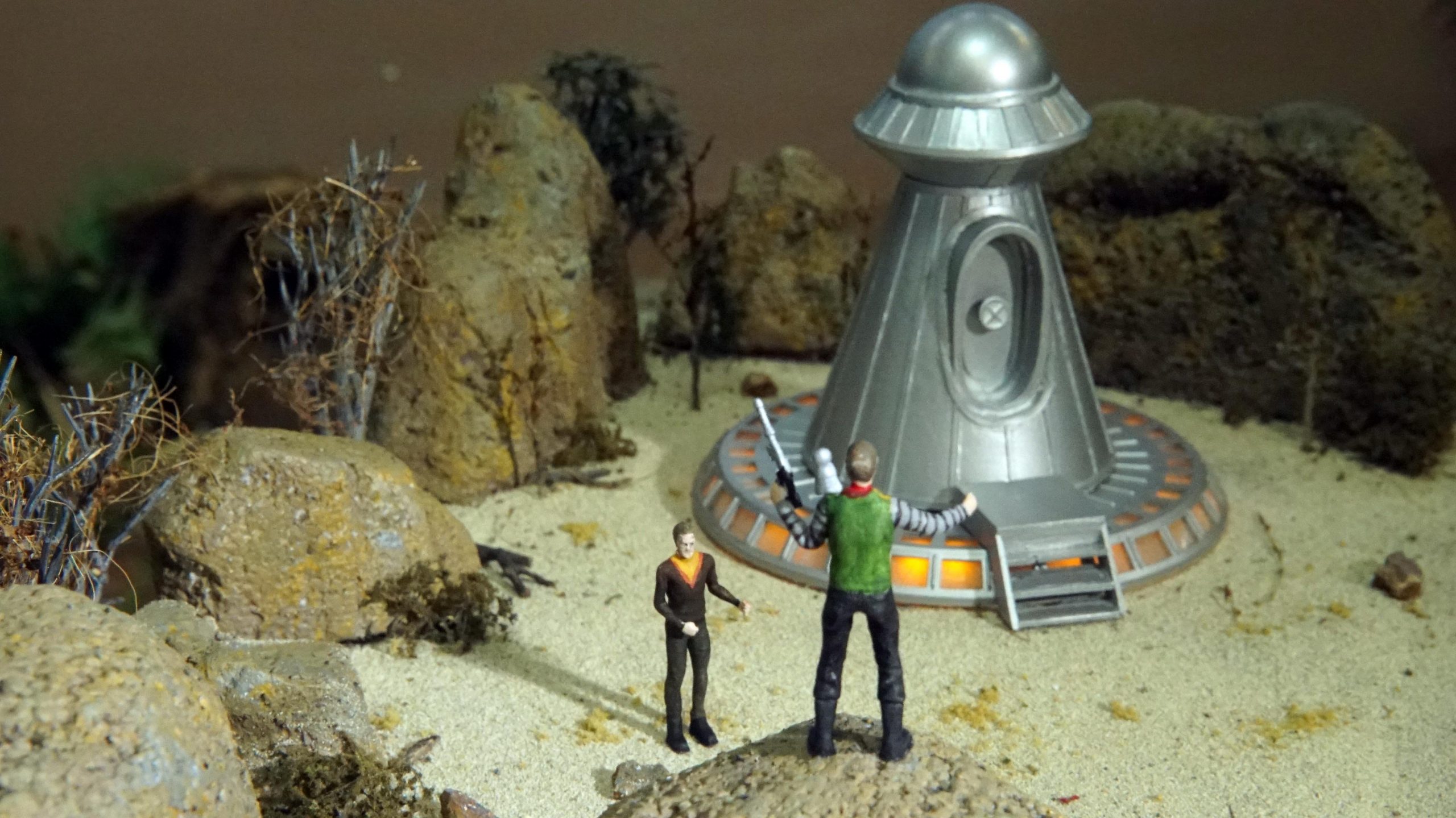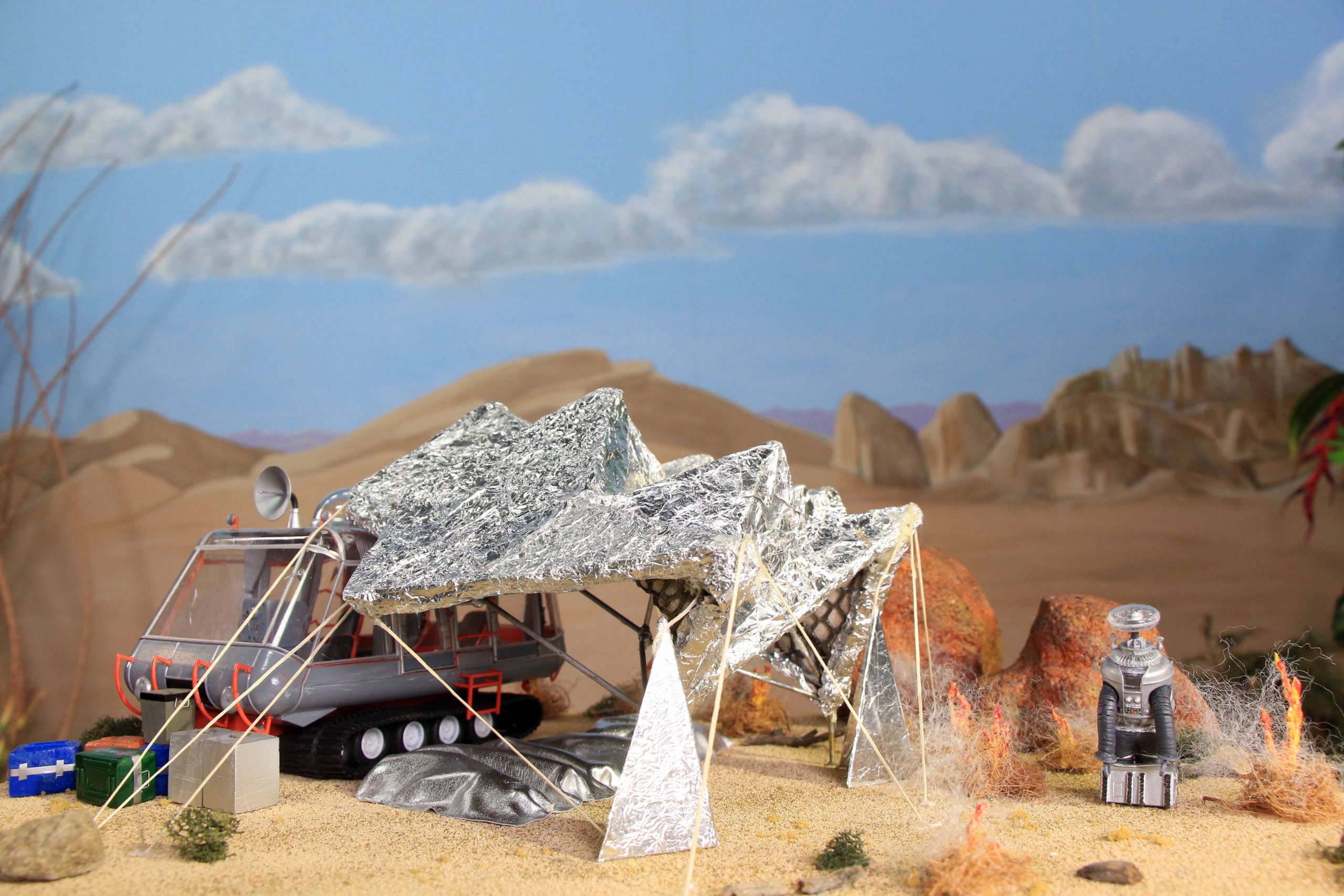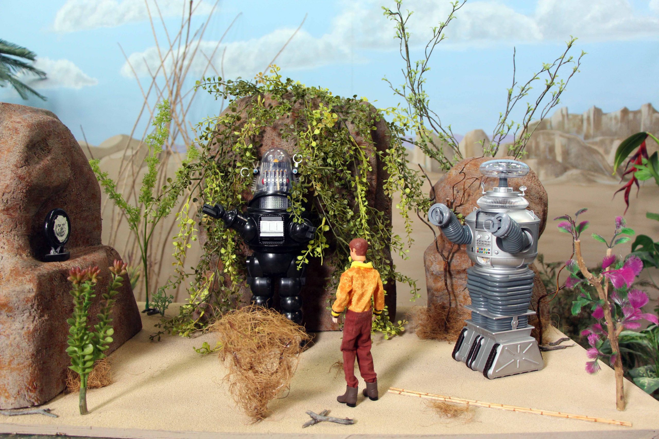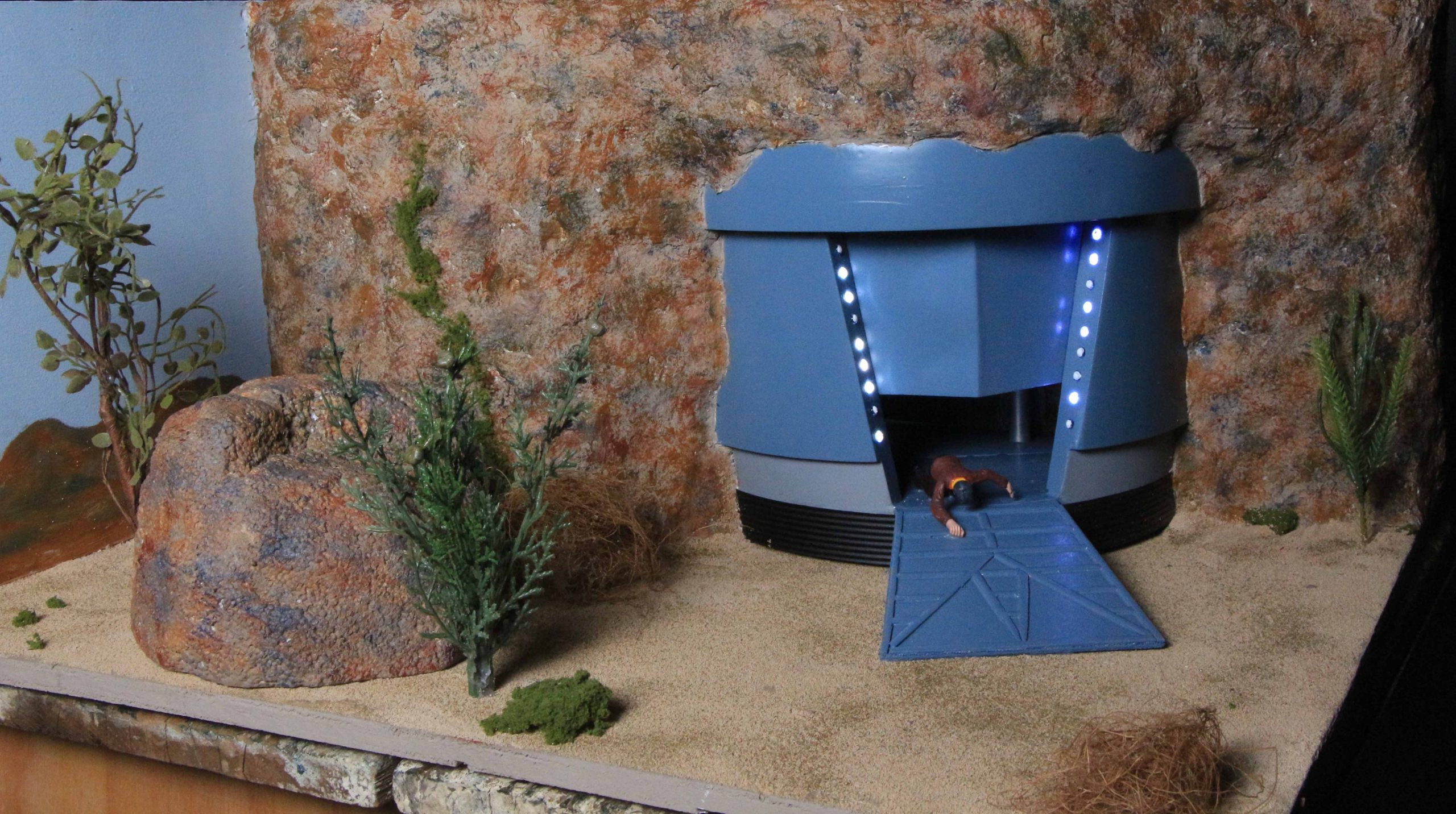 Here’s some photos of my Lost in Space dioramas that I’ve built in different scales. I mostly built them over the last year while staying home during the pandemic. The dioramas outgrew my house so I display them in a building downtown, along with some props associated with those scenes.