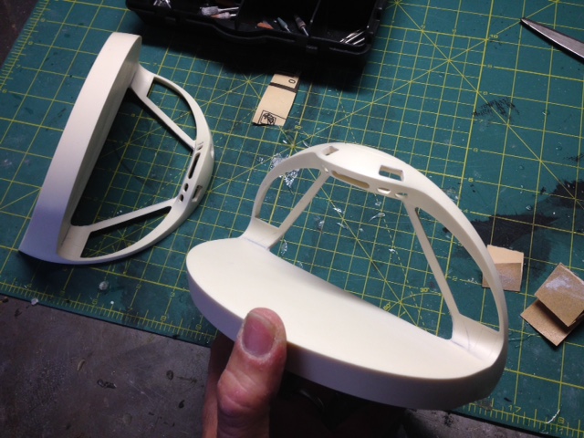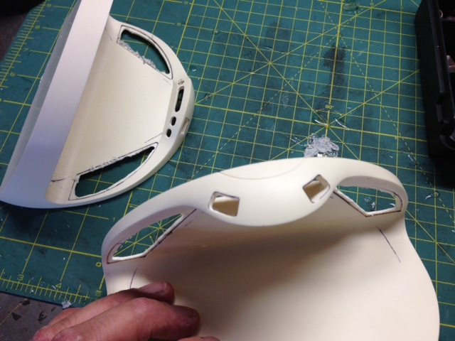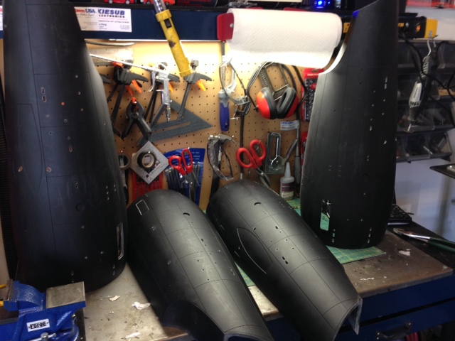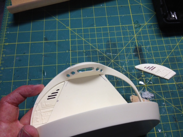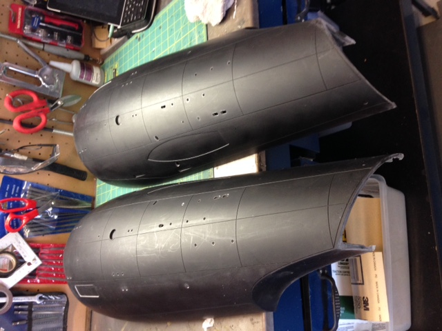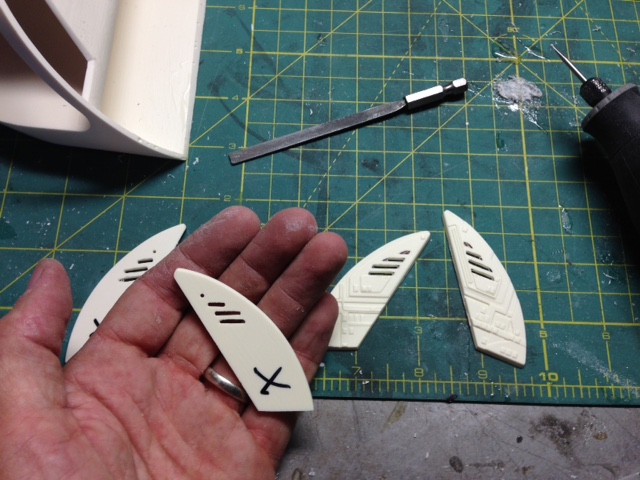 As TimeSlip Creations finishes up the remaining parts needed for these behemoth builds, artist Marc Elkins has now assembled the four nacelles, leaving the open areas to be able to place in the lighting. As you can see, he has also Dremeled the windows of the secondary hull, as well as the spotlight ports. This is an area Marc excels in. Just look at the cuts he made to open the shuttle bay…. beautiful. Marc will be making the shuttle bay interior for our two displays. Thanks again to George and crew of TimeSlip for making this dream come true… and to Marc Elkins for bringing those dreams to life.